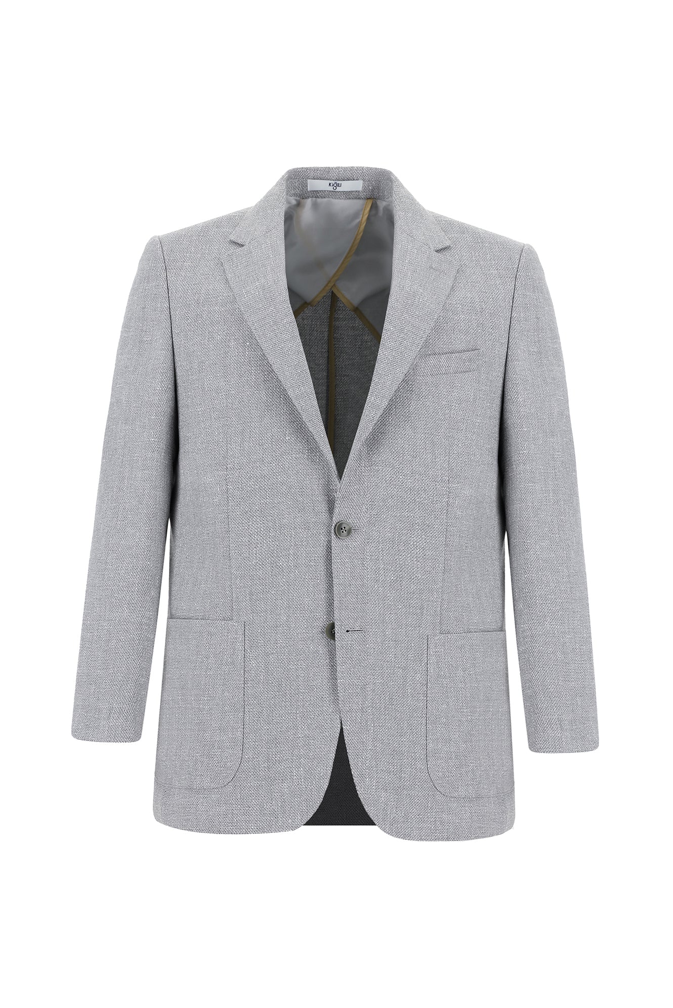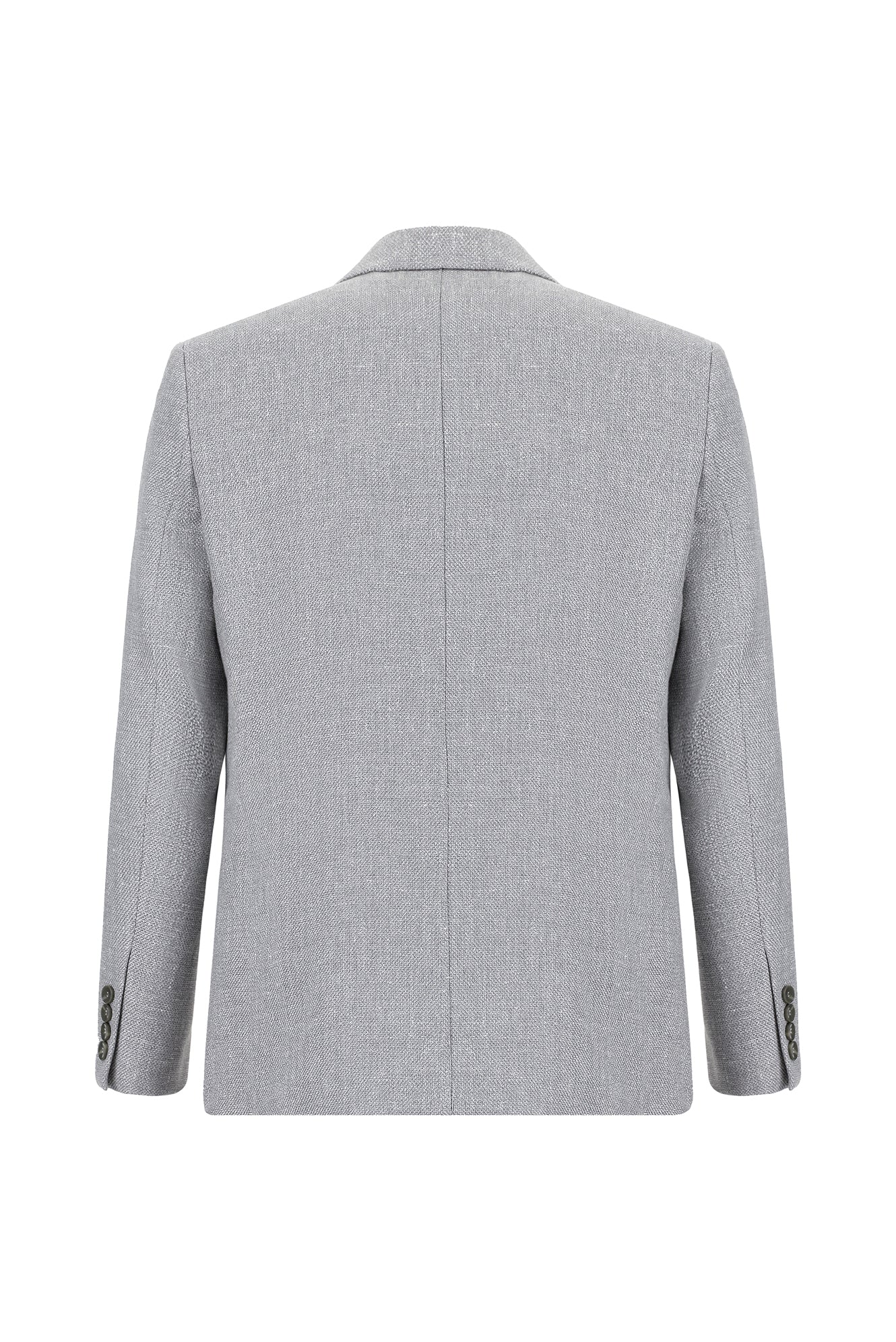 Açık Gri Slim Fit Dar Kesim Desenli Keten Karışımlı Ceket