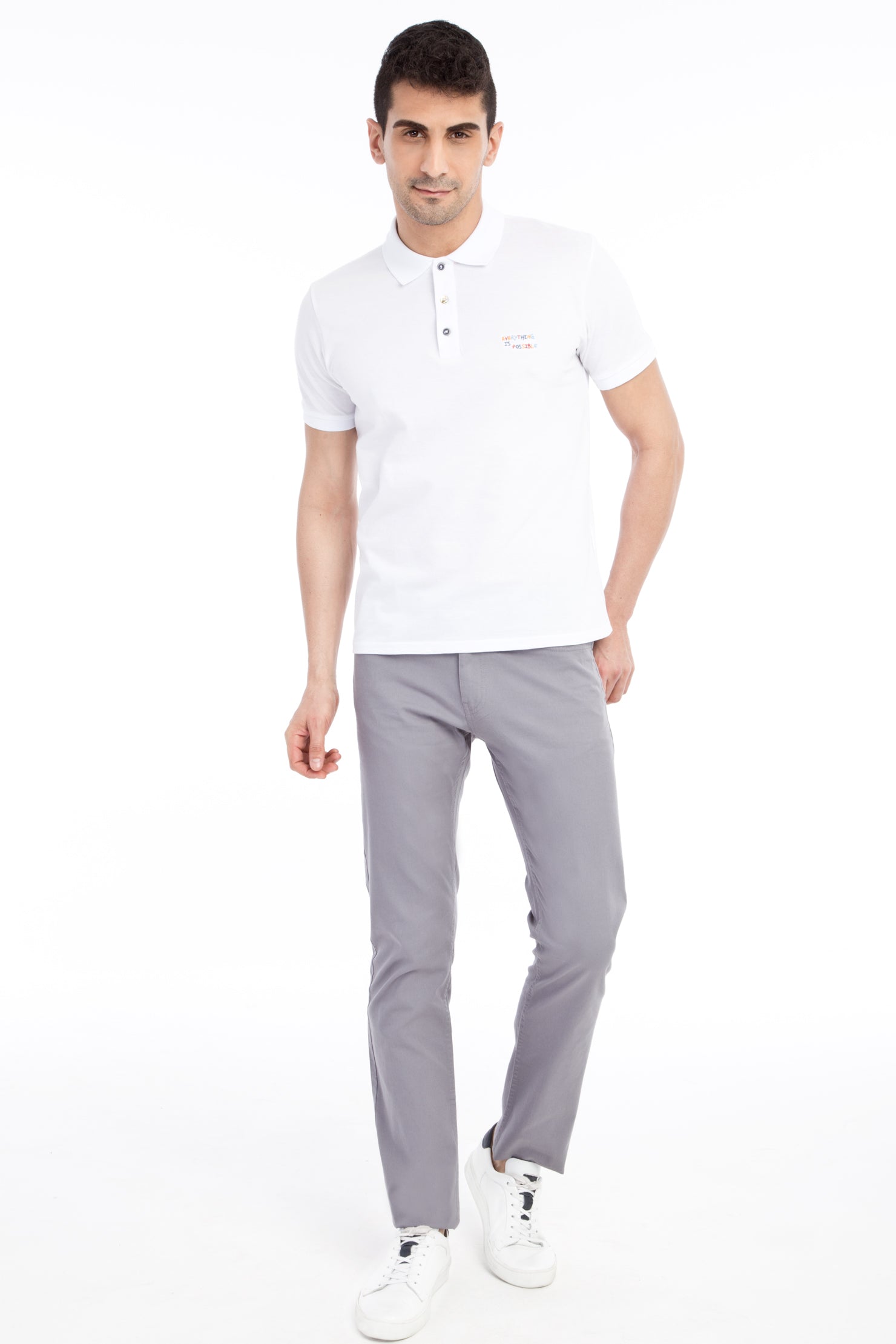 Açık Gri Slim Fit Dar Kesim Likralı Kanvas / Chino Pantolon