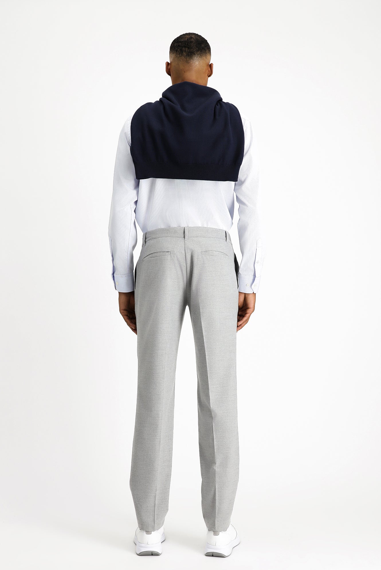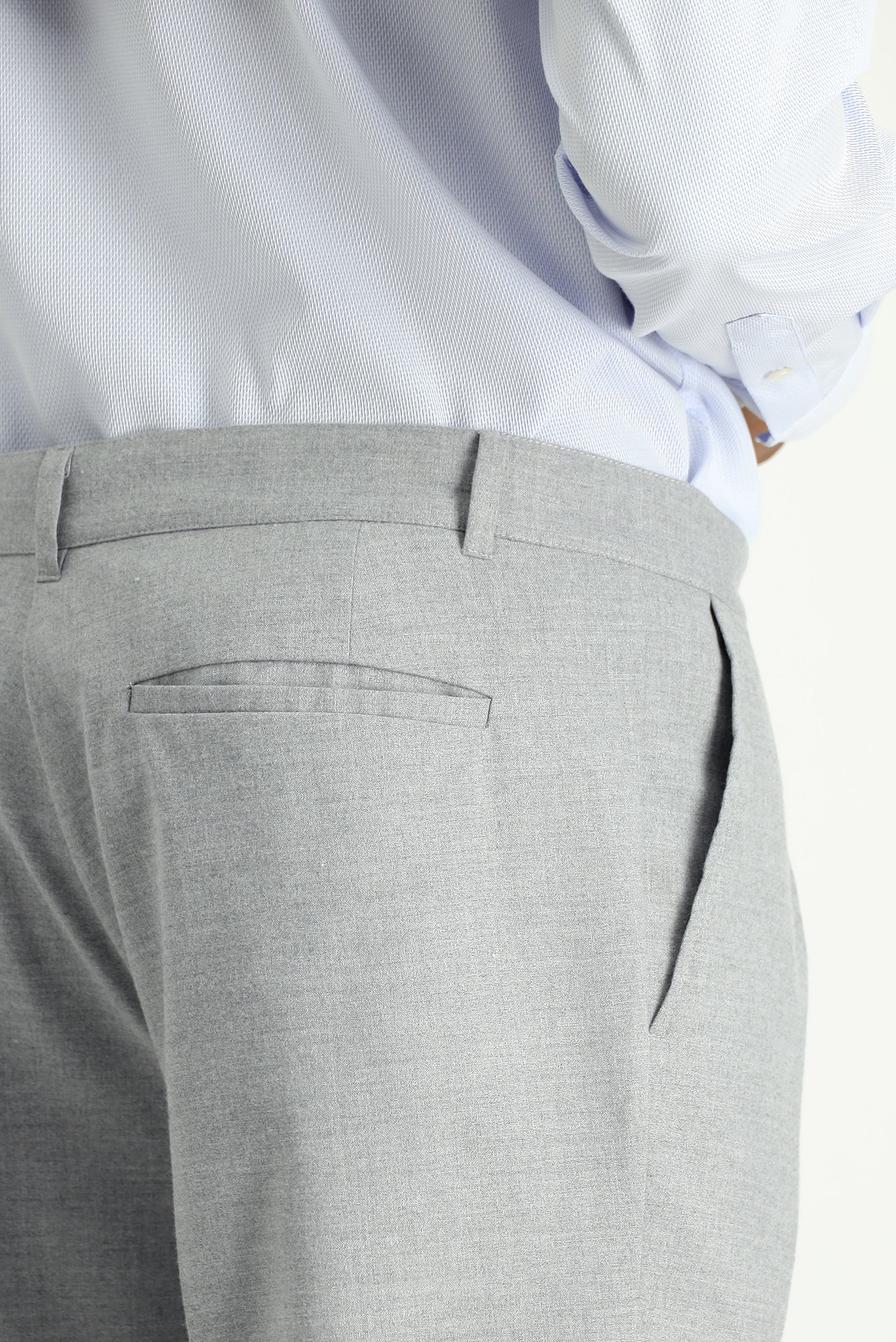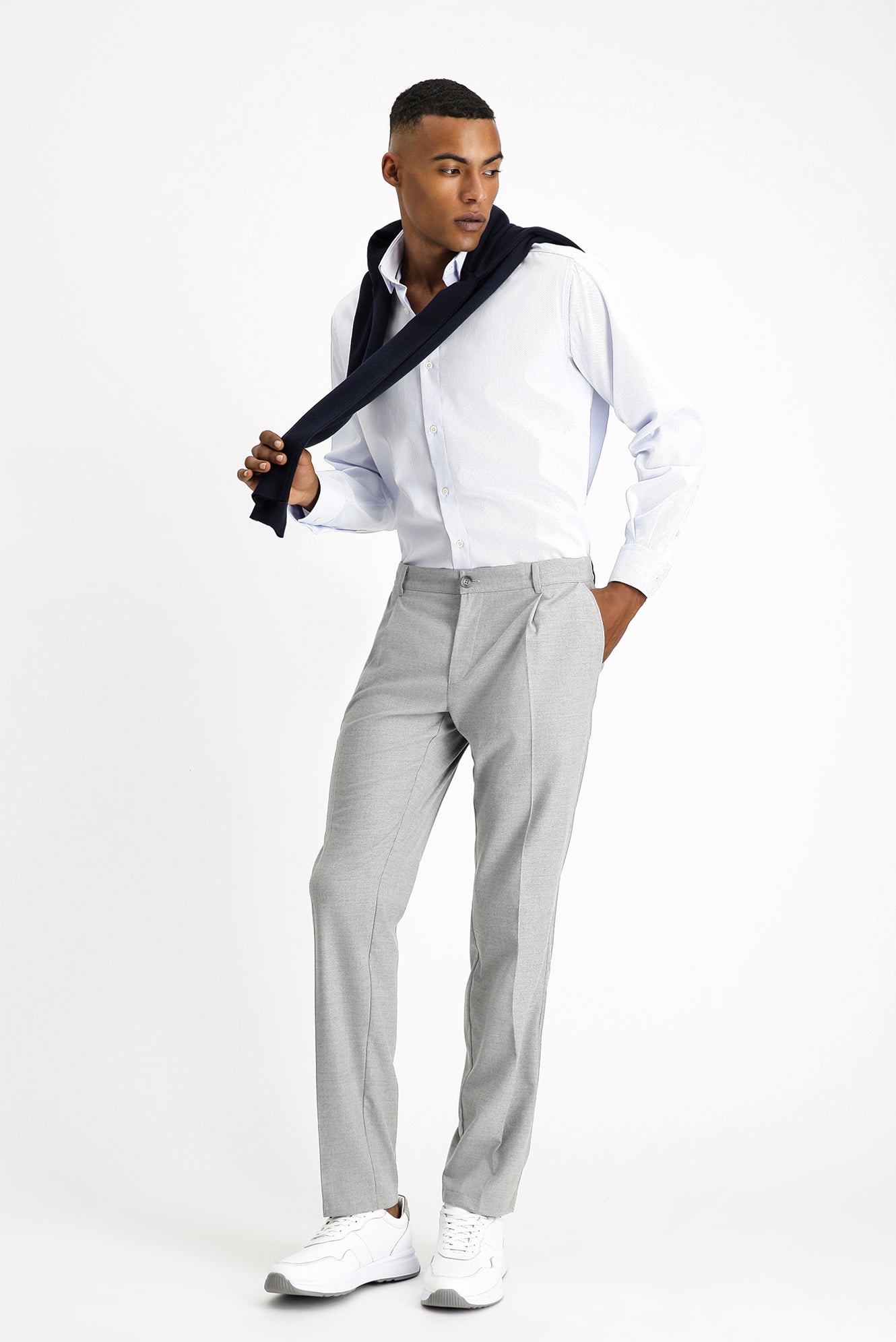 Açık Gri Slim Fit Dar Kesim Likralı Pileli Klasik Kumaş Pantolon