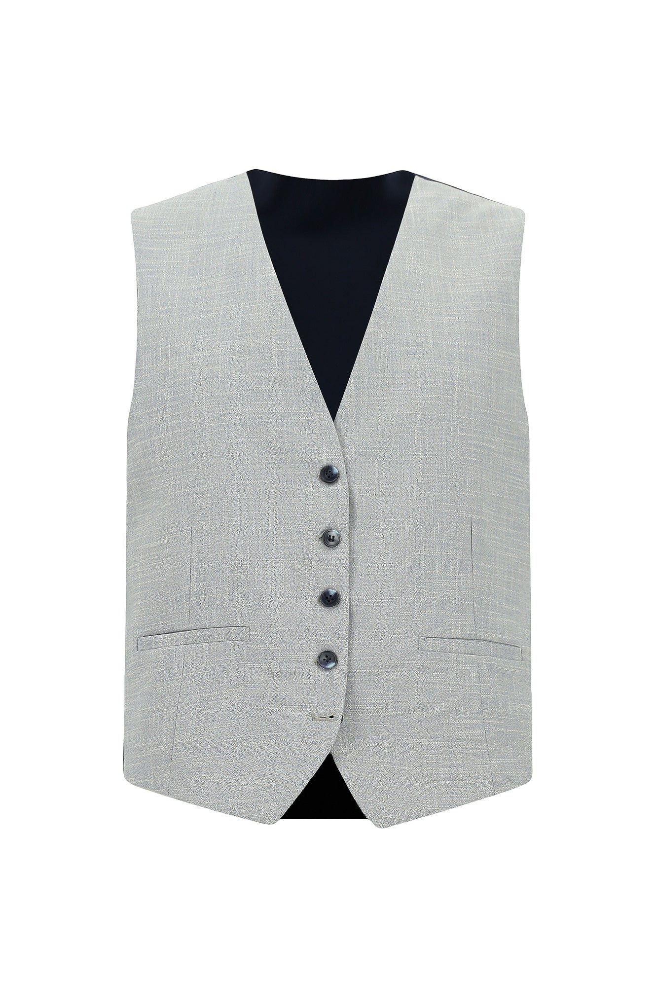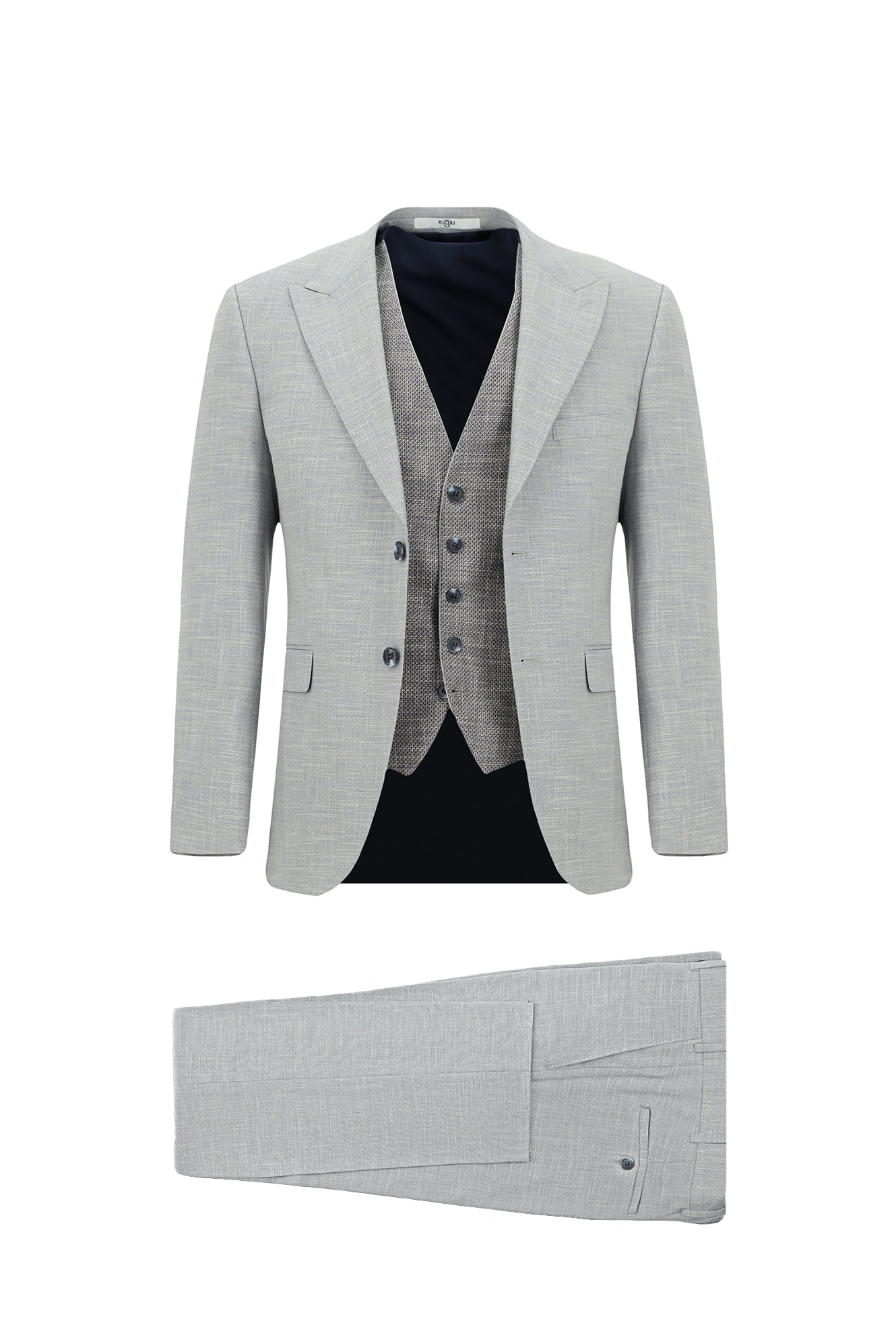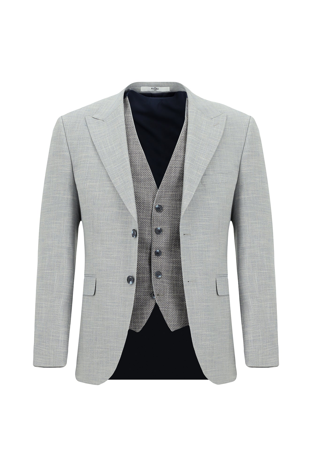 Açık Gri Slim Fit Dar Kesim Yelekli Kombinli Takım Elbise