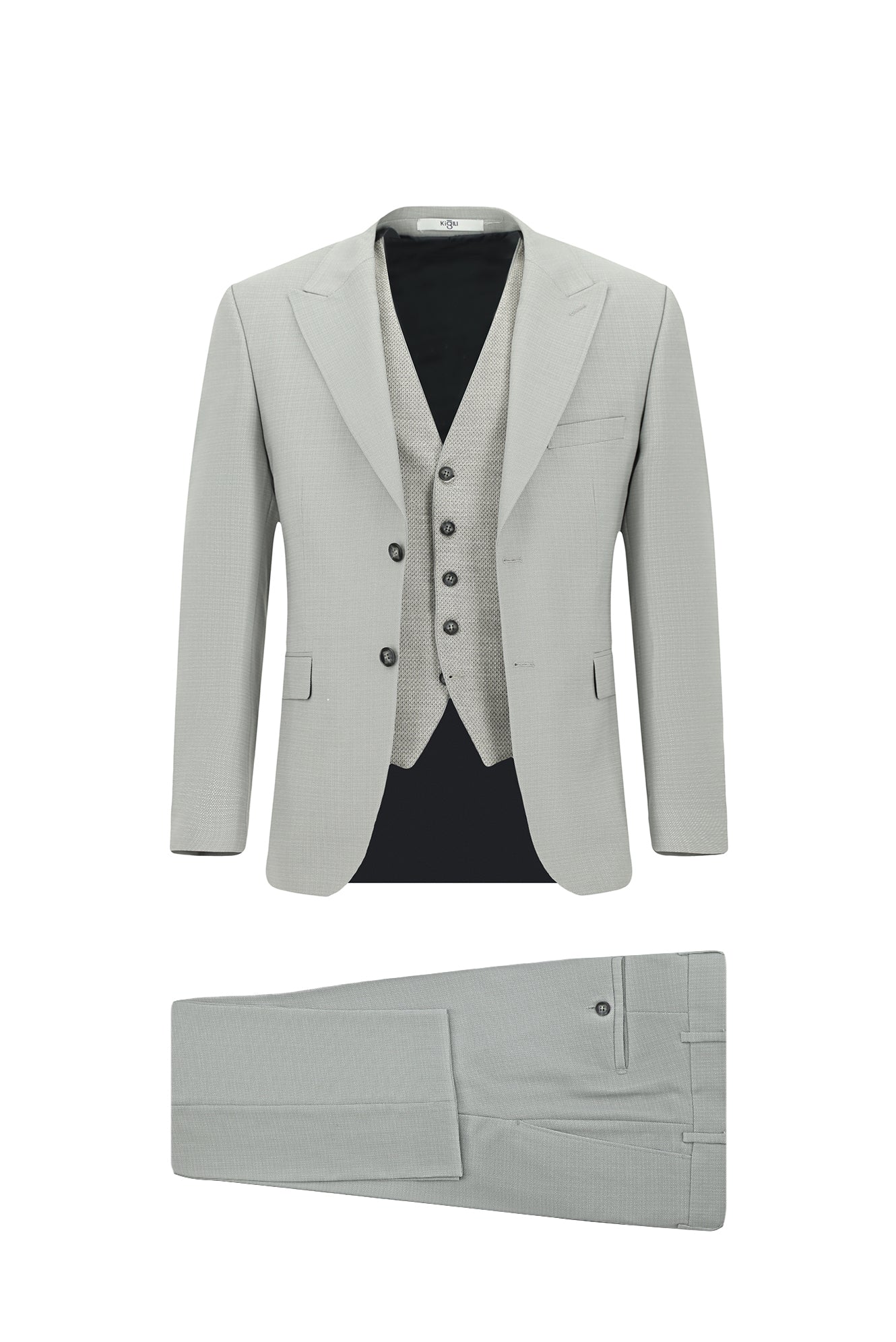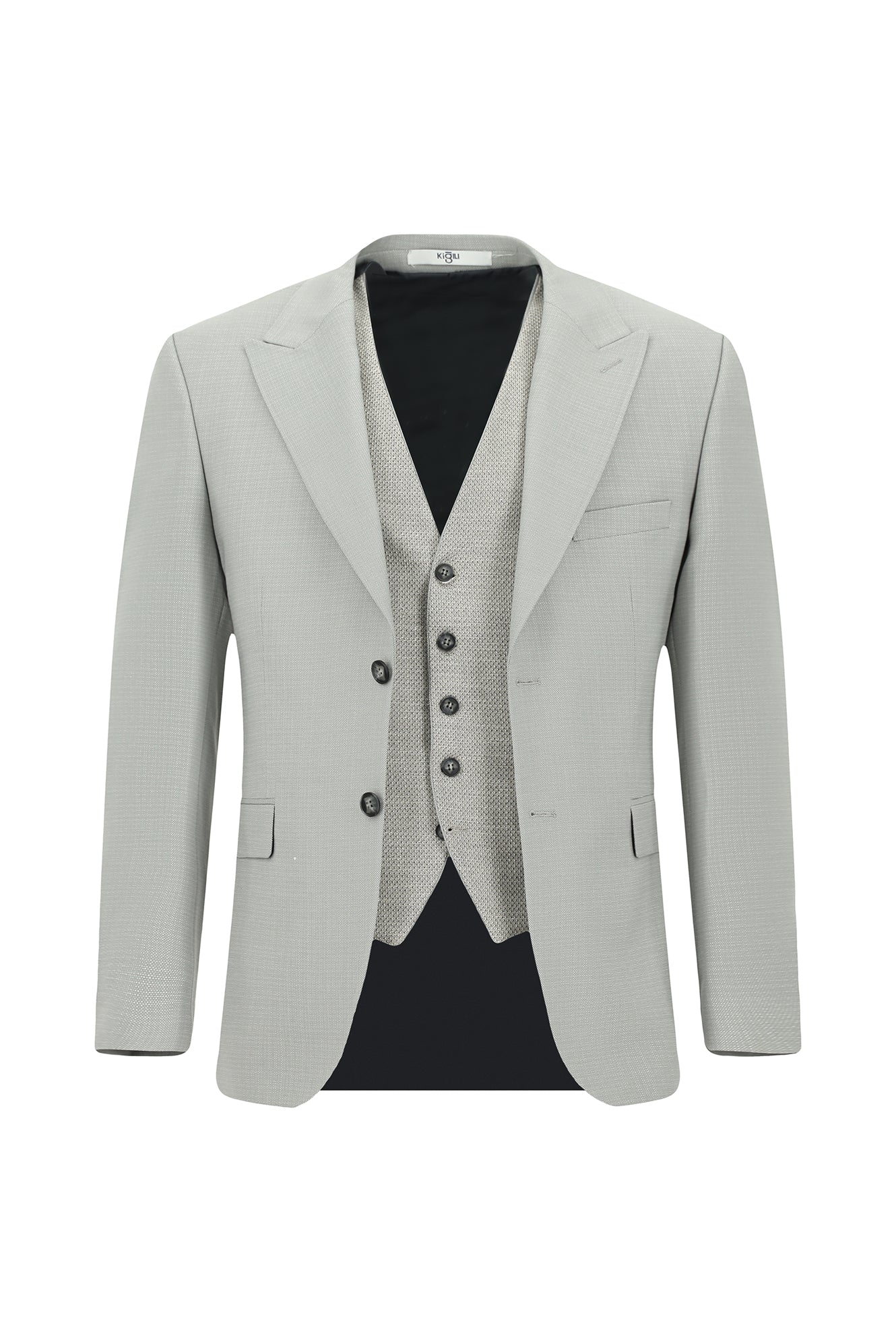 Açık Gri 7 Drop Slim Fit Dar Kesim Yelekli Kombinli Takım Elbise