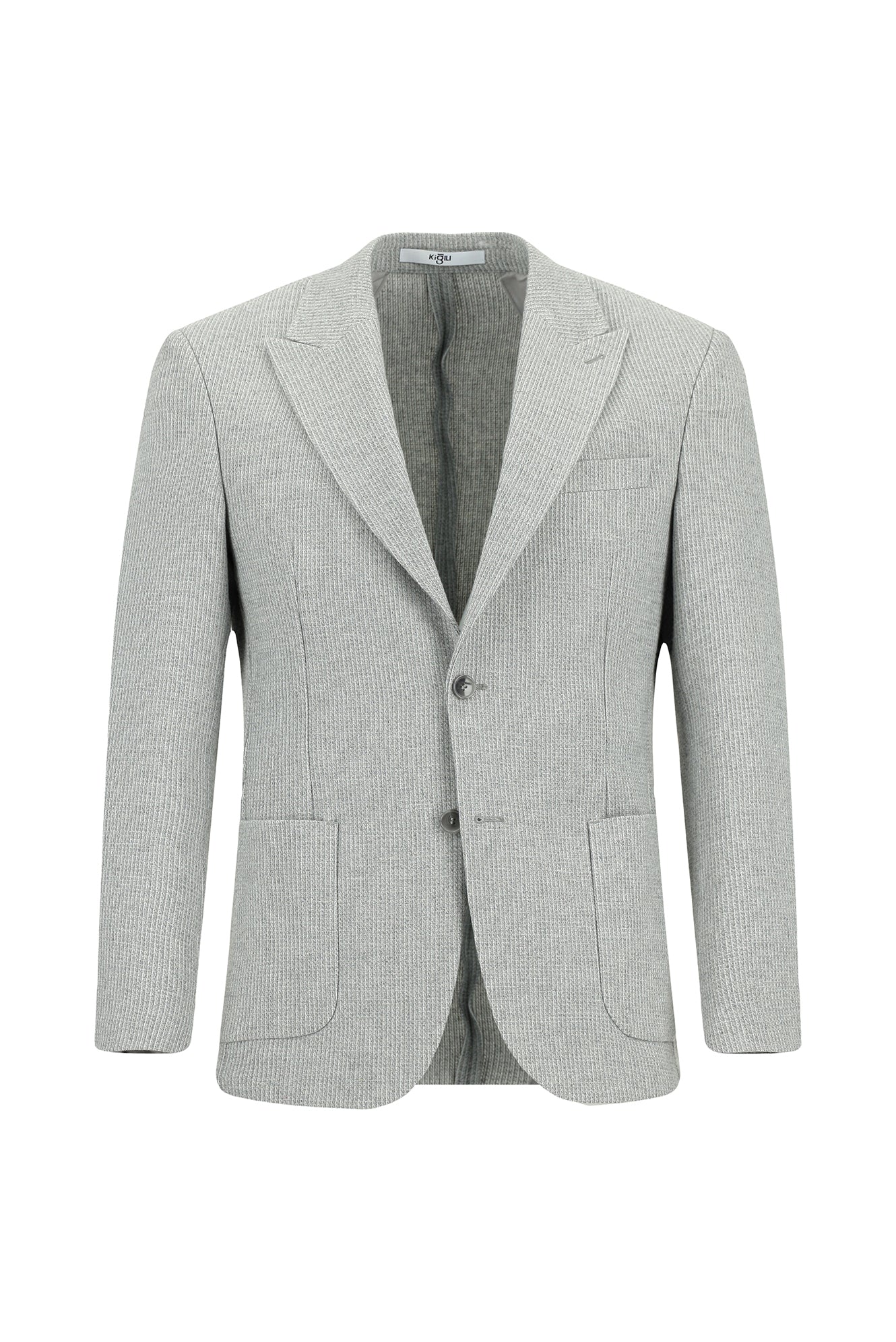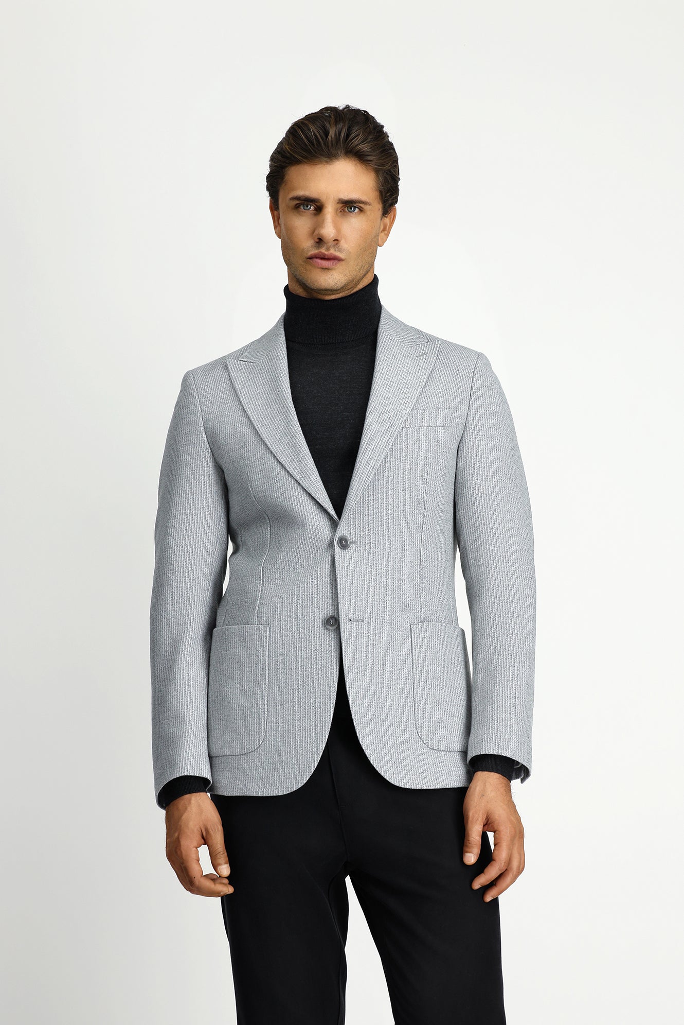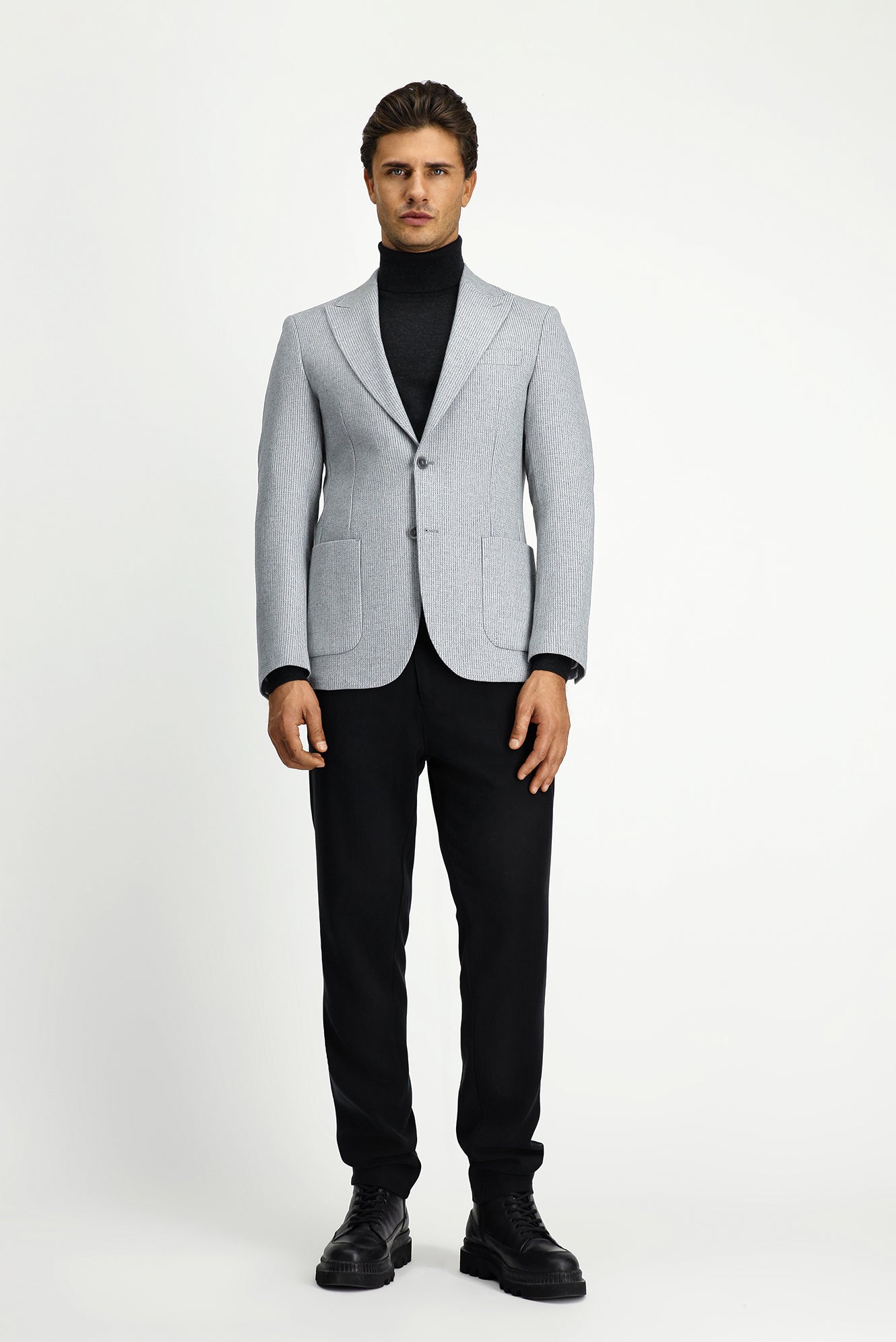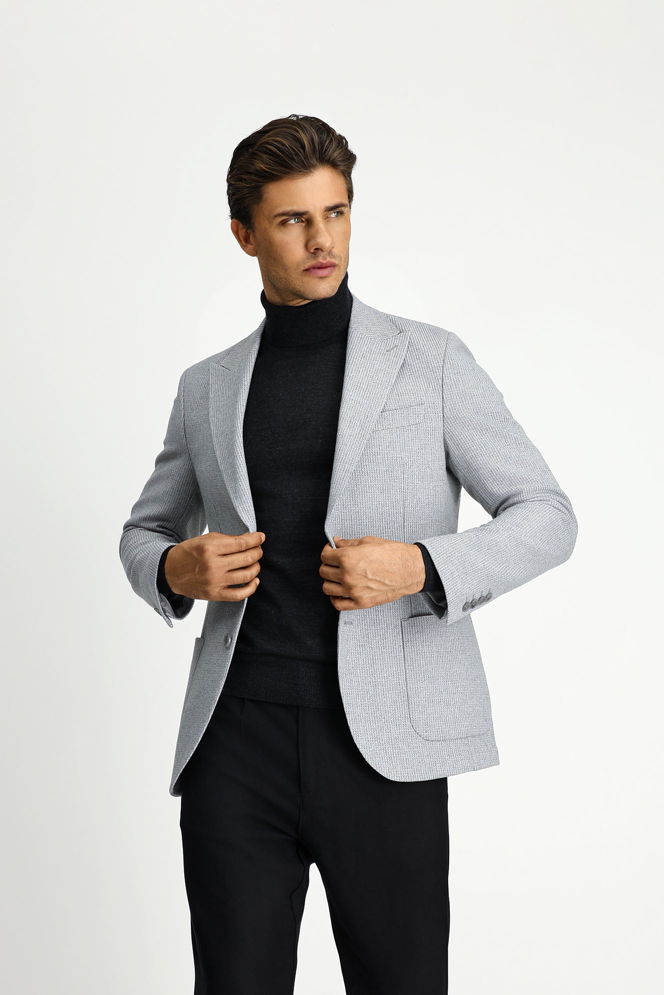 Açık Gri Slim Fit Dar Kesim Yünlü Desenli Spor Ceket