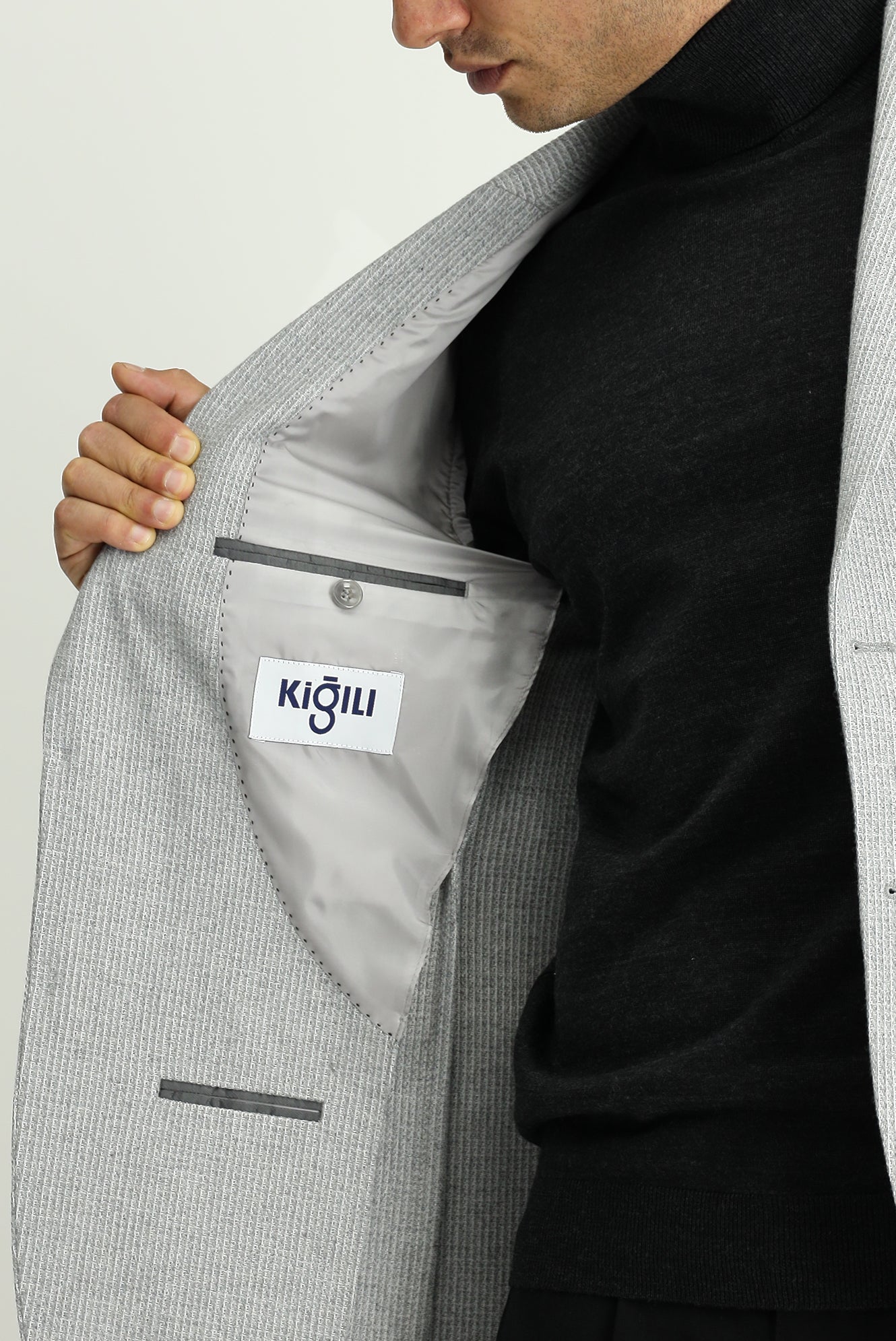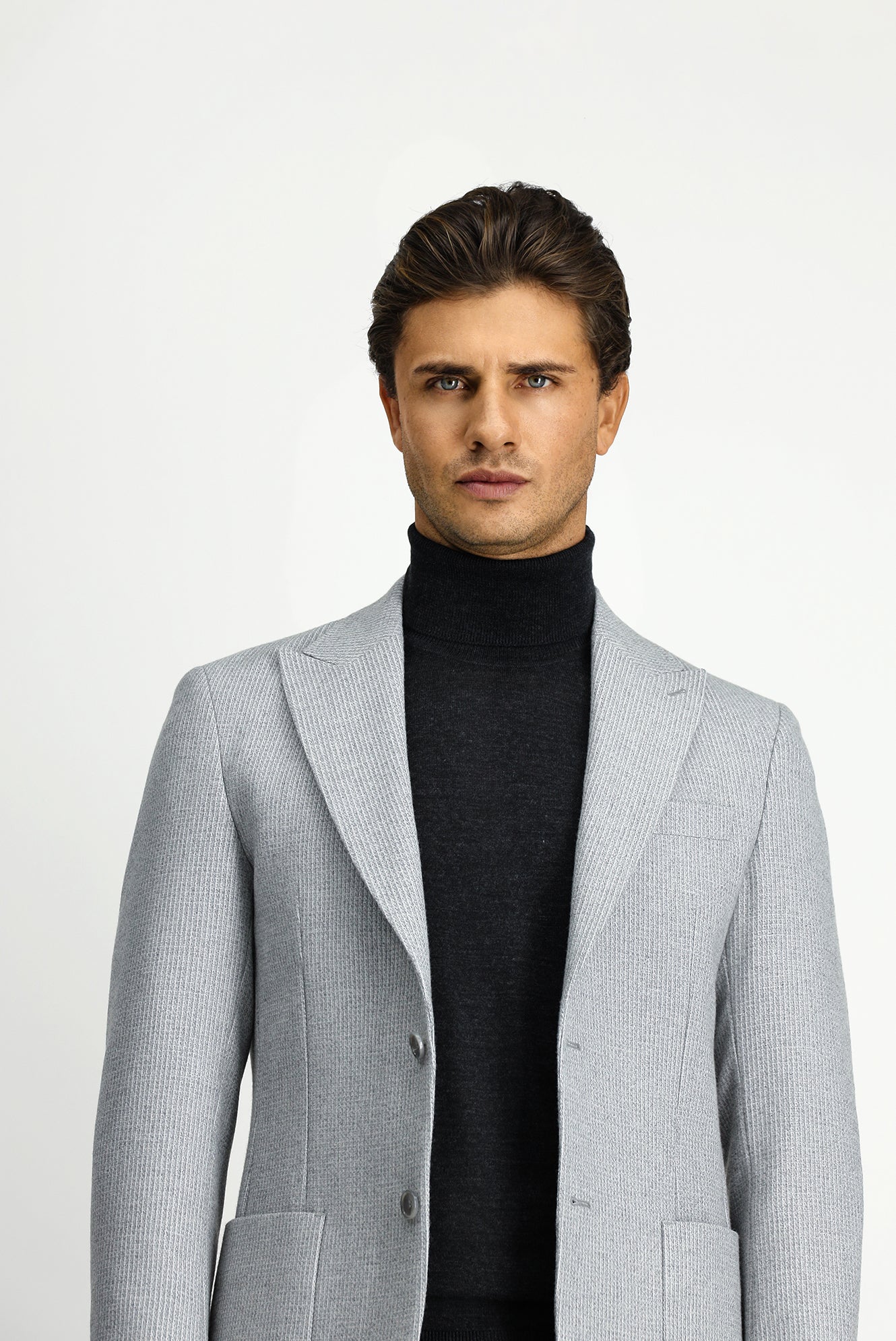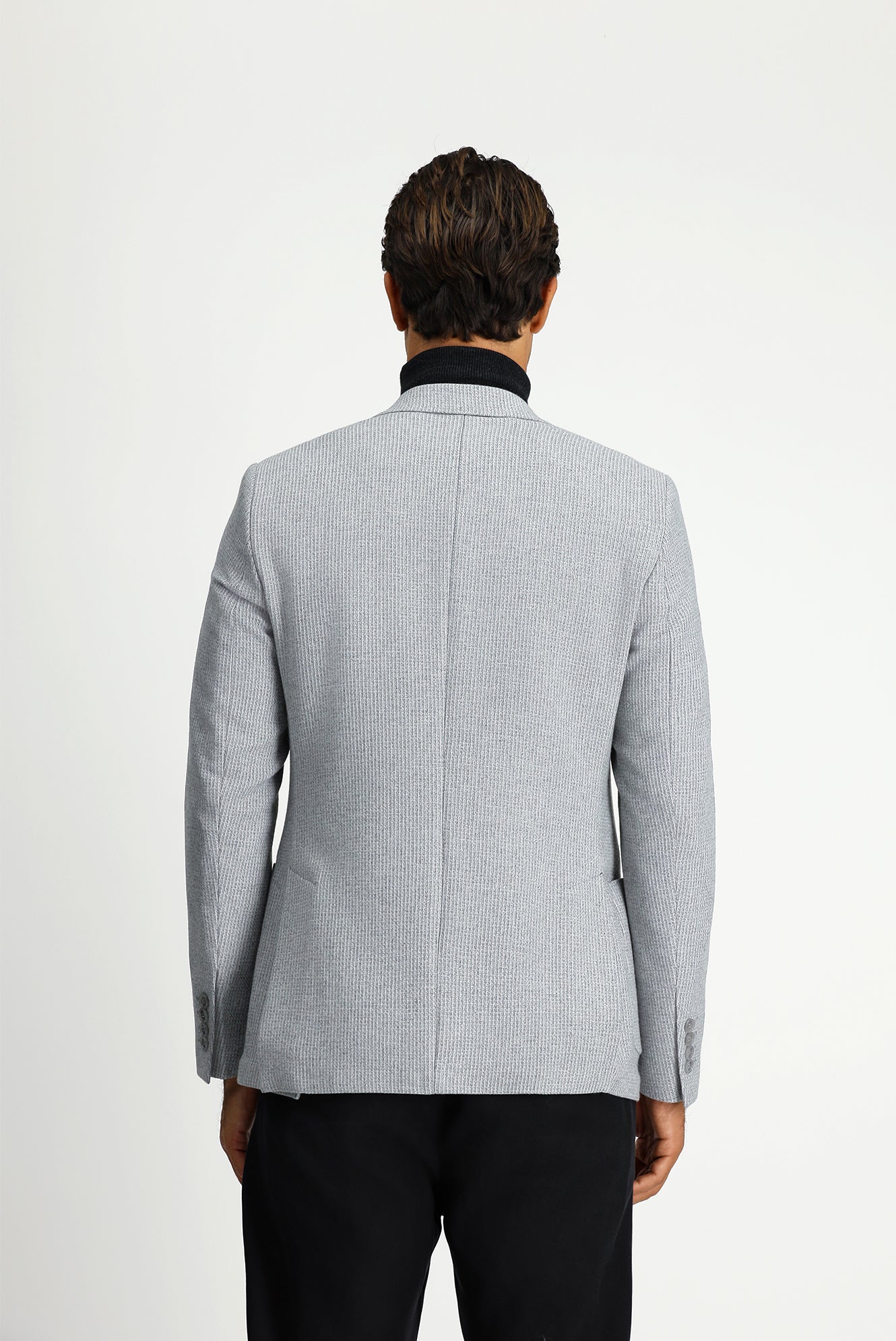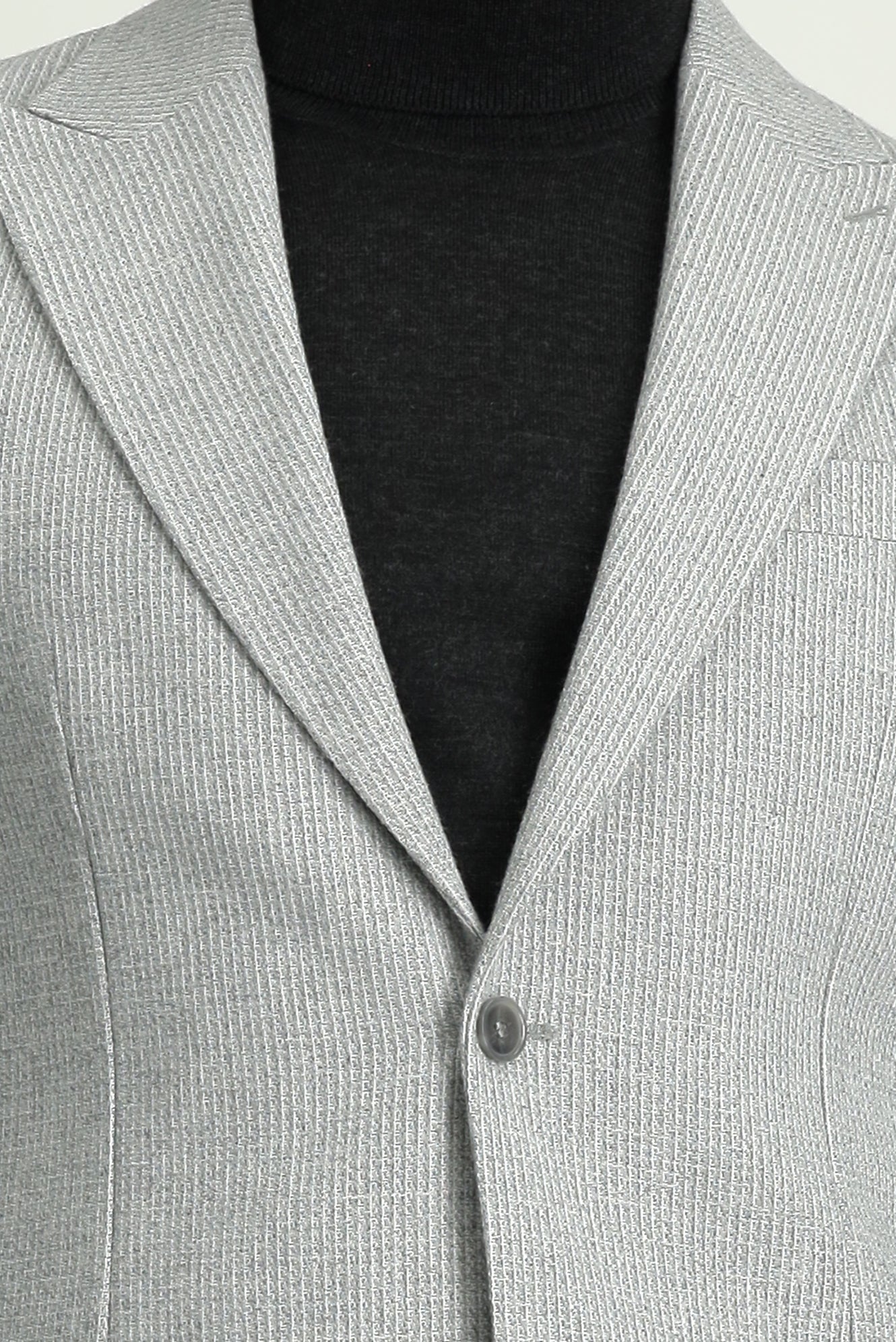 Açık Gri Slim Fit Dar Kesim Yünlü Desenli Spor Ceket