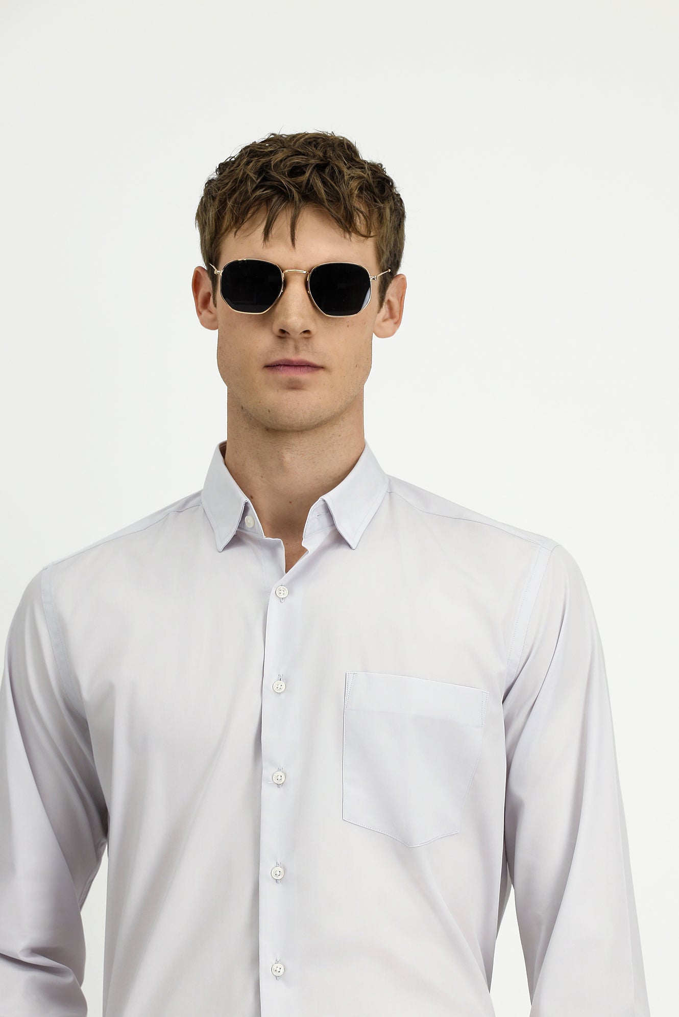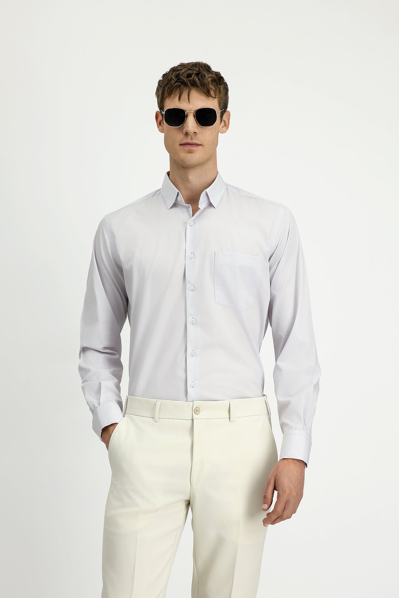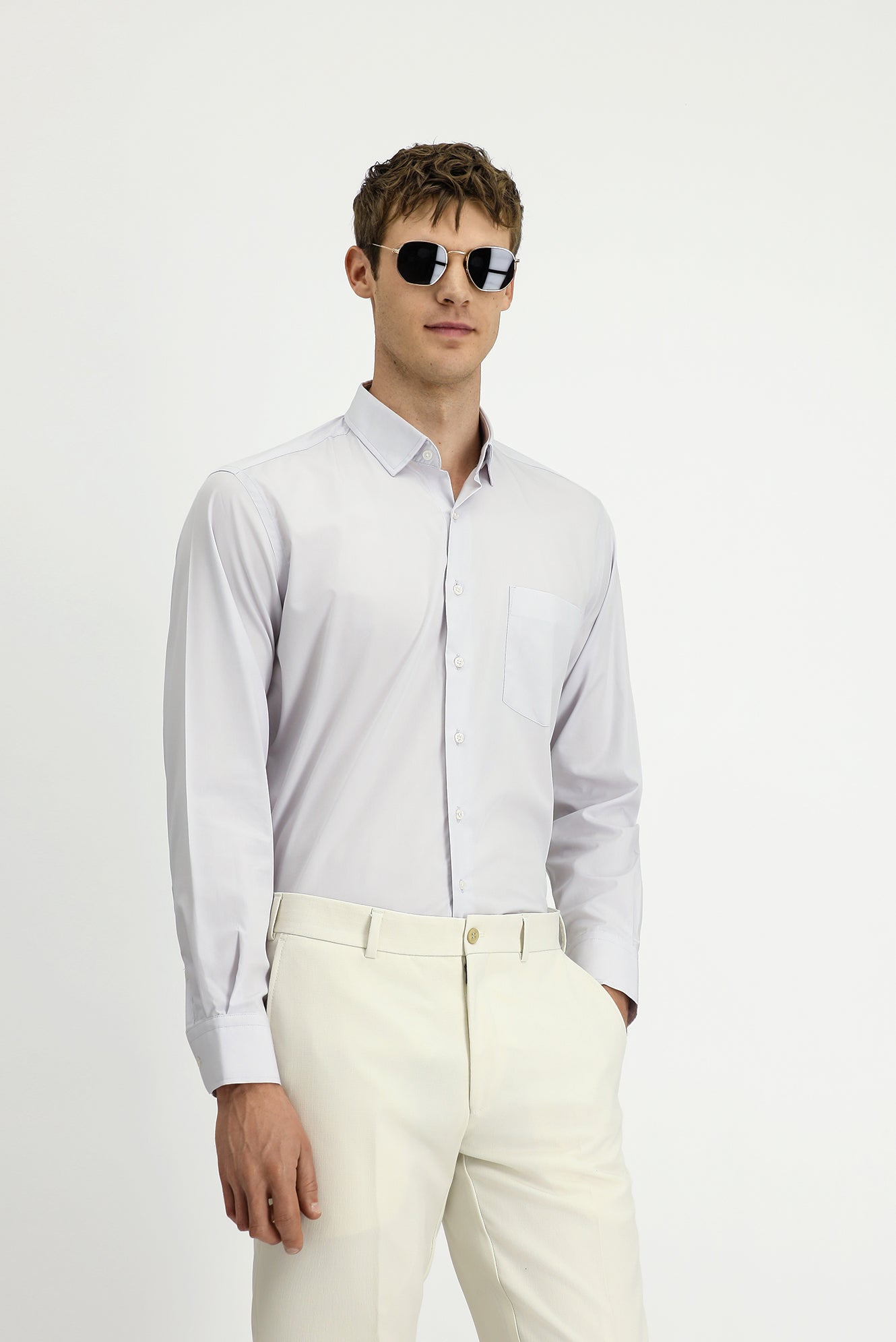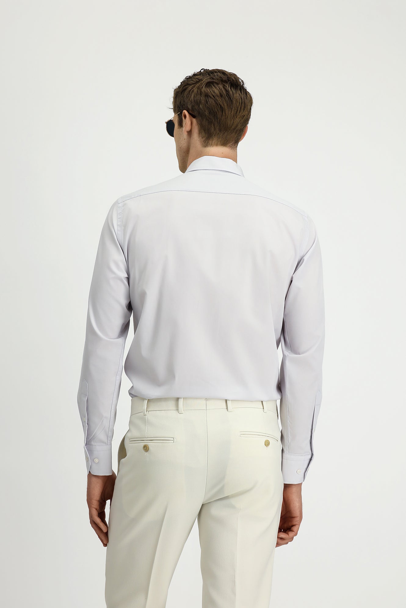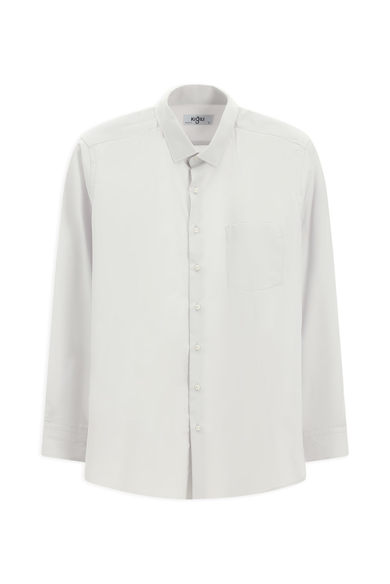 Açık Gri Uzun Kol Klasik Pamuklu Bambu Gömlek