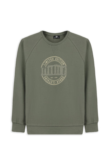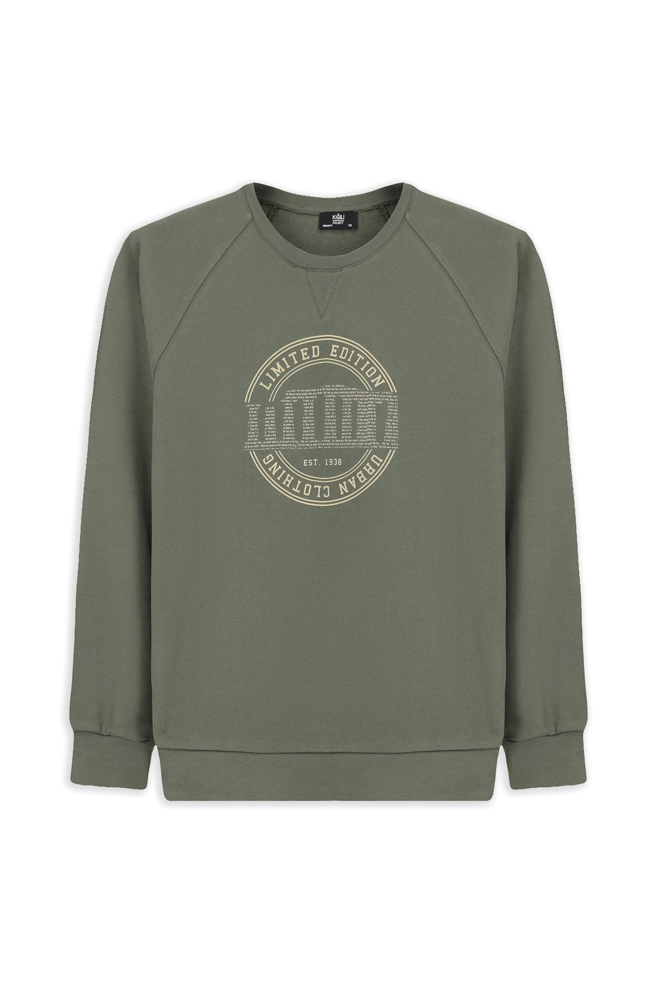 Açık Haki Bisiklet Yaka Regular Fit Baskılı Pamuk Sweatshirt