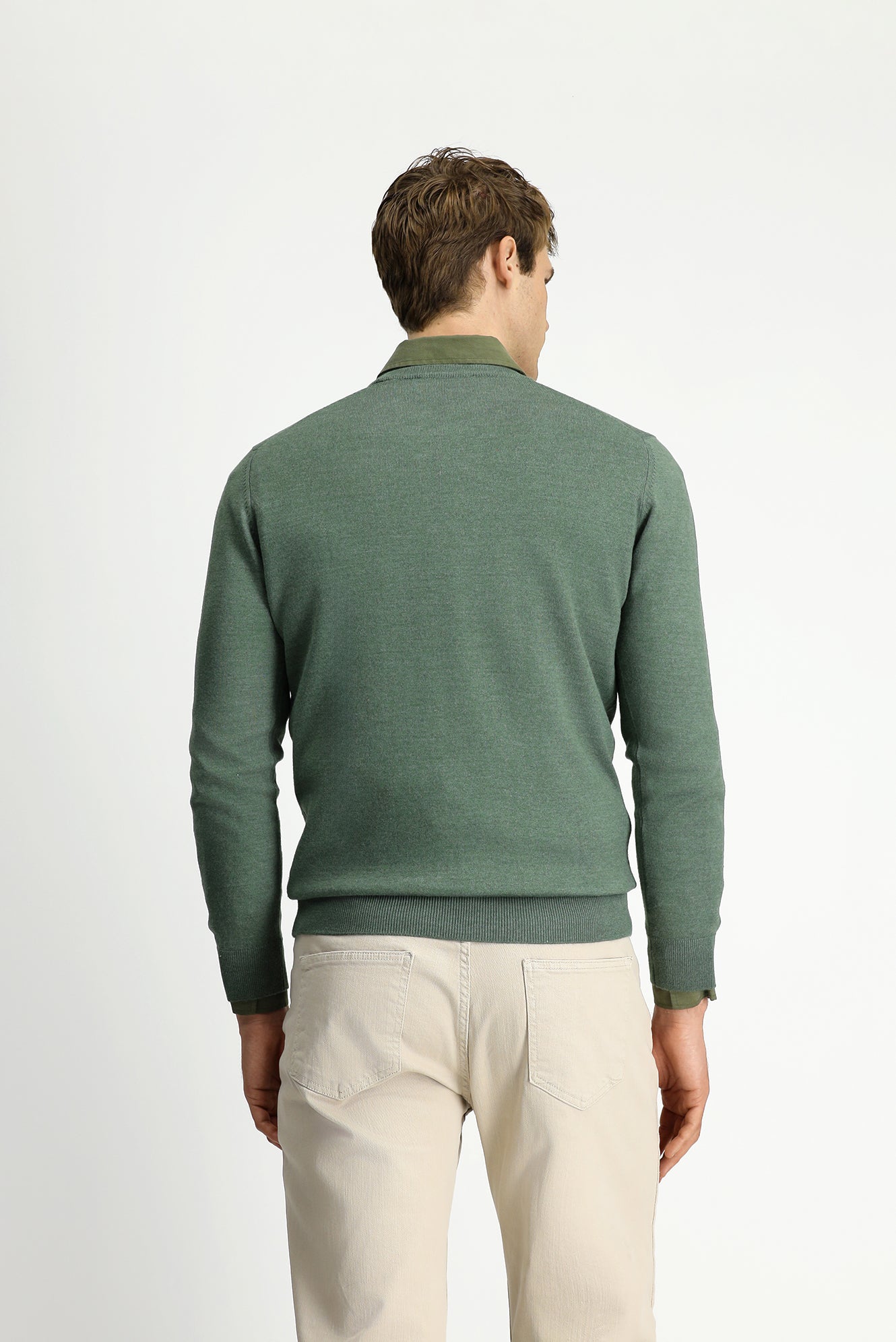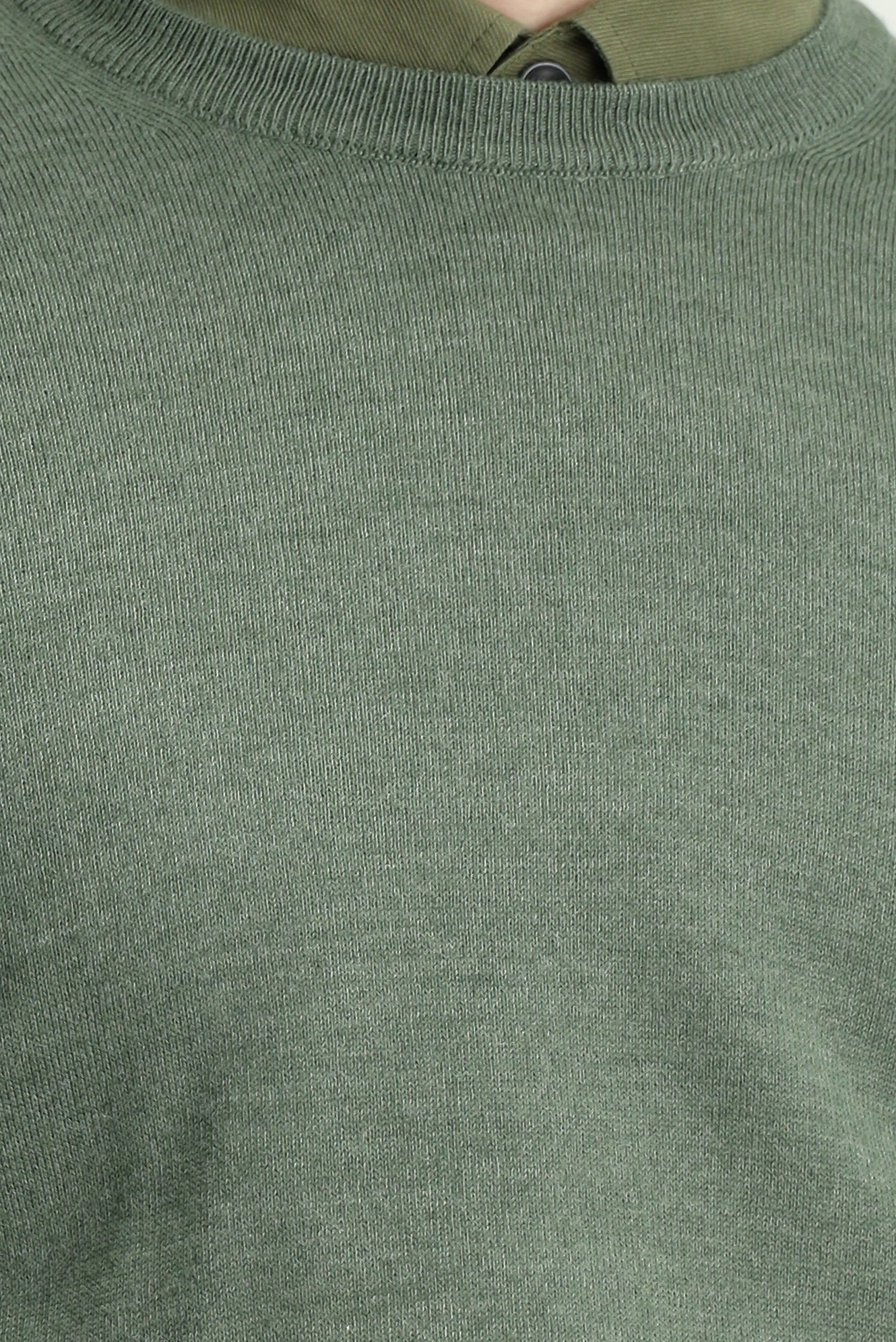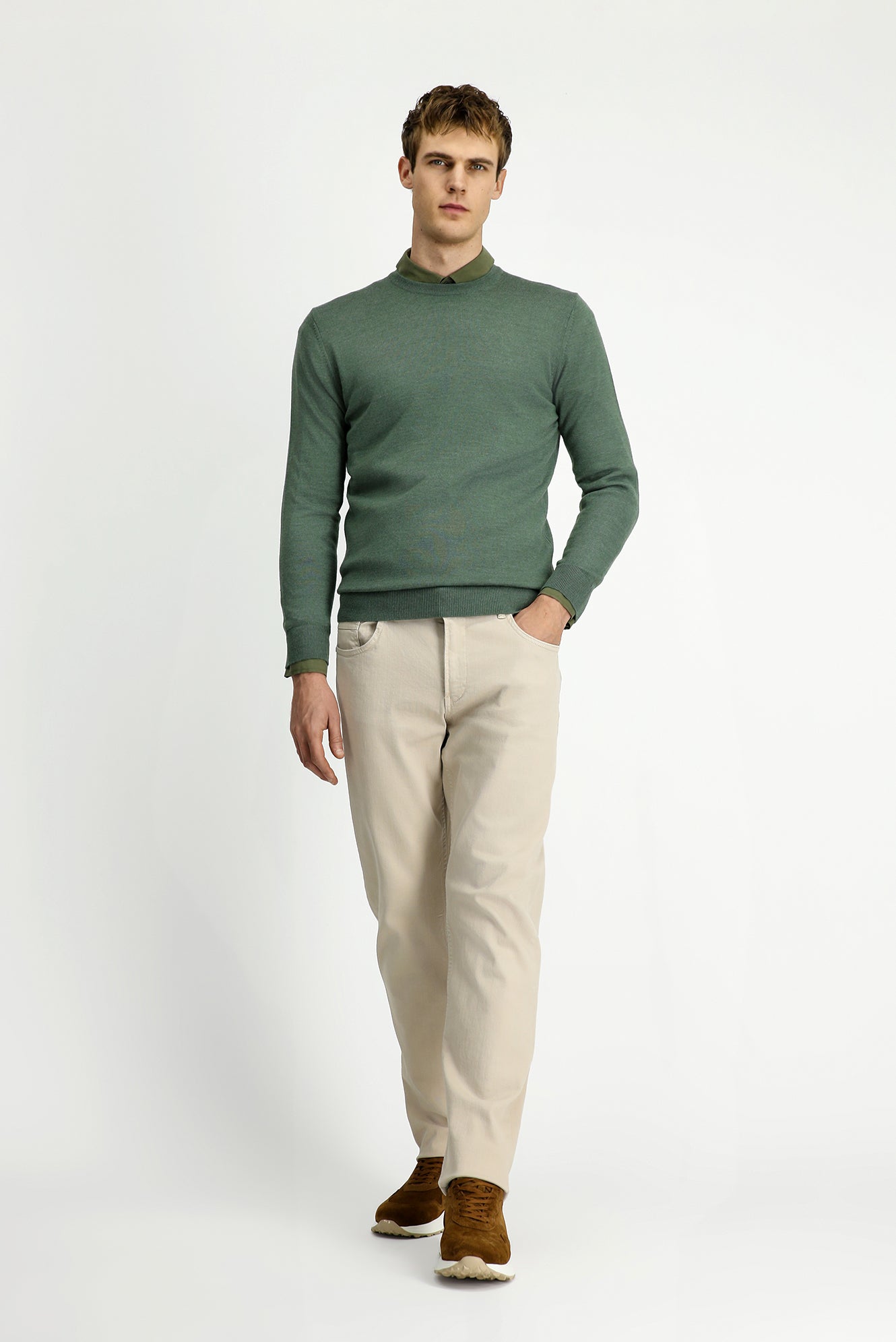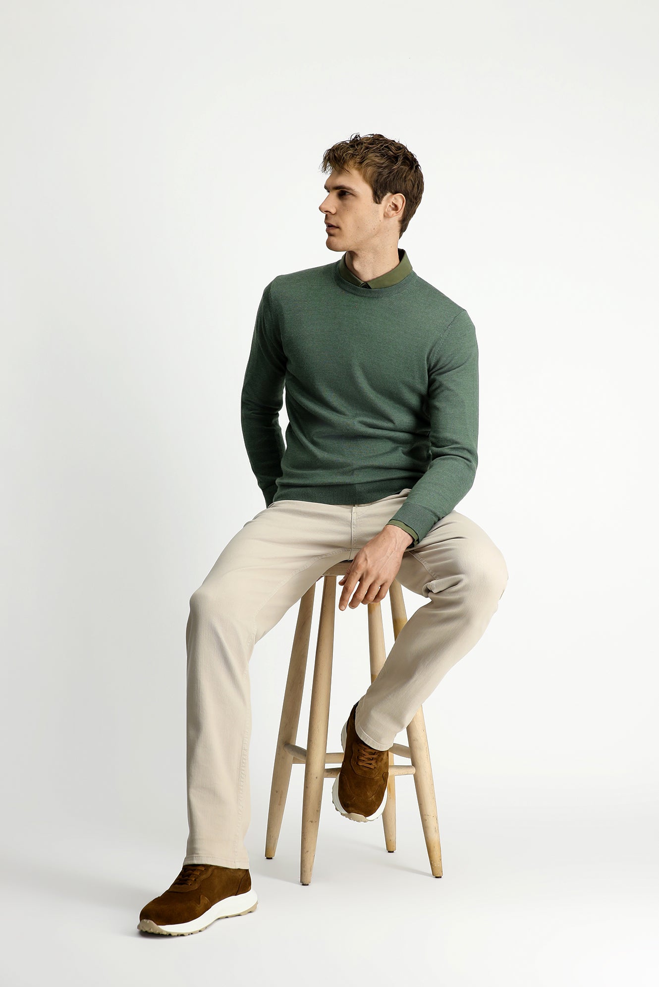 Açık Haki Melanj Bisiklet Yaka Regular Fit Yünlü Triko Kazak