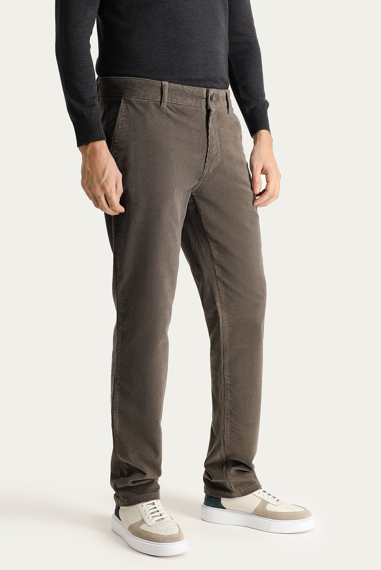Açık Haki Slim Fit Dar Kesim Likralı Kadife Pantolon