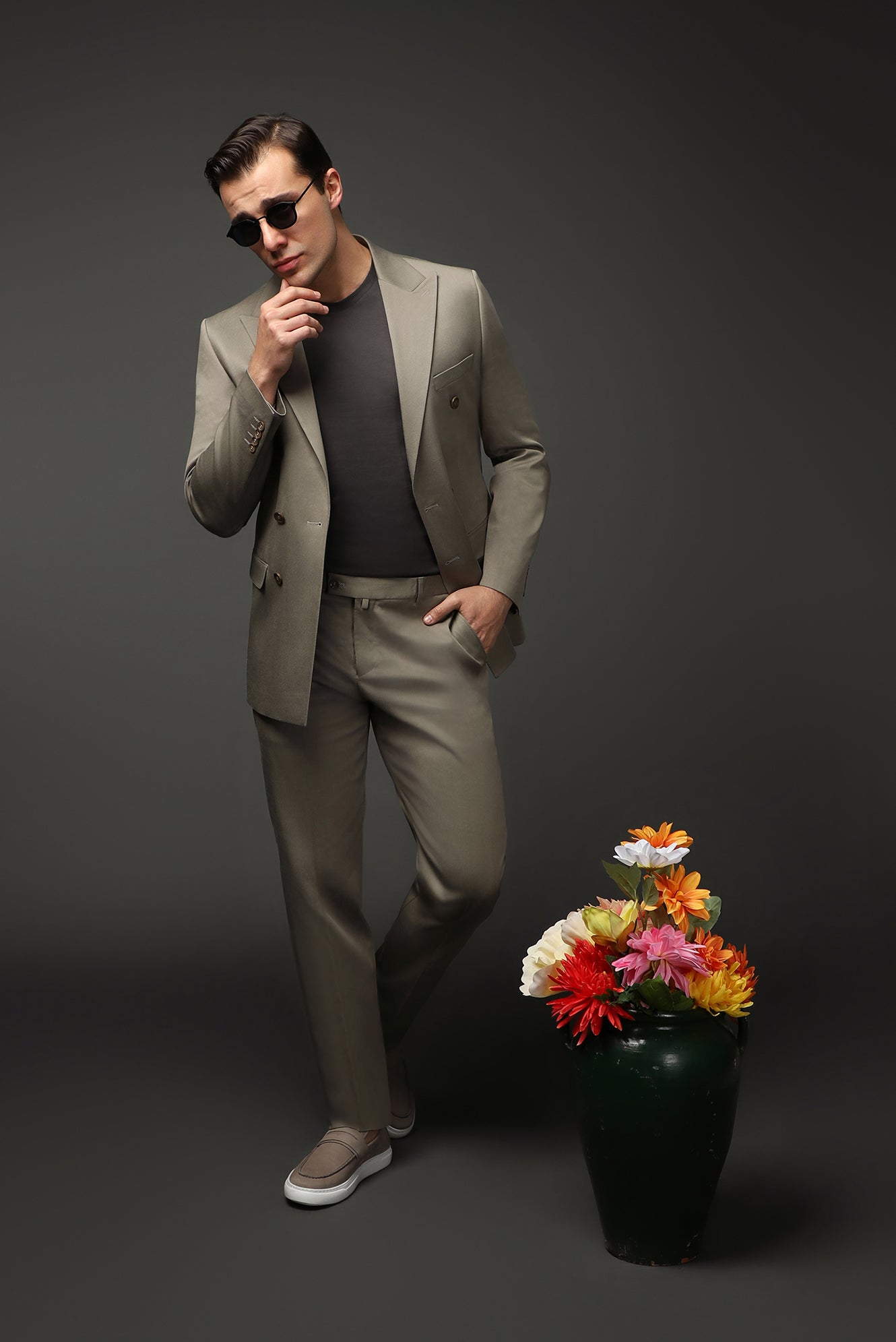 Açık Haki 7 Drop Slim Fit Dar Kesim Pamuklu Lyocell Kruvaze Takım Elbise