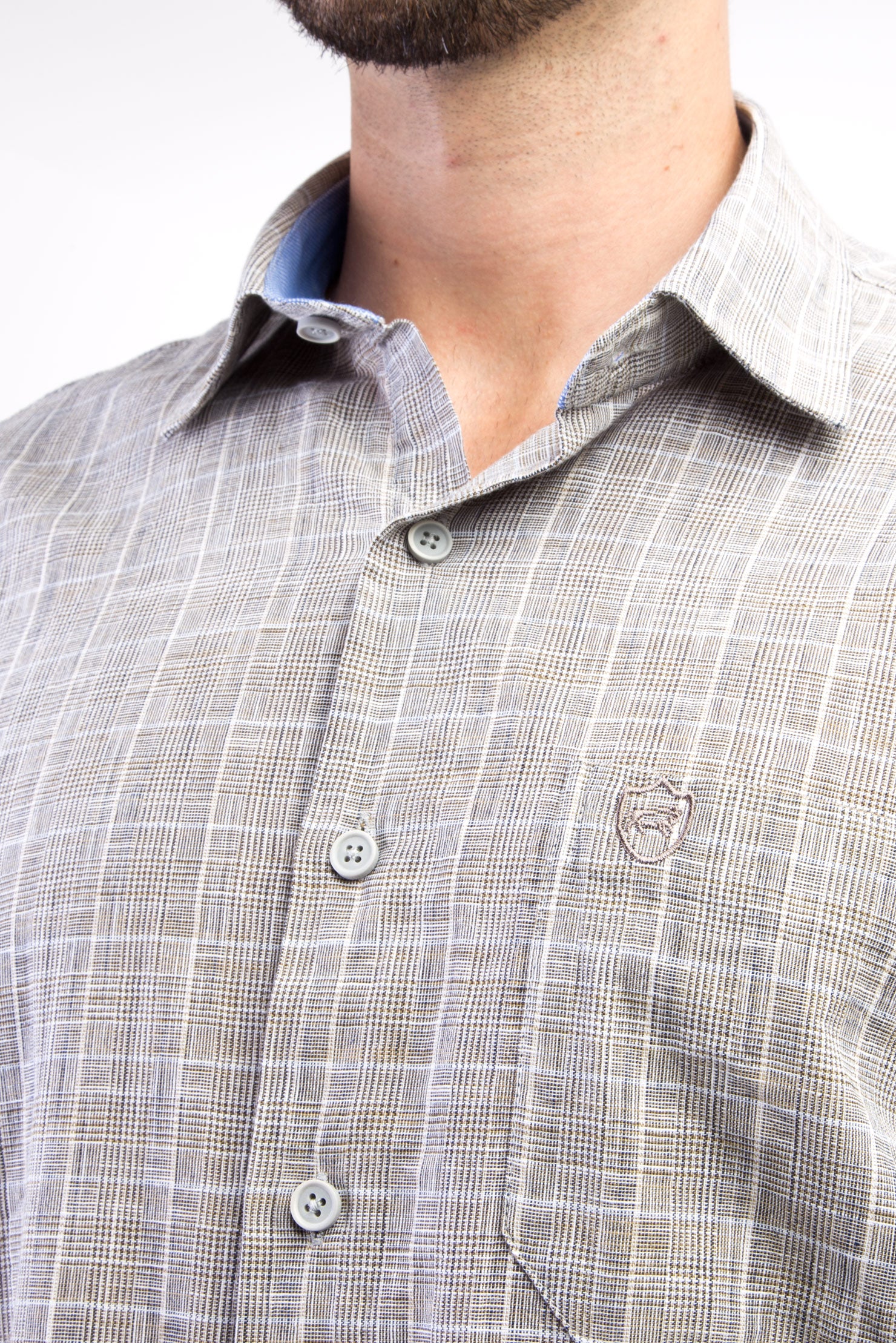 Açık Kahve - Camel Kısa Kol Regular Fit Ekose Pamuk Gömlek