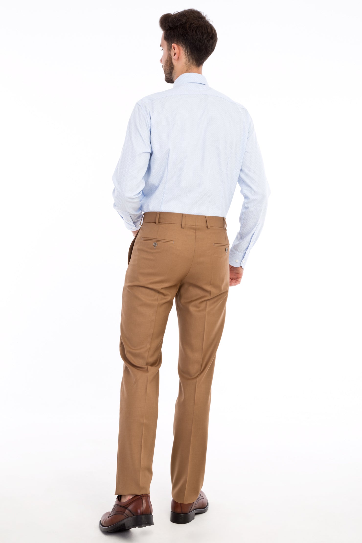 Açık Kahve - Camel Regular Fit Yünlü Klasik Kumaş Pantolon