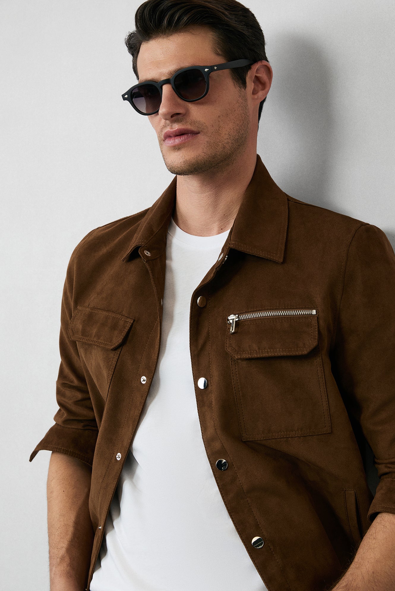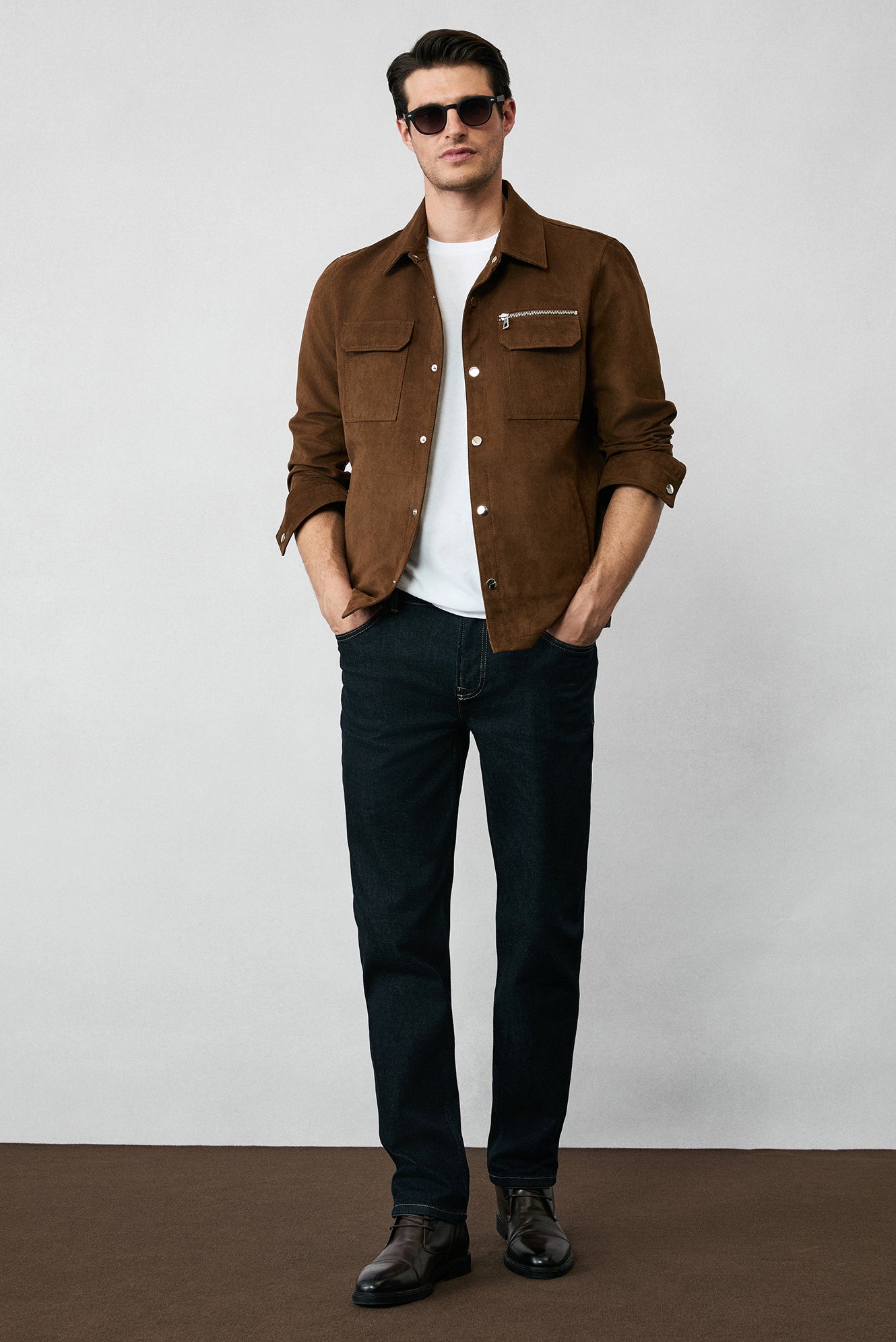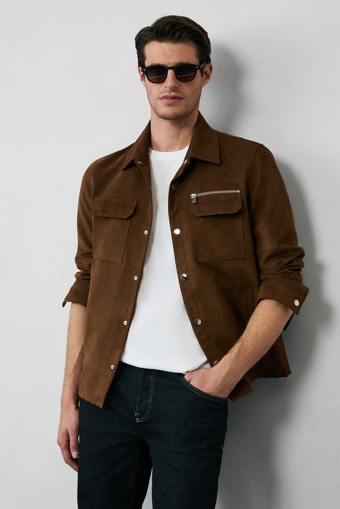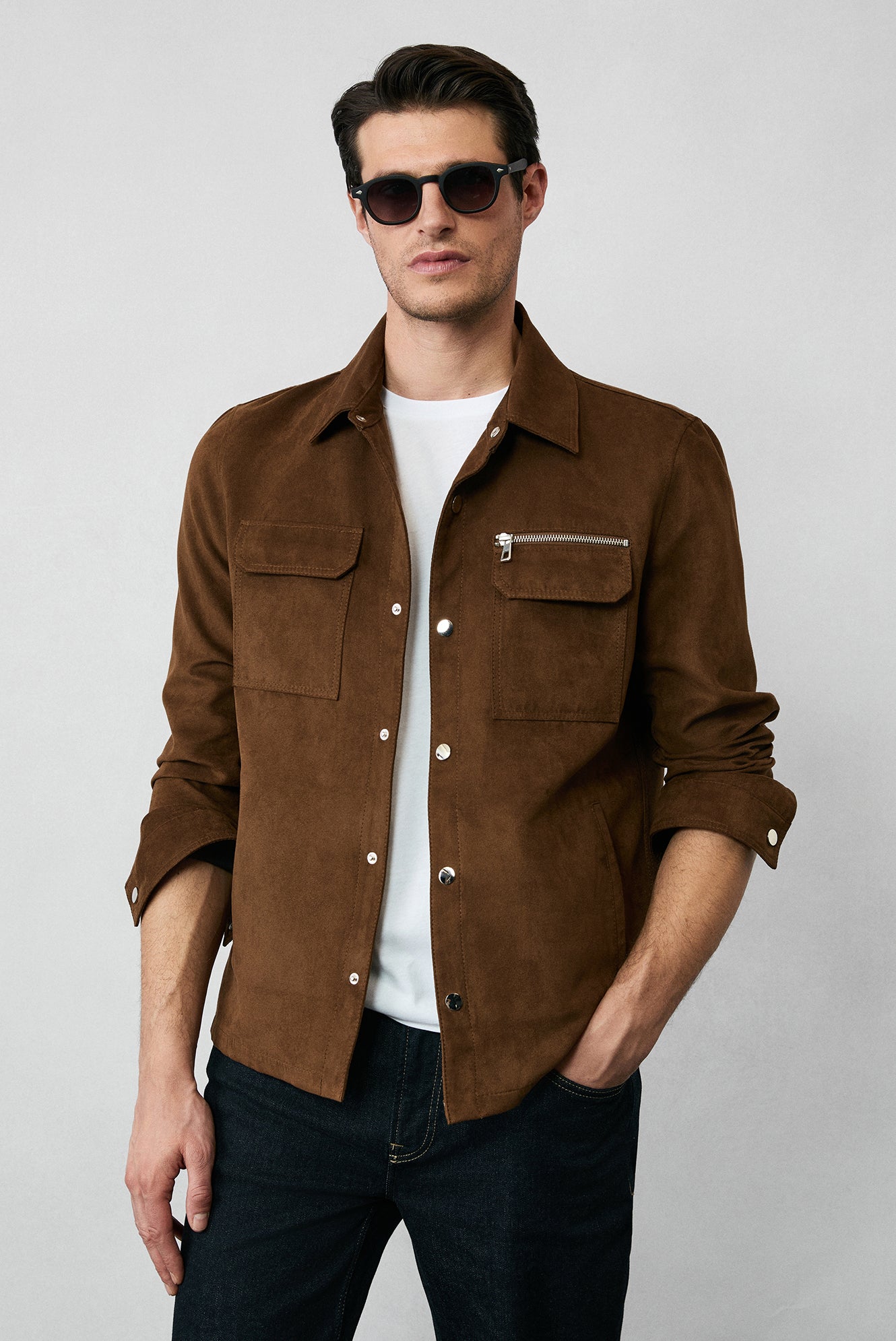 Açık Kahve Cepli Çıtçıtlı Süet Ceket / Mont