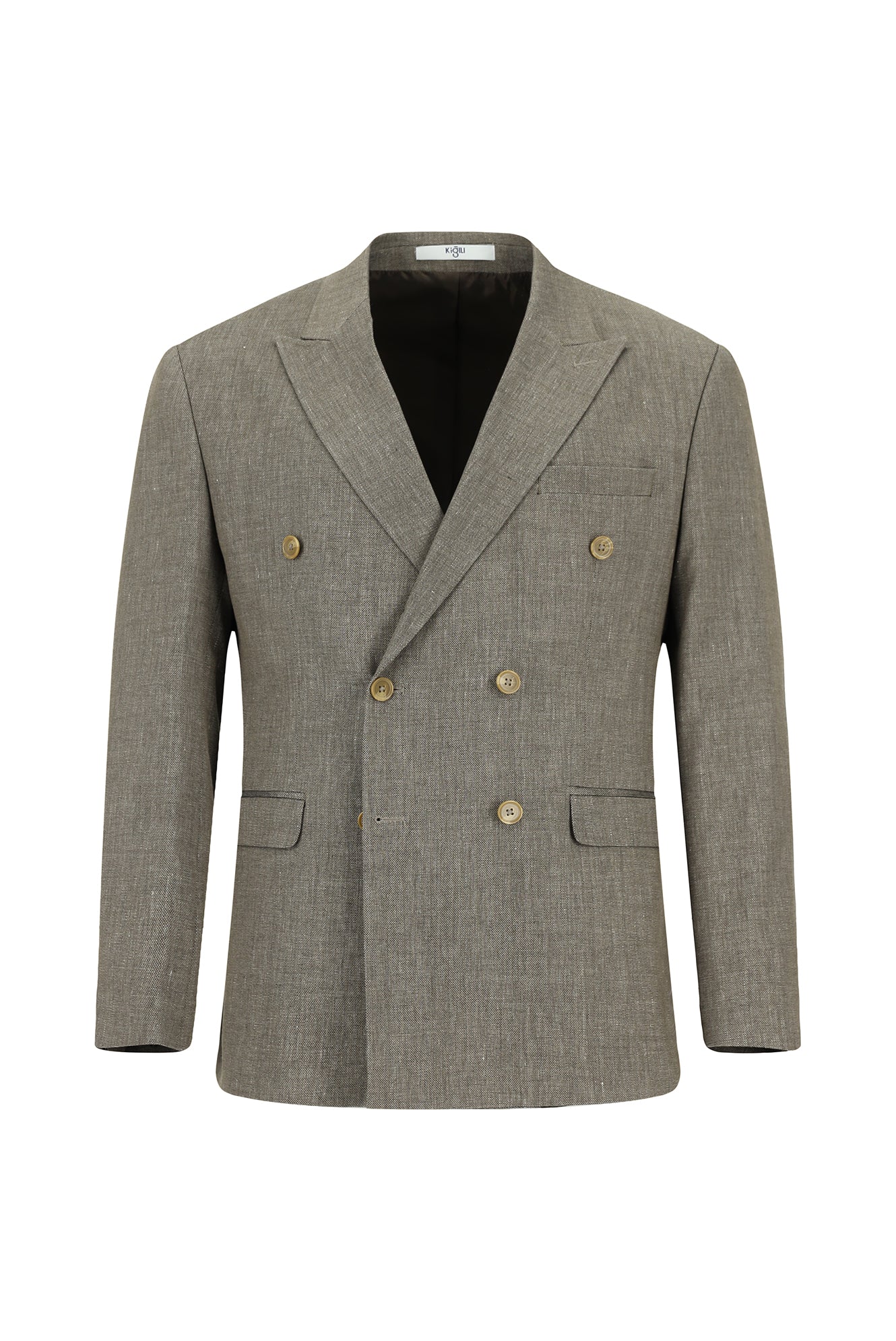Açık Kahve Slim Fit Dar Kesim Keten Karışımlı Kruvaze Takım Elbise