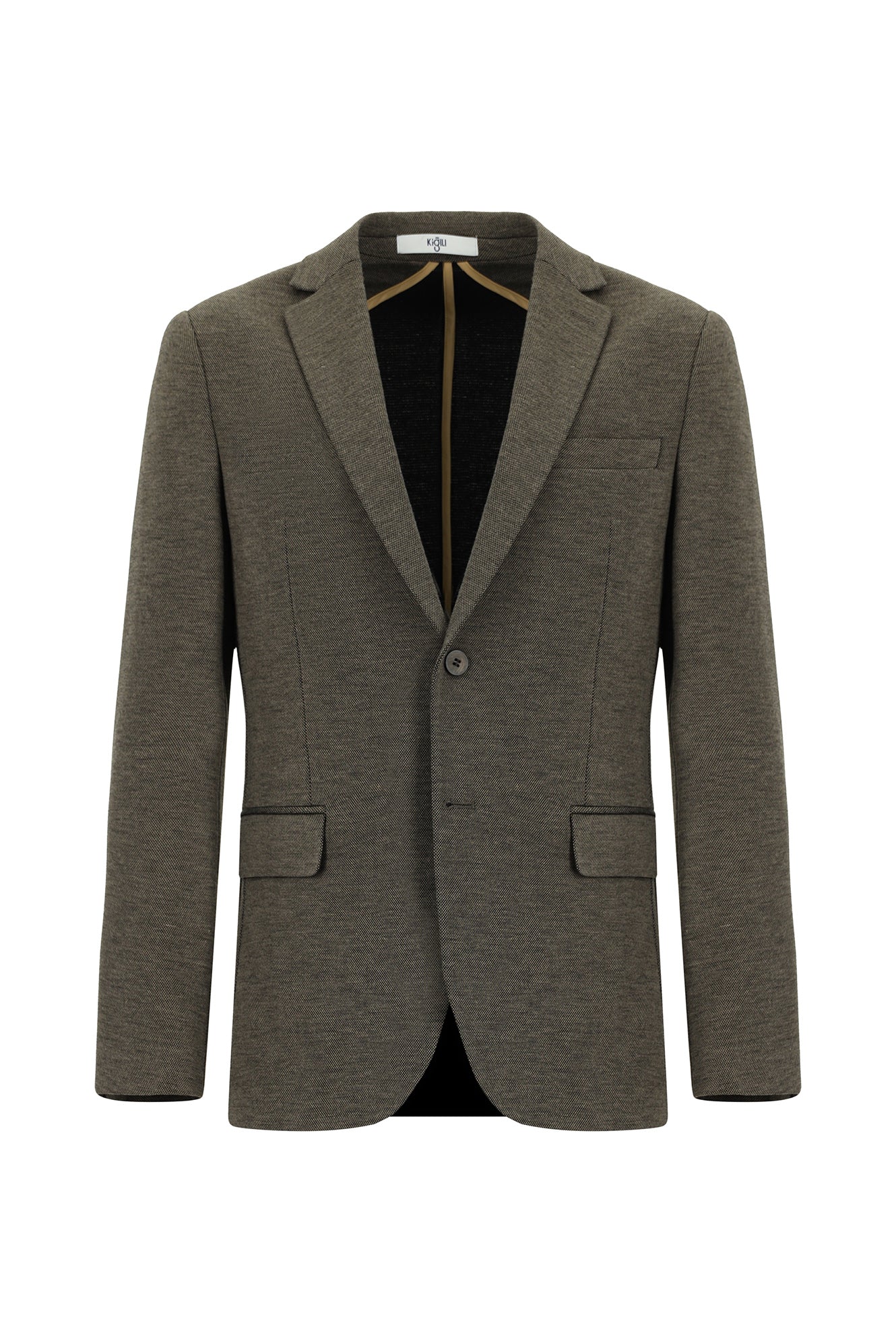Açık Kahve Super Slim Fit Ekstra Dar Kesim Klasik Desenli Örme Ceket