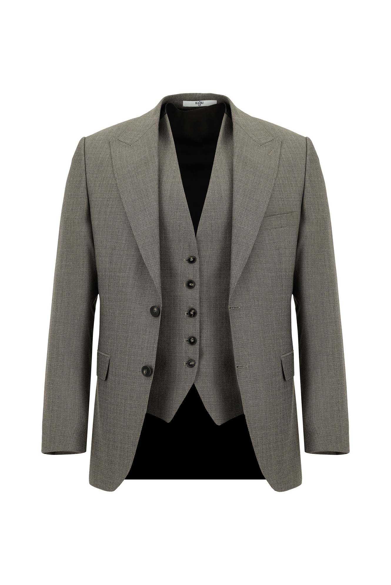 Açık Kahve 7 Drop Super Slim Fit Eksra Dar Kesim Kombinli Yelekli Takım Elbise