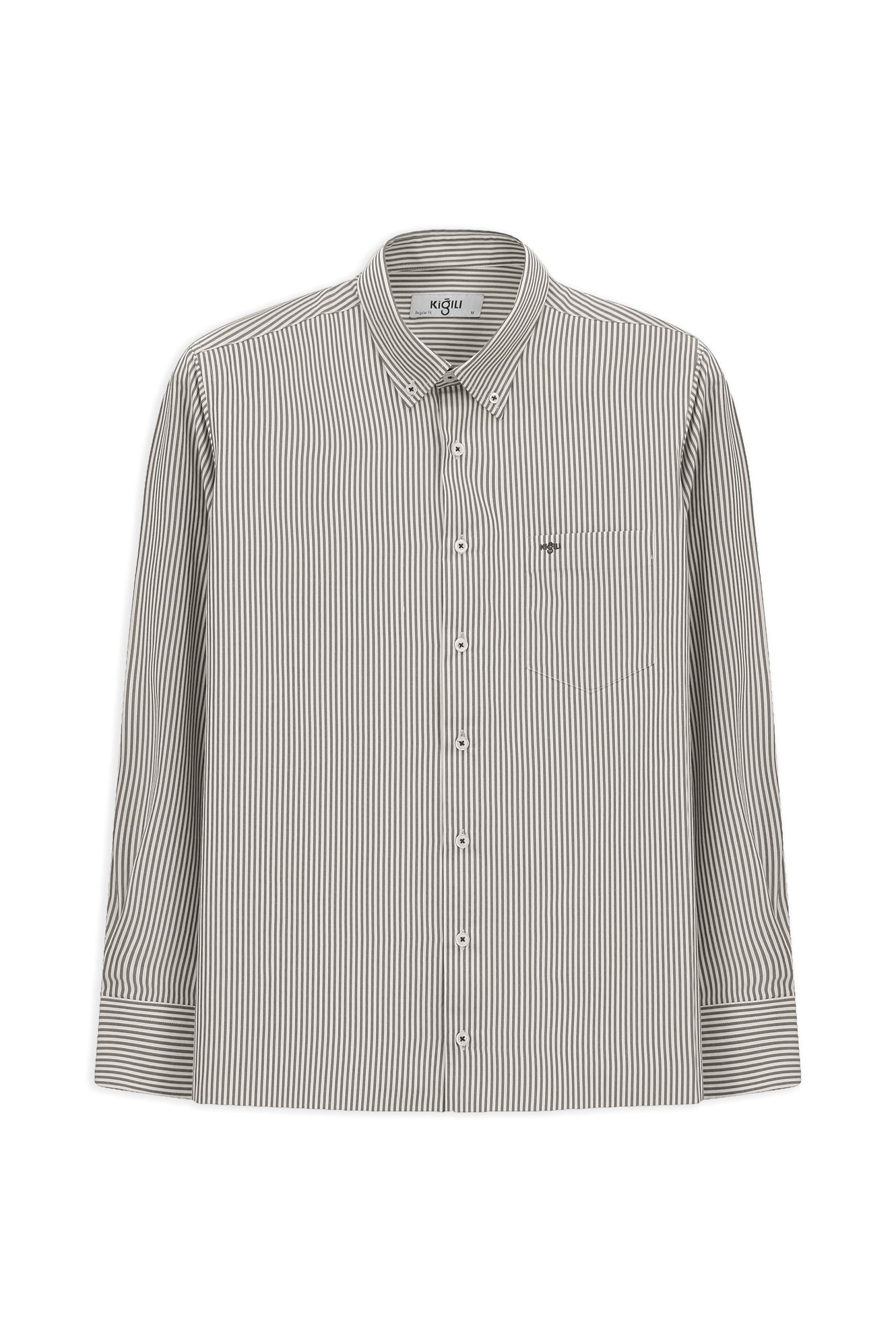 Açık Kahve Uzun Kol Regular Fit Çizgili Düğmeli Yaka Pamuklu Kolay Ütülenebilir Gömlek