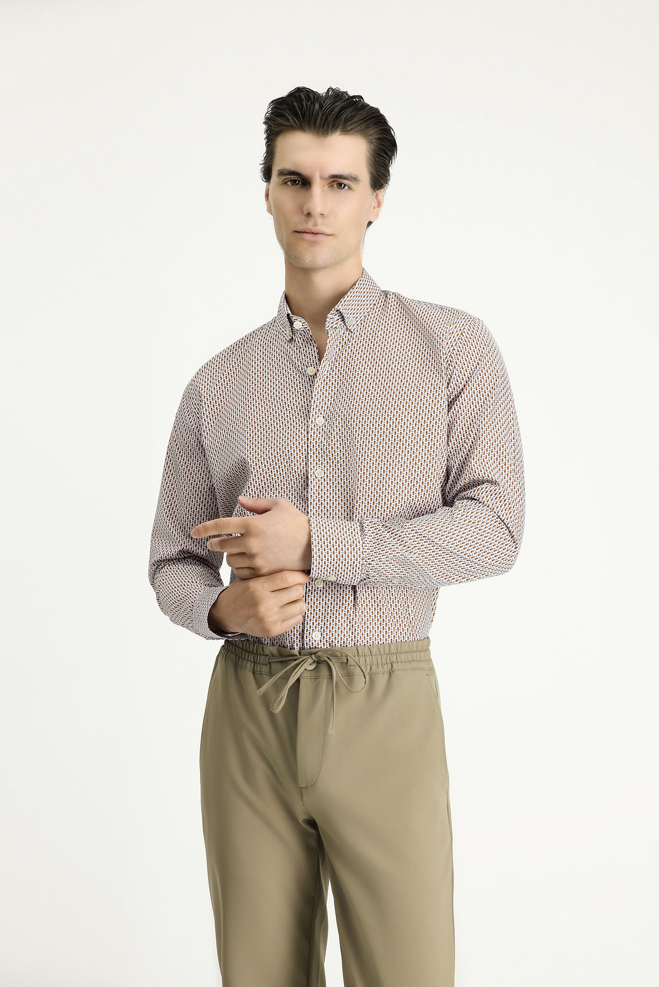 • Açık Kahve  Uzun Kol Slim Fit Dar Kesim Baskılı Pamuk Düğmeli Yaka Gömlek ₺1.250 ve Üzeri Ücretsiz Teslimat