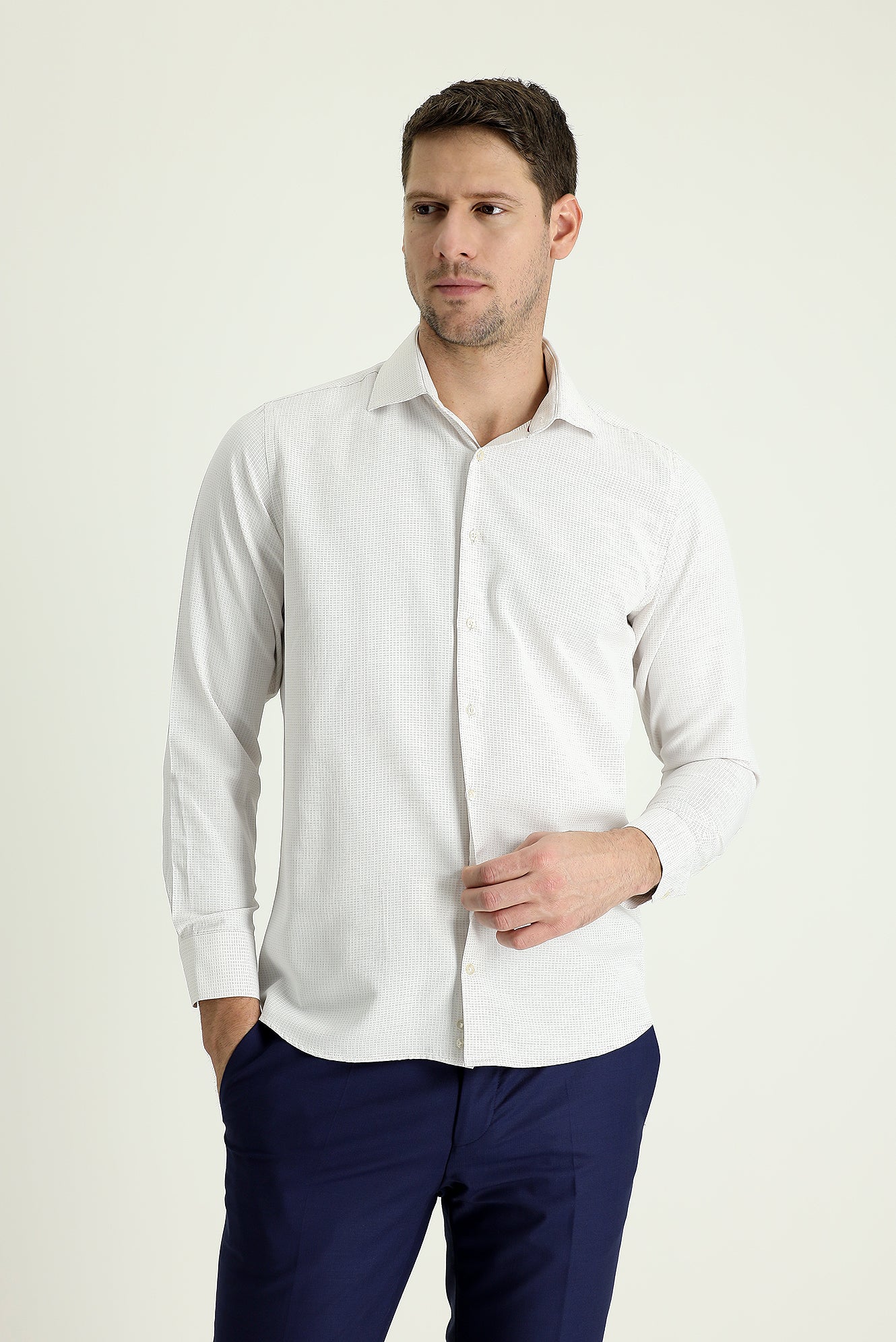 Açık Kahve Uzun Kol Slim Fit Dar Kesim Klasik Pamuklu Kolay Ütülenebilir Gömlek
