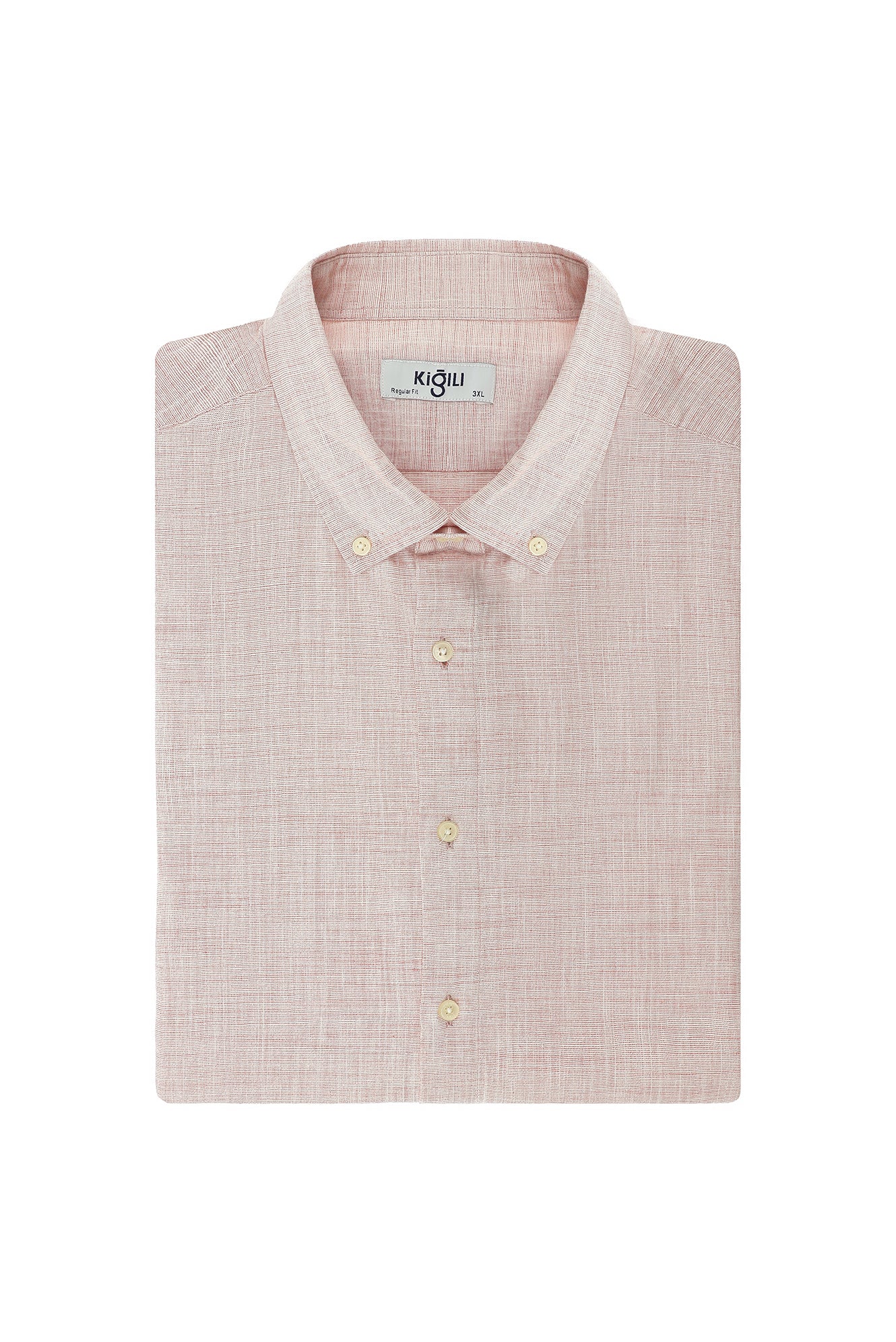Açık Kırmızı Büyük Beden Uzun Kol Desenli Pamuk Düğmeli Yaka Gömlek