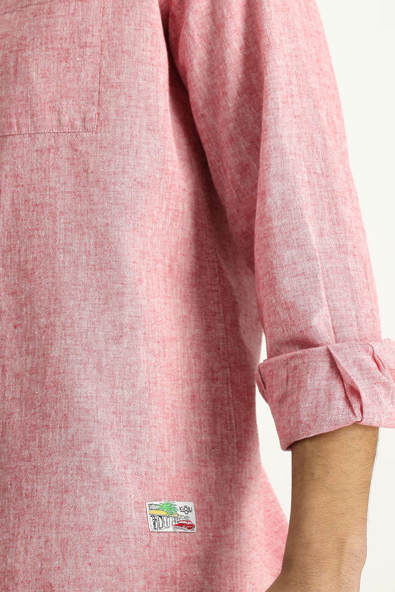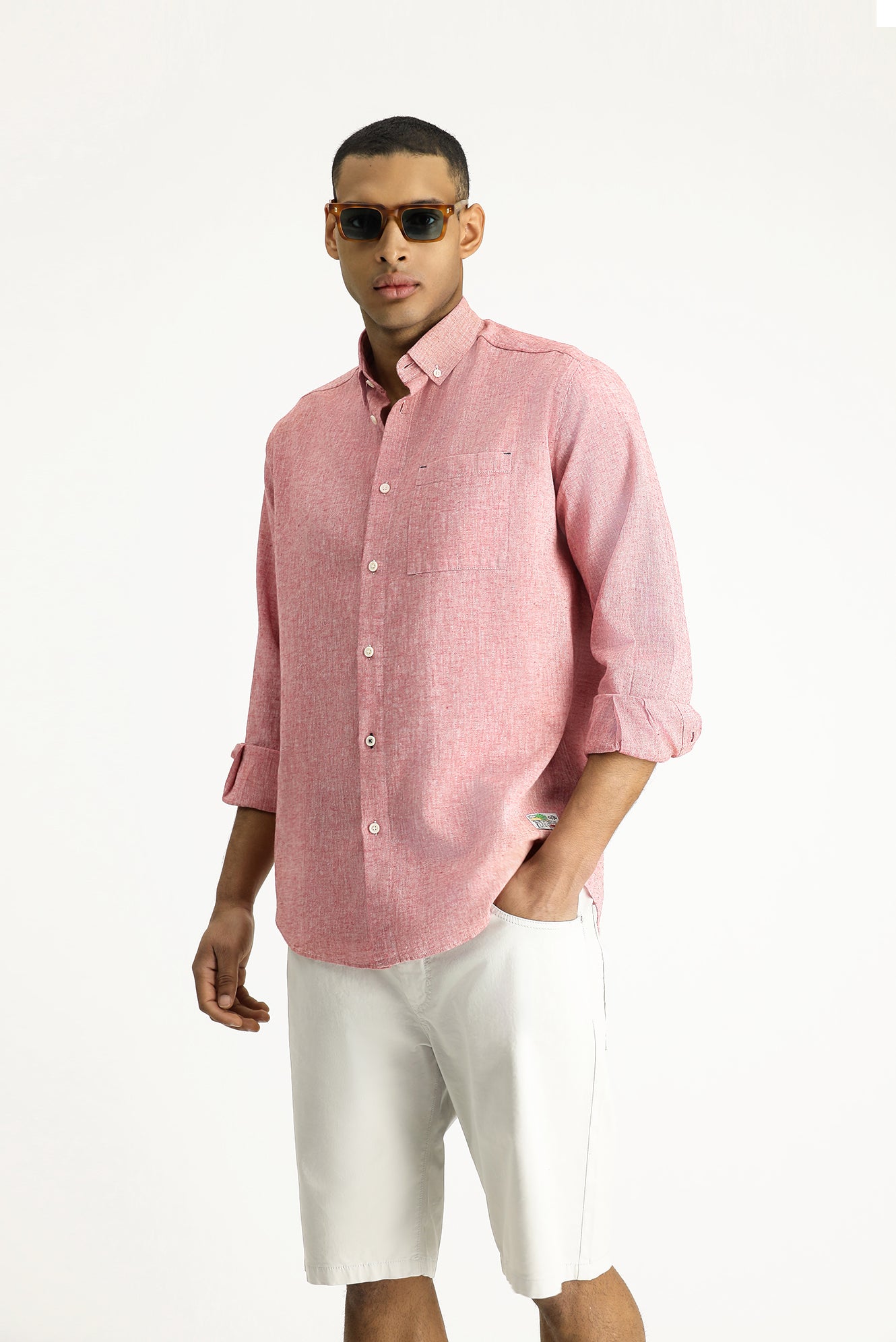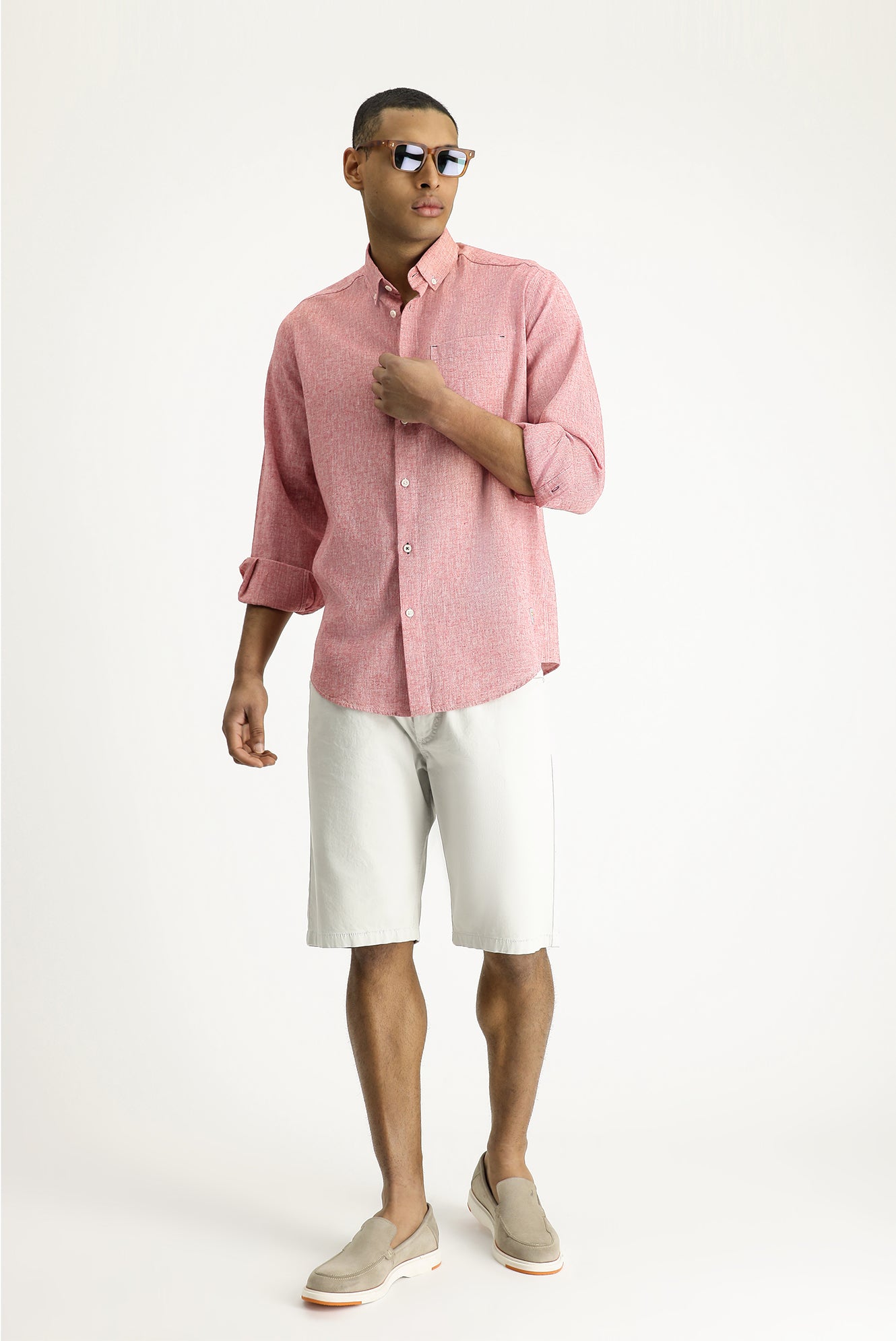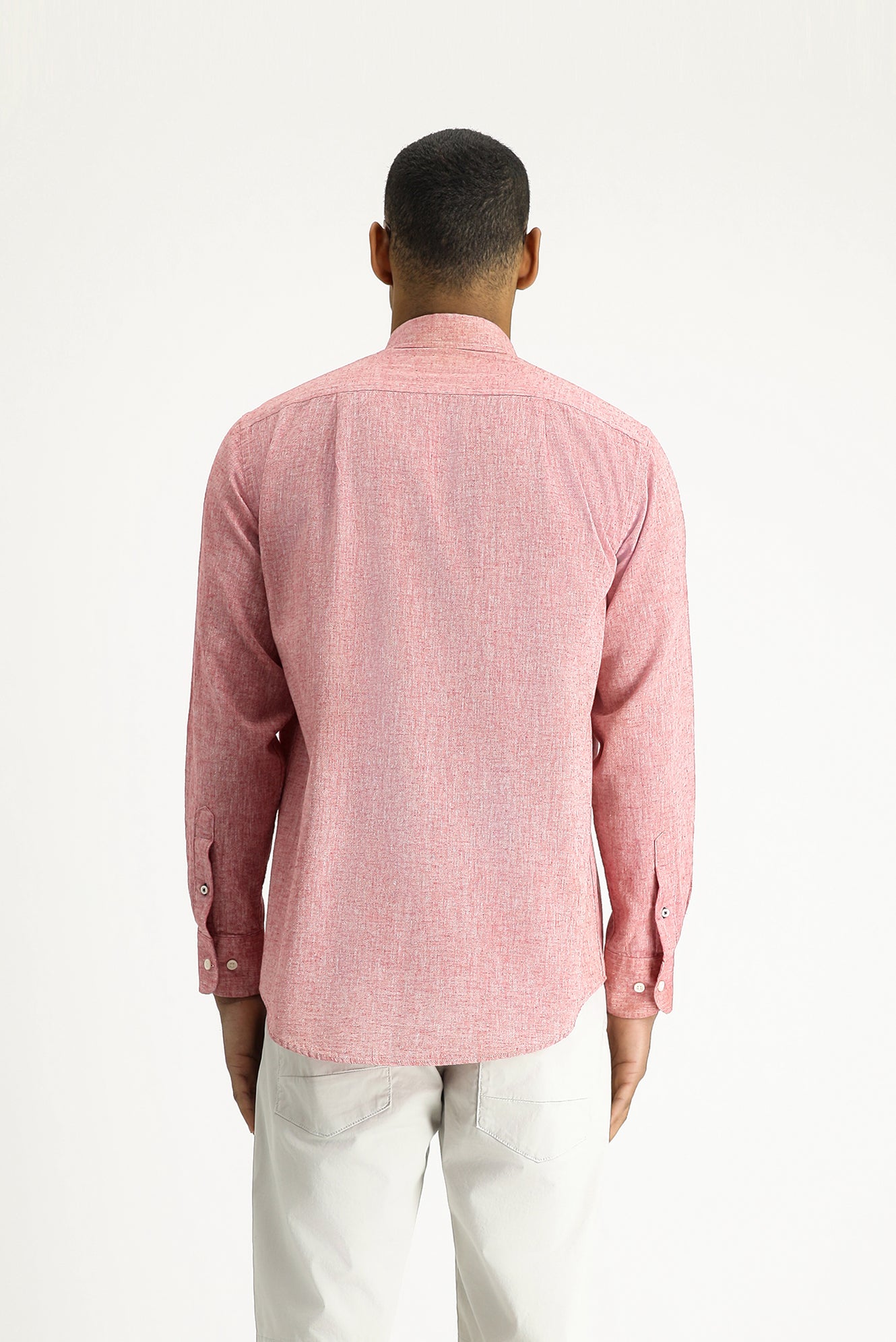 Açık Kırmızı Uzun Kol Regular Fit Spor Keten Karışımlı Düğmeli Yaka Gömlek