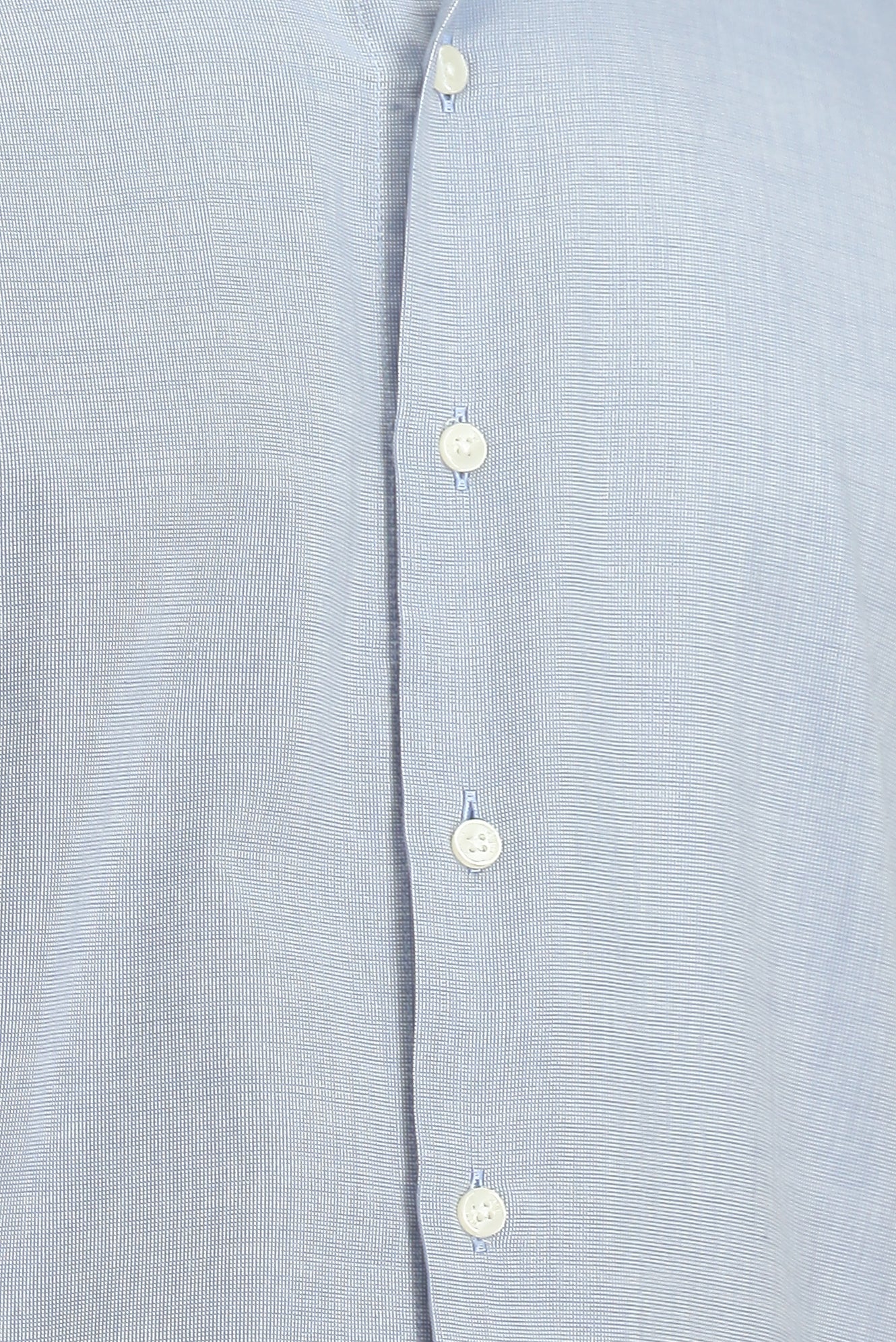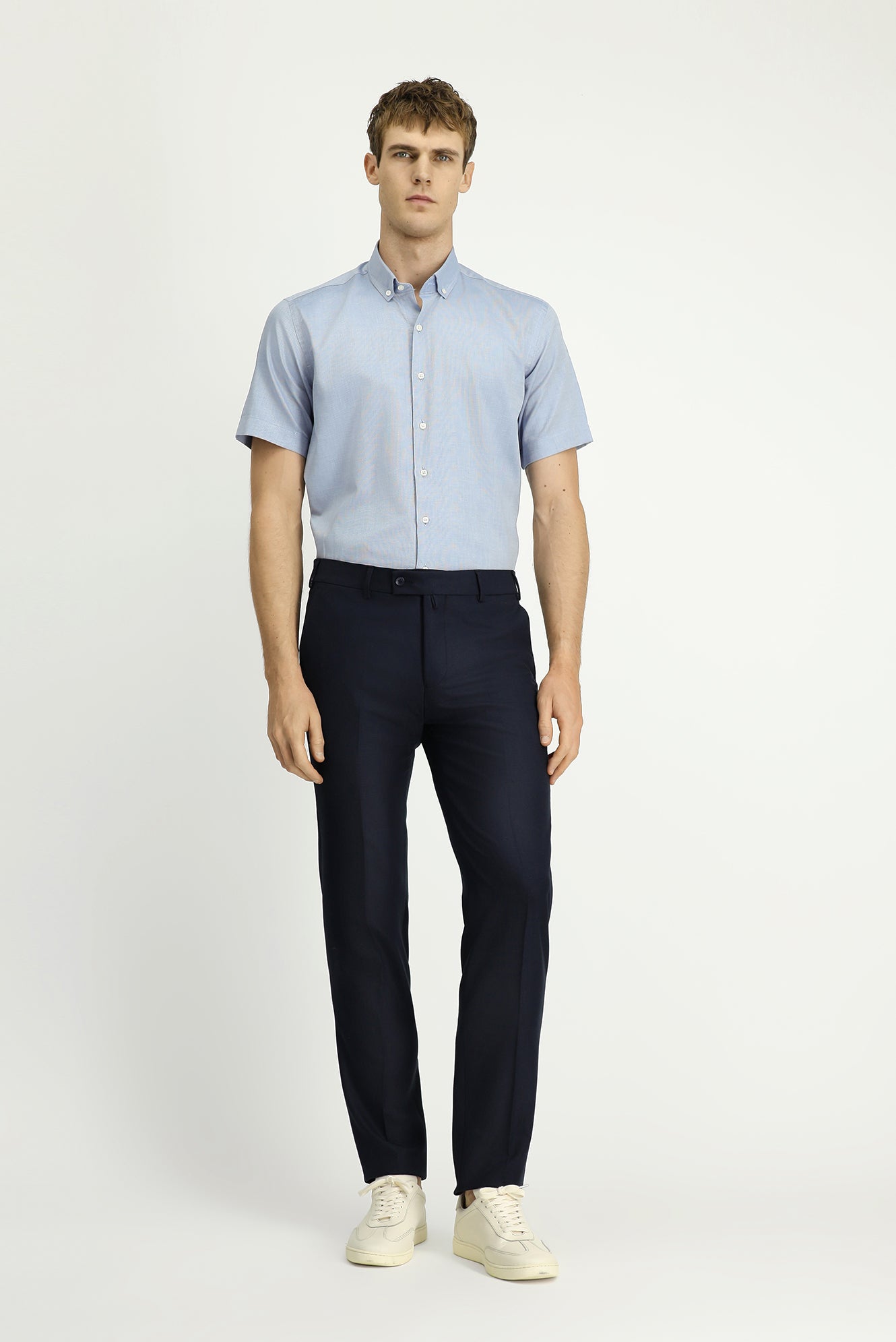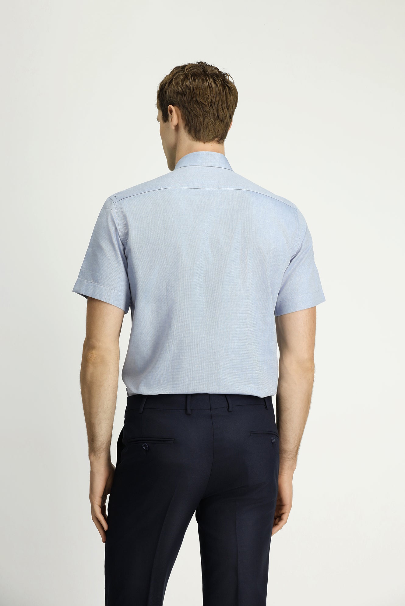 Açık Lacivert Kısa Kol Regular Fit Cepli Düğmeli Yaka Desenli Pamuk Gömlek