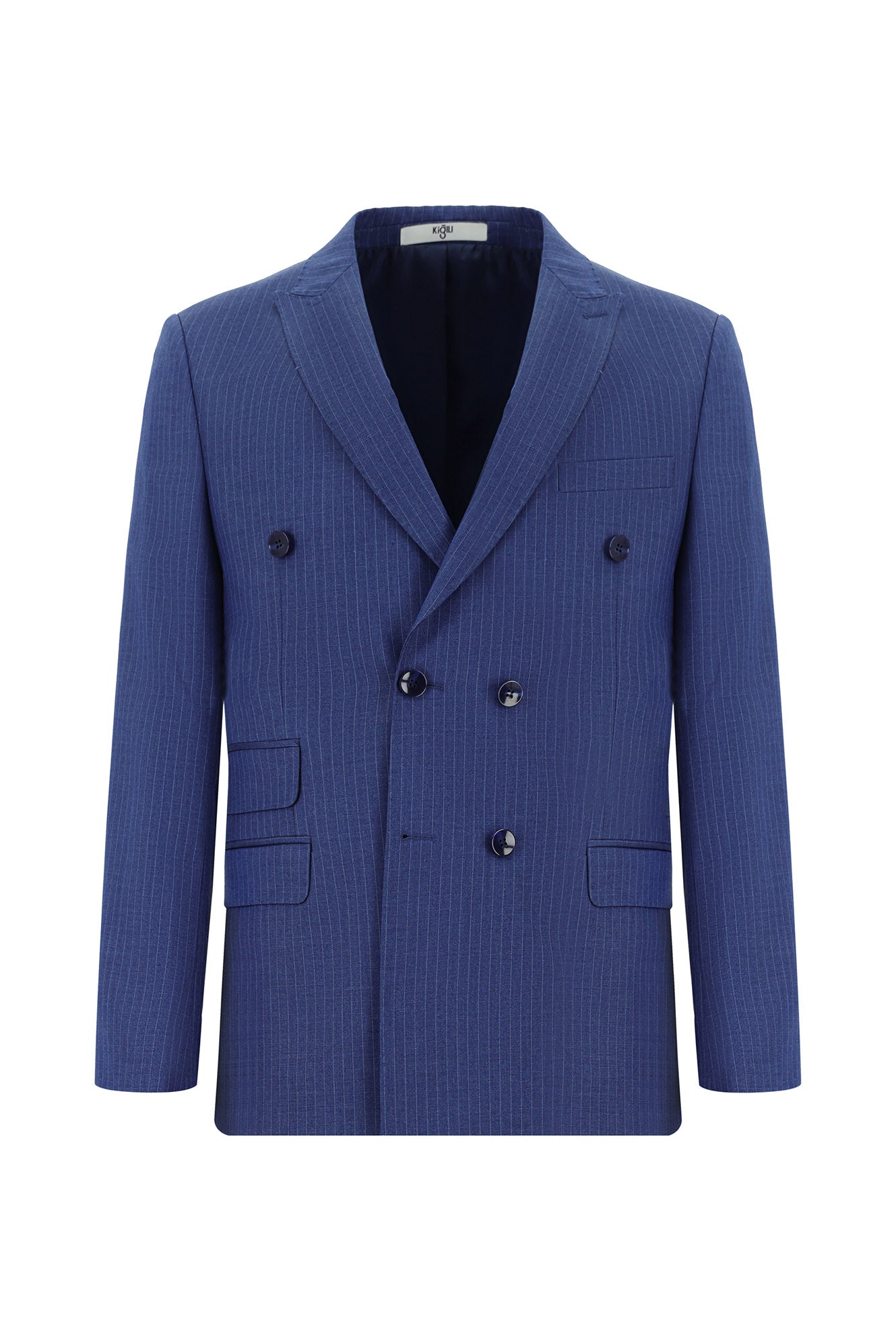 Açık Lacivert 6 Drop Regular Fit Standart Kesim Çizgili Kruvaze Takım Elbise