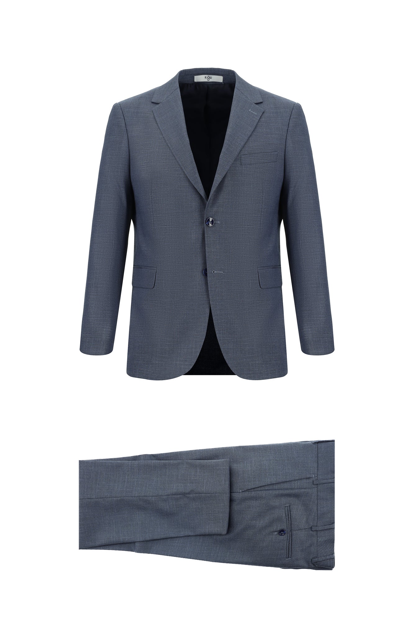 Açık Lacivert Relaxed Fit Rahat Kesim Klasik Desenli Takım Elbise