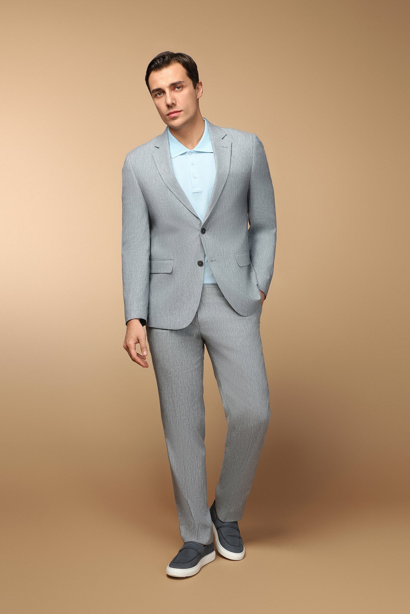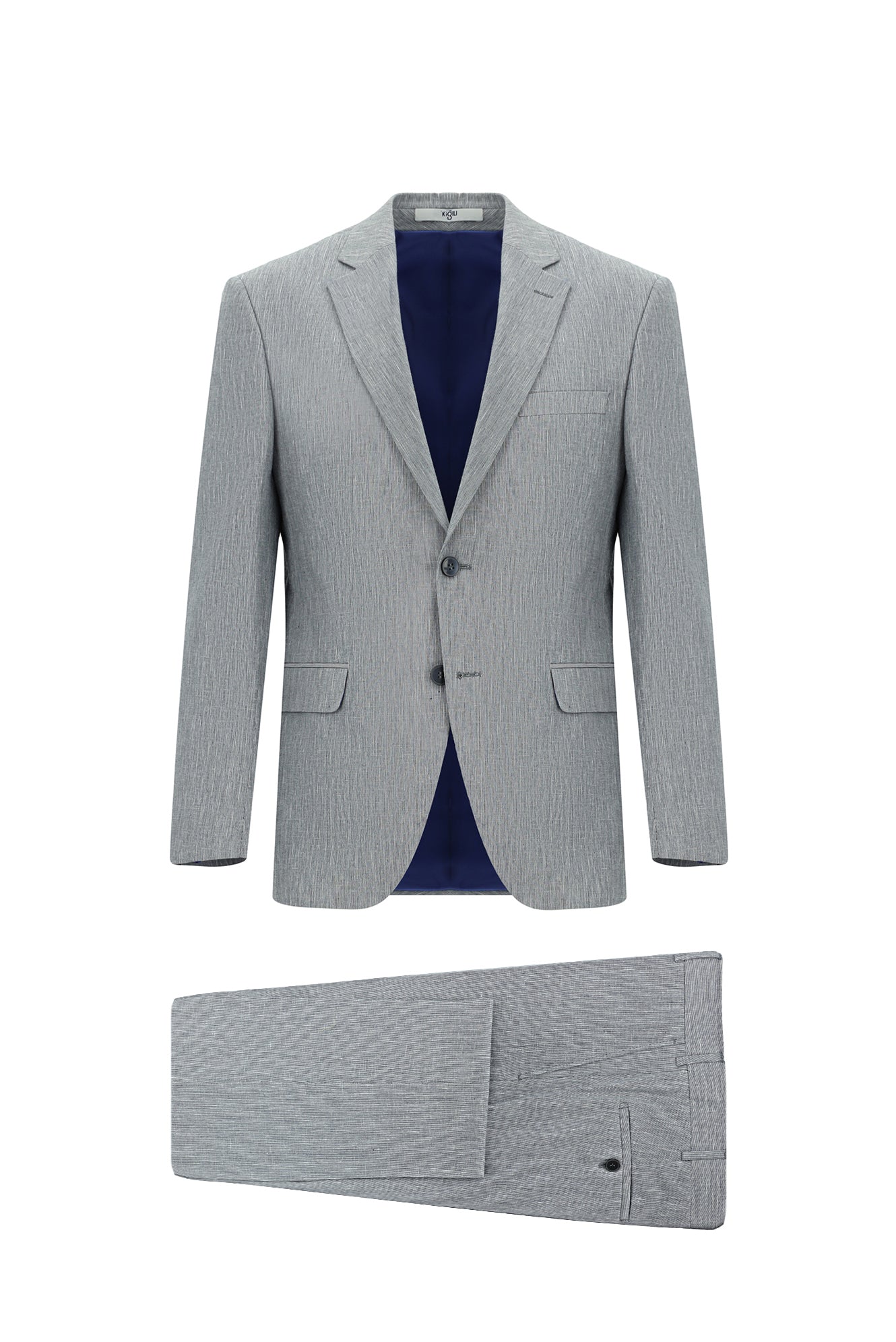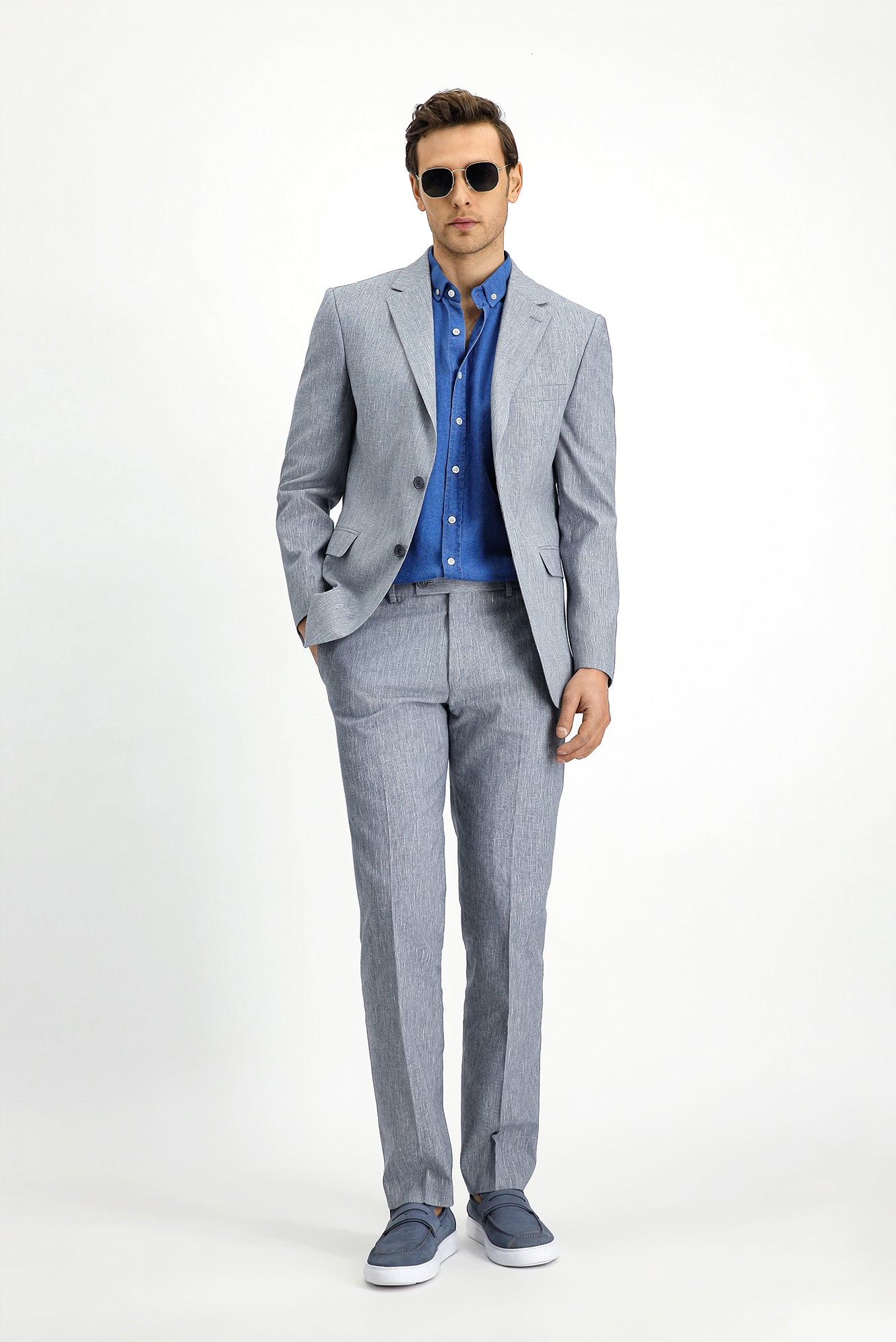 Açık Lacivert 7 Drop Slim Fit Dar Kesim Keten Karışımlı Takım Elbise