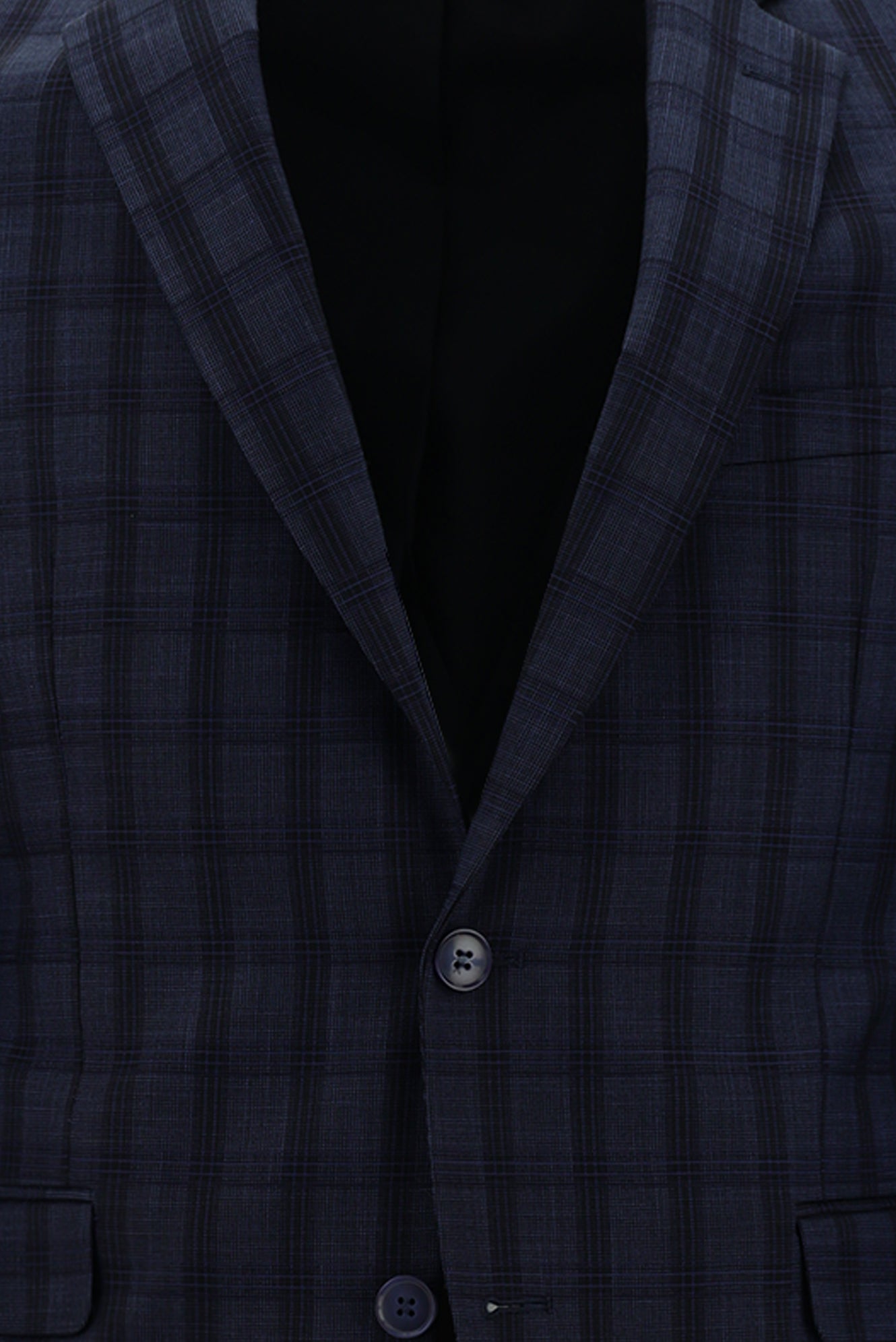 Açık Lacivert 7 Drop Slim Fit Dar Kesim Kombinli Ekose Takım Elbise