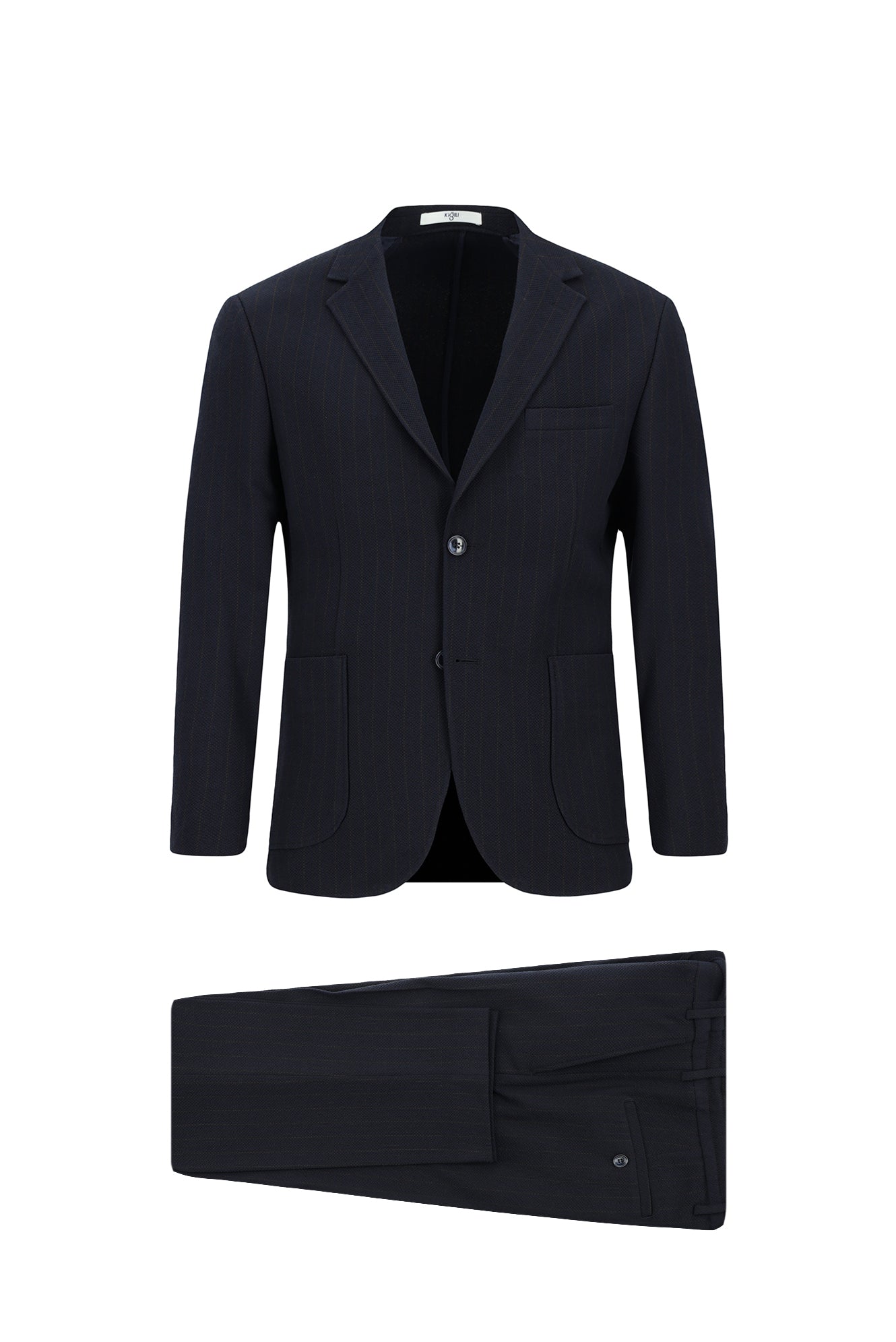 Açık Lacivert Slim Fit Dar Kesim Çizgili Beli İpli Spor Takım Elbise