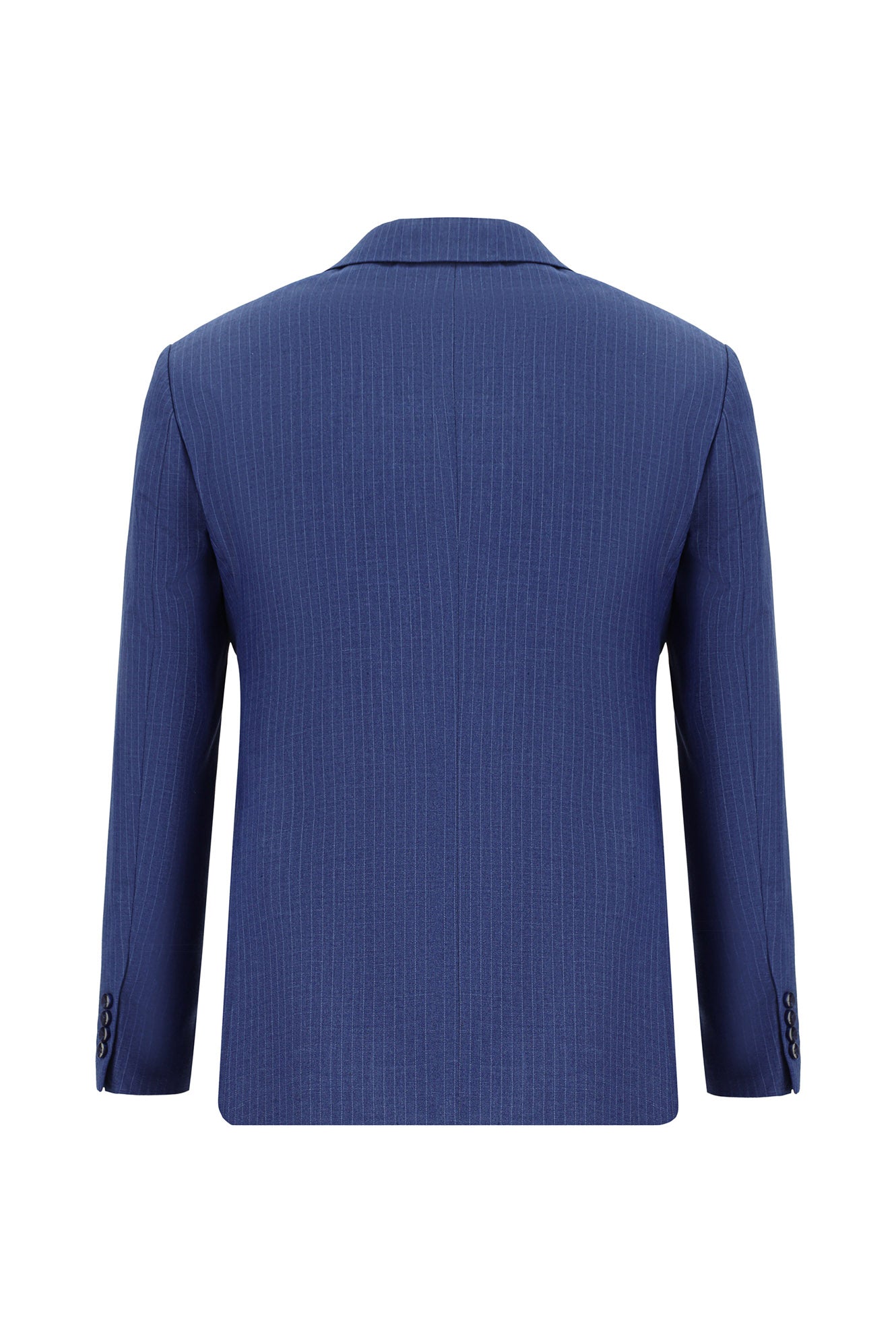 Açık Lacivert Super Slim Fit Ekstra Dar Kesim Çizgili Kruvaze Takım Elbise