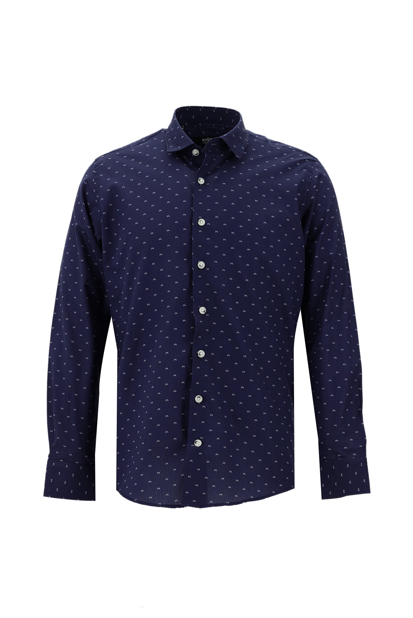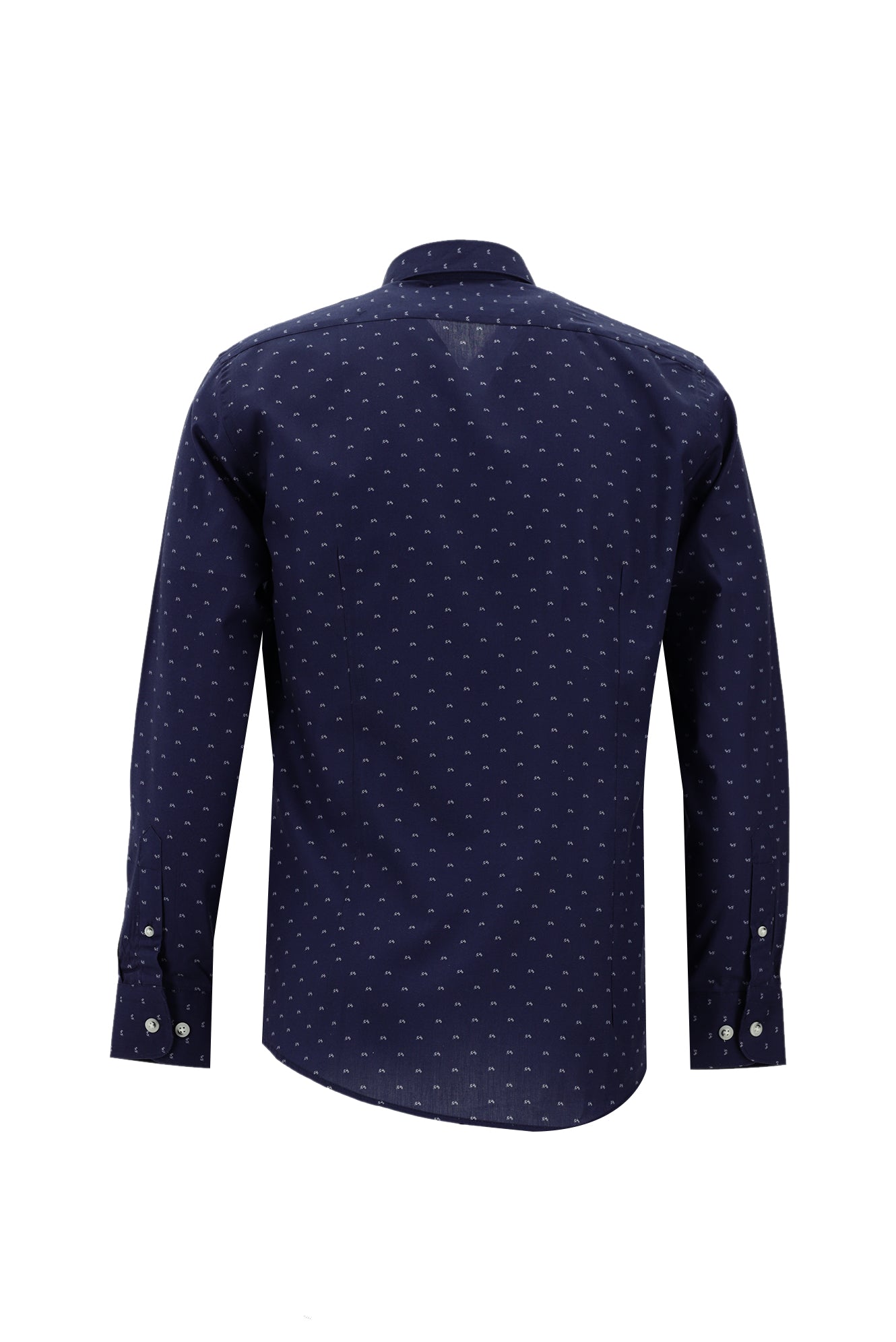 Açık Lacivert Uzun Kol Baskılı Slim Fit Dar Kesim Pamuk Gömlek