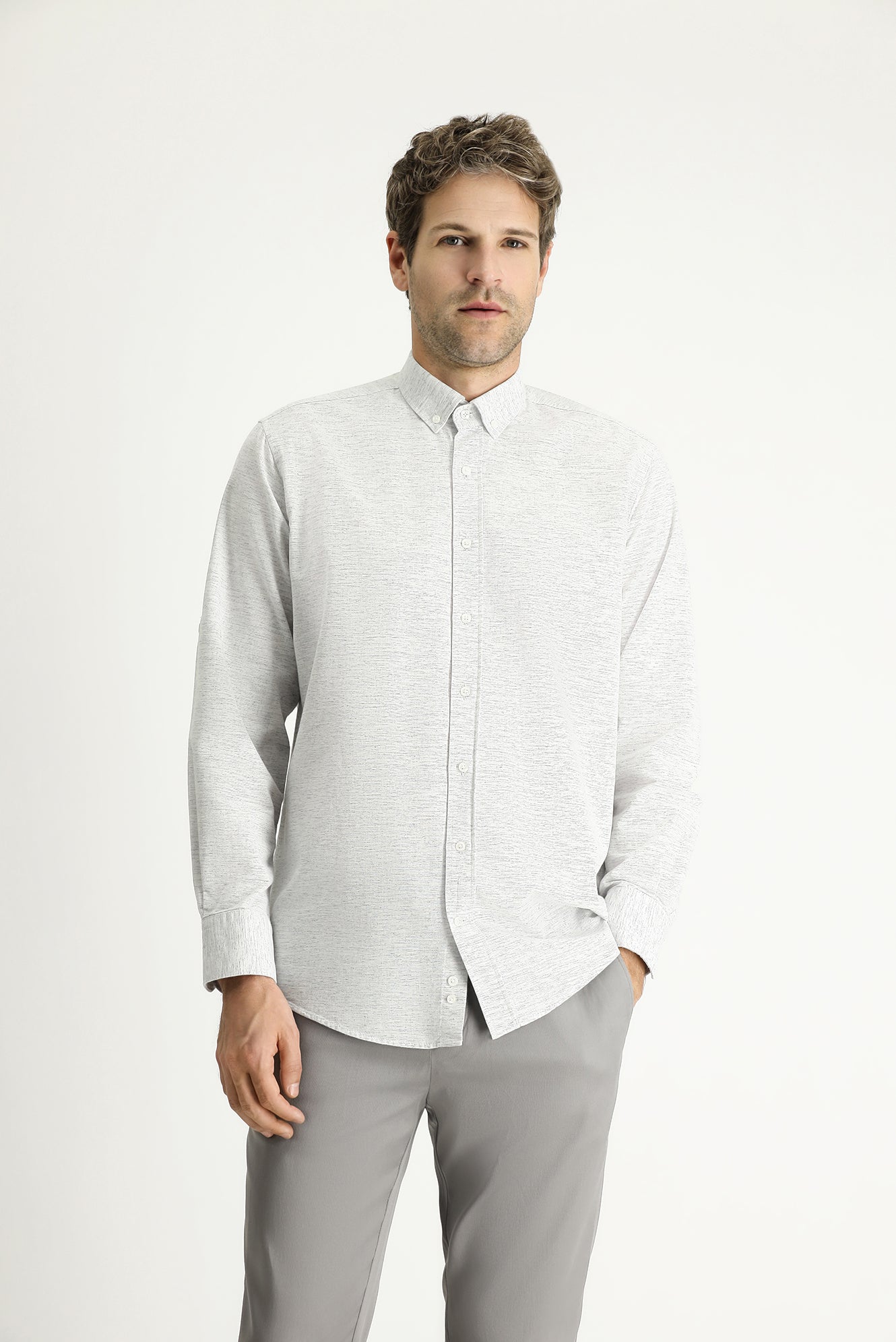 Açık Lacivert Uzun Kol Regular Fit Desenli Spor Pamuklu Düğmeli Yaka Gömlek