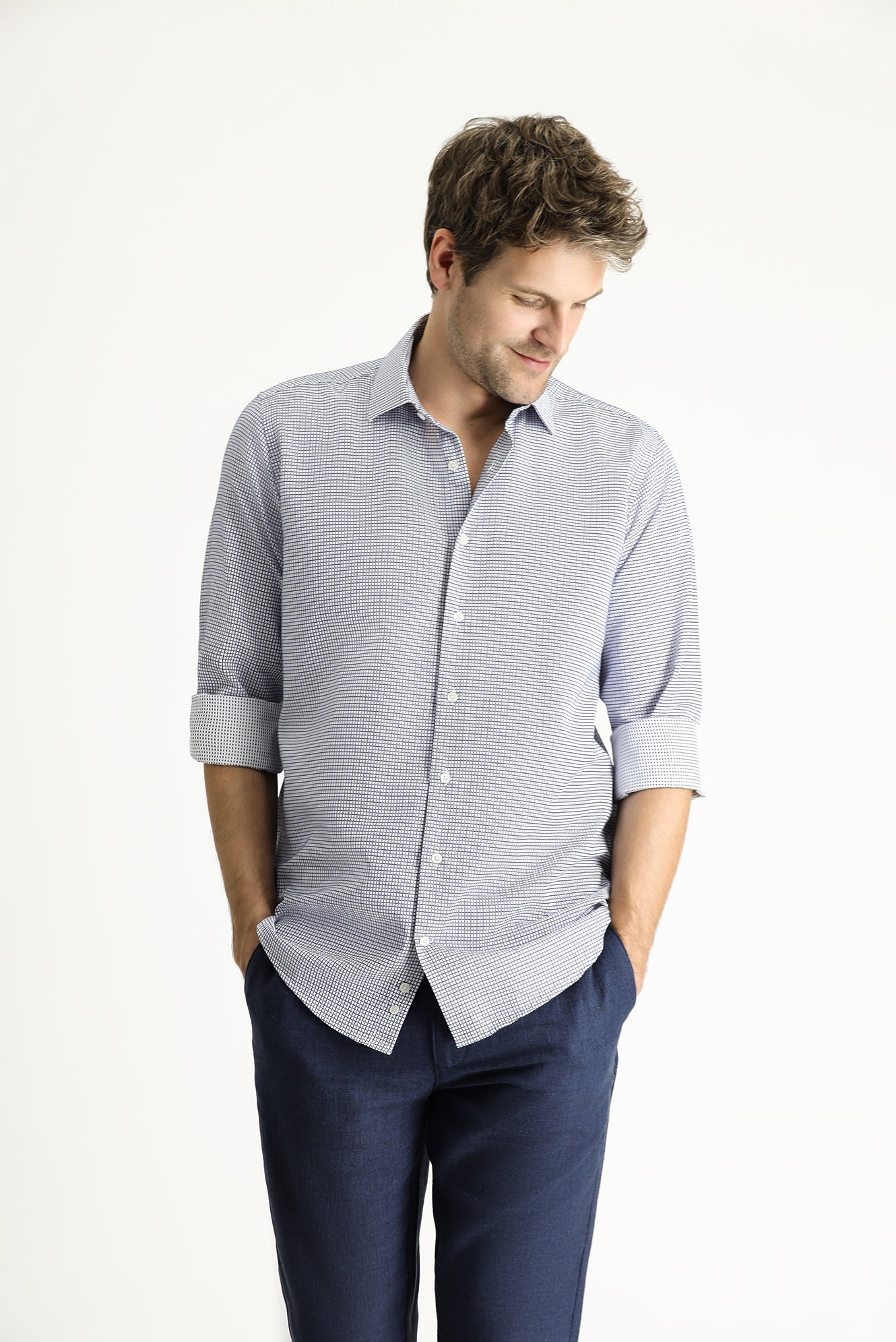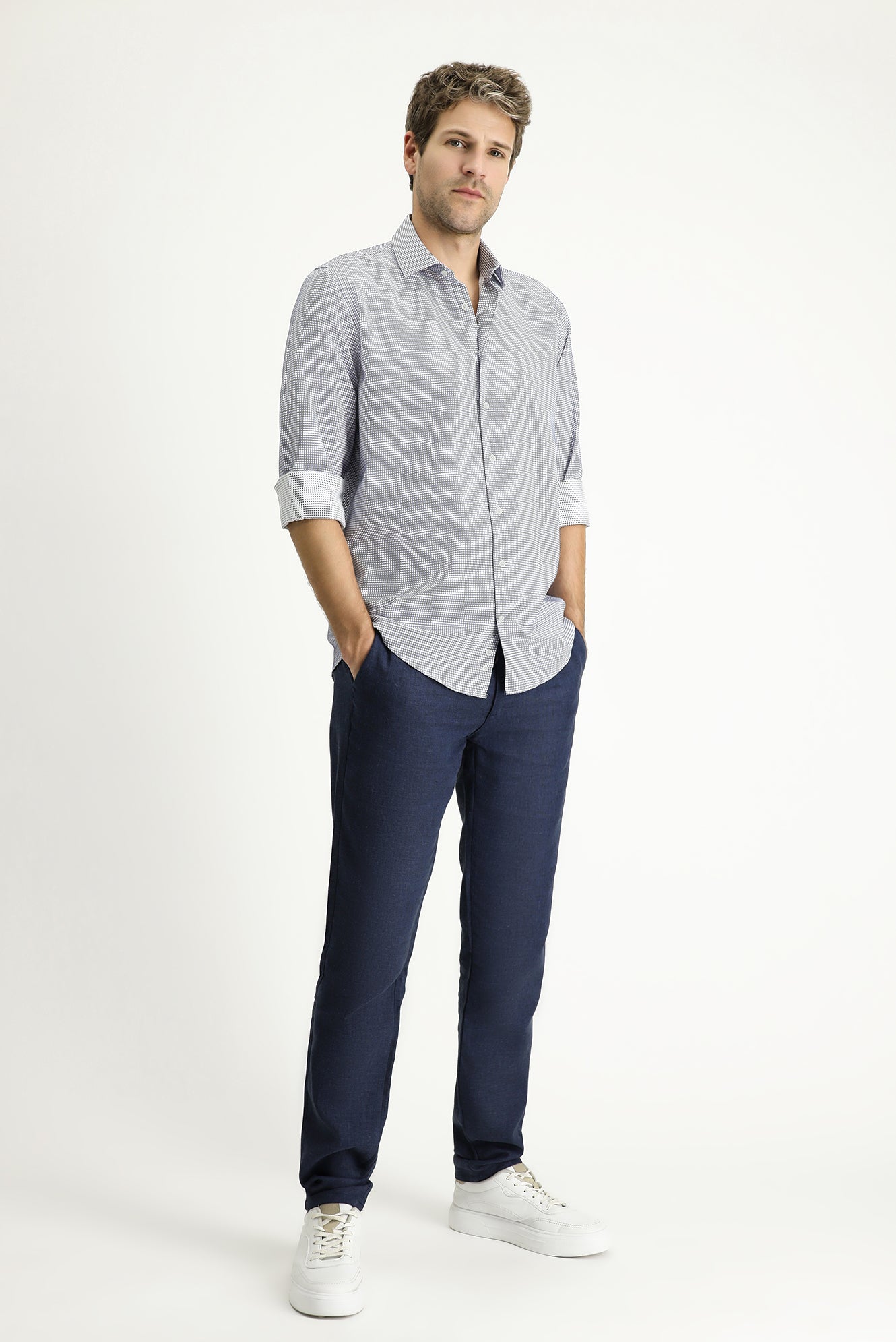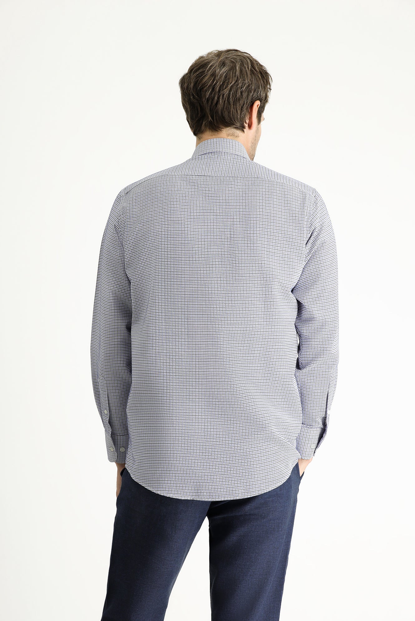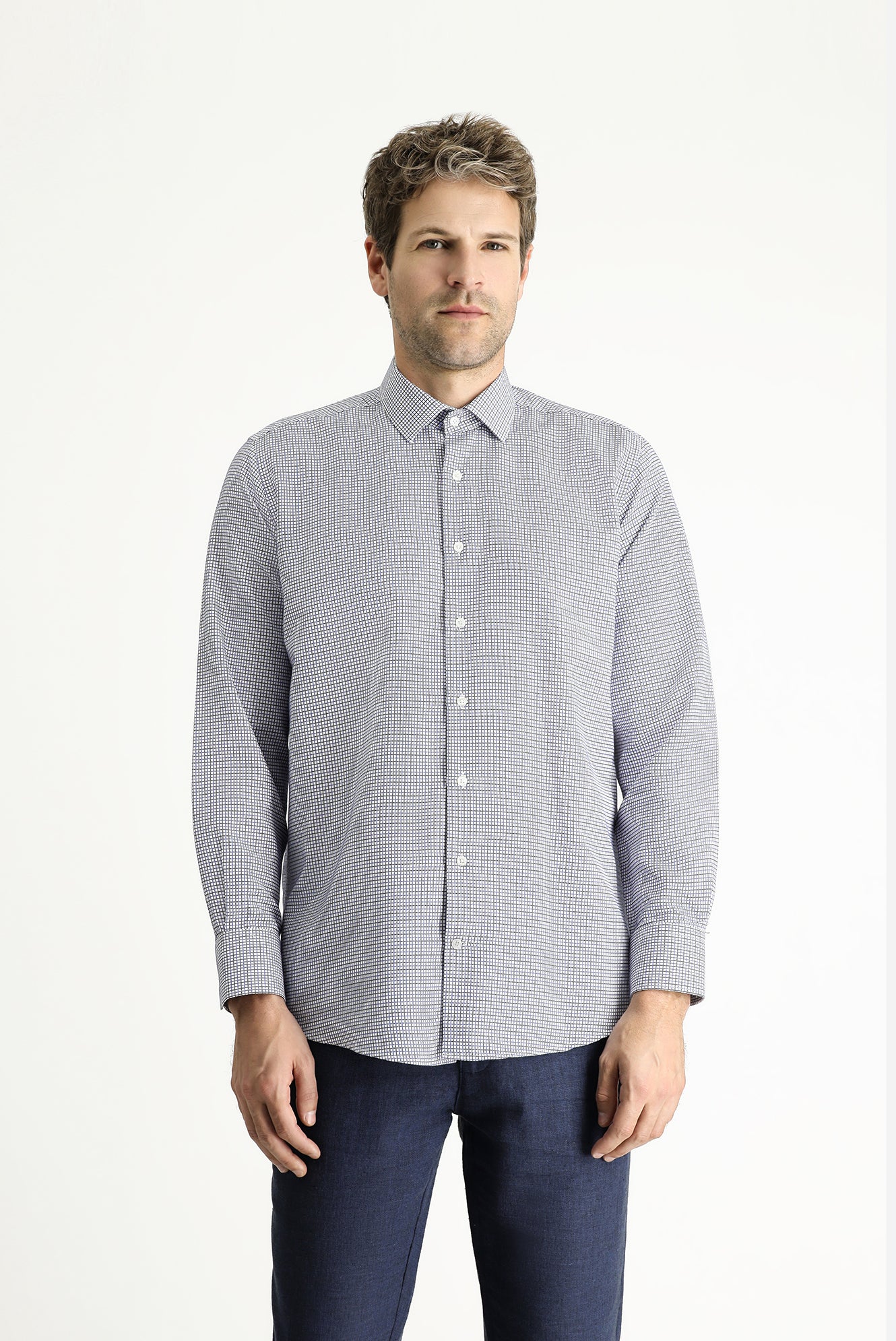 Açık Lacivert Uzun Kol Regular Fit Ekose Pamuklu Kolay Ütülenebilir Gömlek