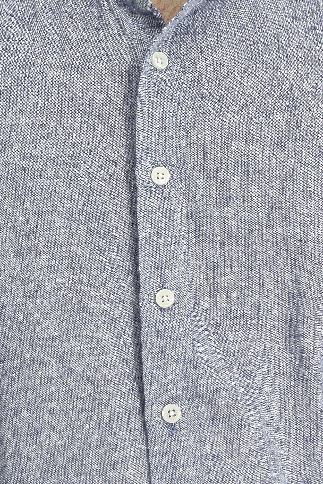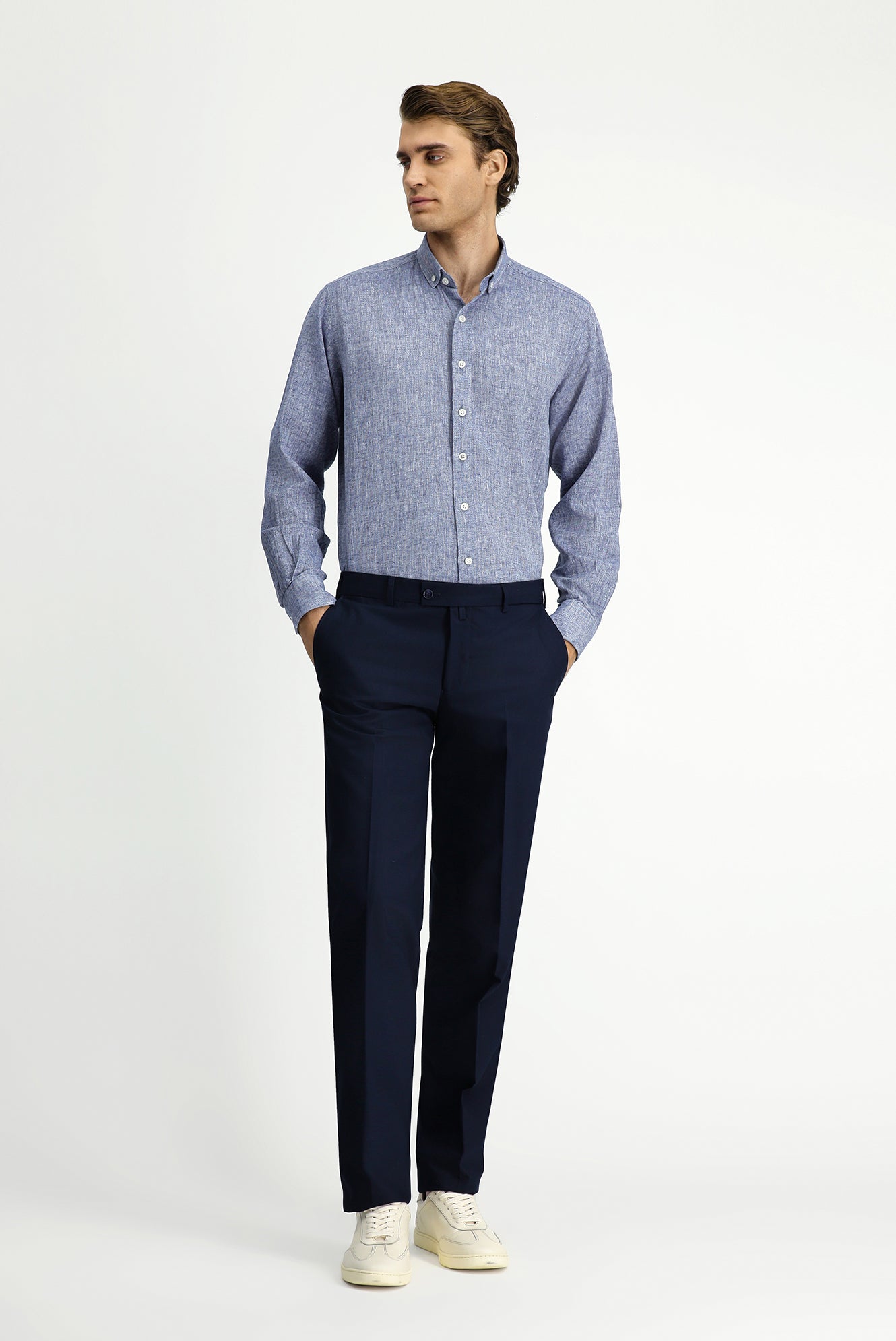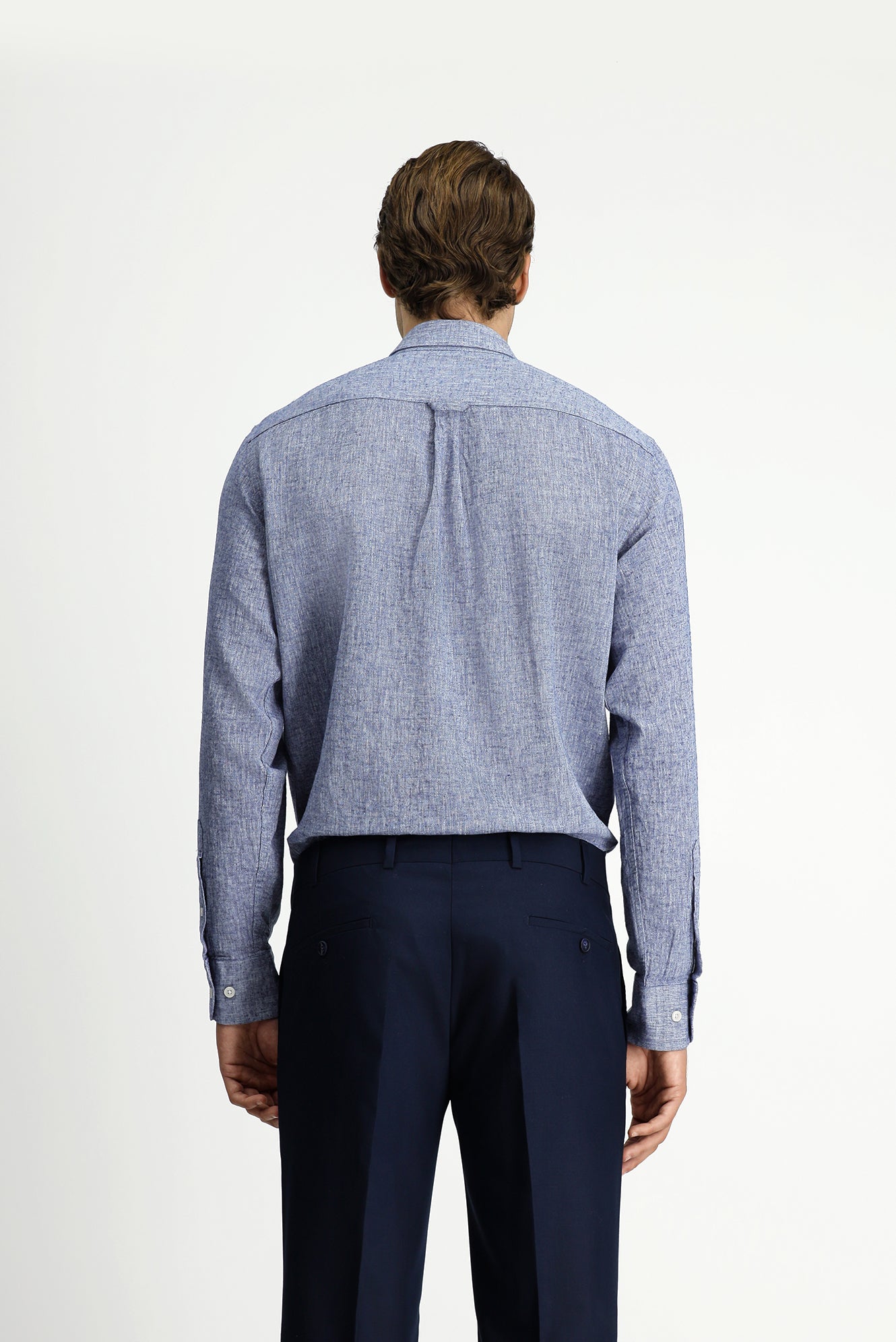 Açık Lacivert Uzun Kol Regular Fit Düğmeli Yaka Pamuklu Keten Gömlek