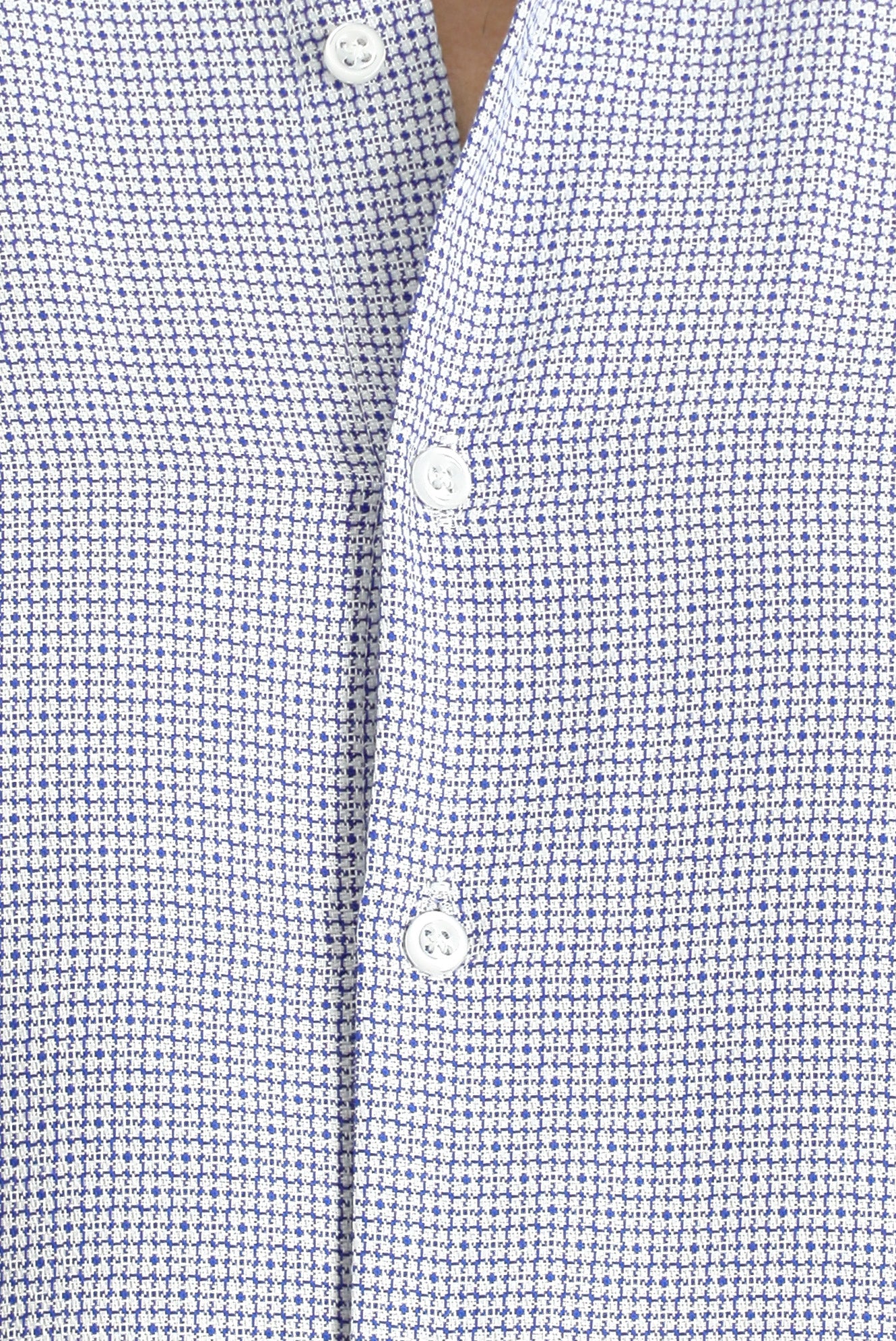 Açık Lacivert Uzun Kol Slim Fit Dar Kesim Klasik Desenli Pamuk Gömlek