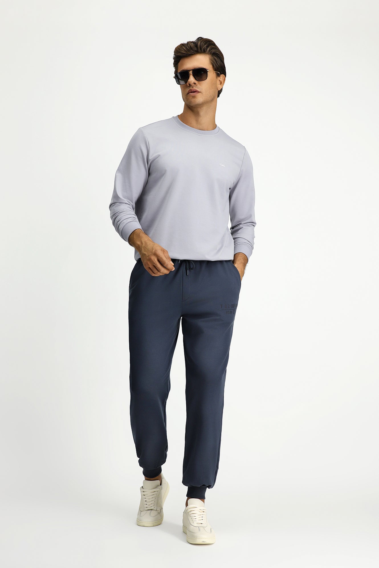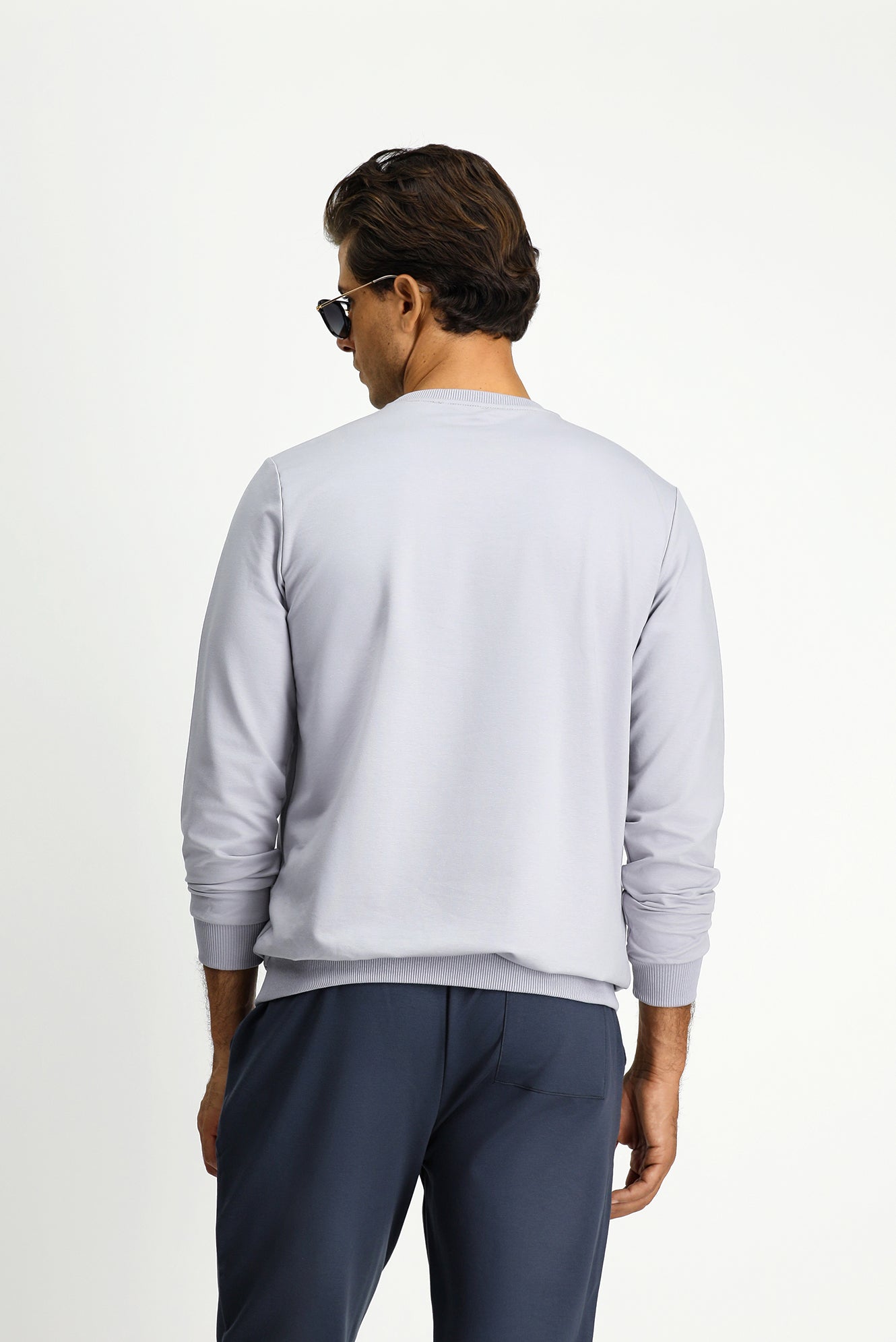 Açık Mavi Bisiklet Yaka Regular Fit Nakışlı Pamuklu Sweatshirt