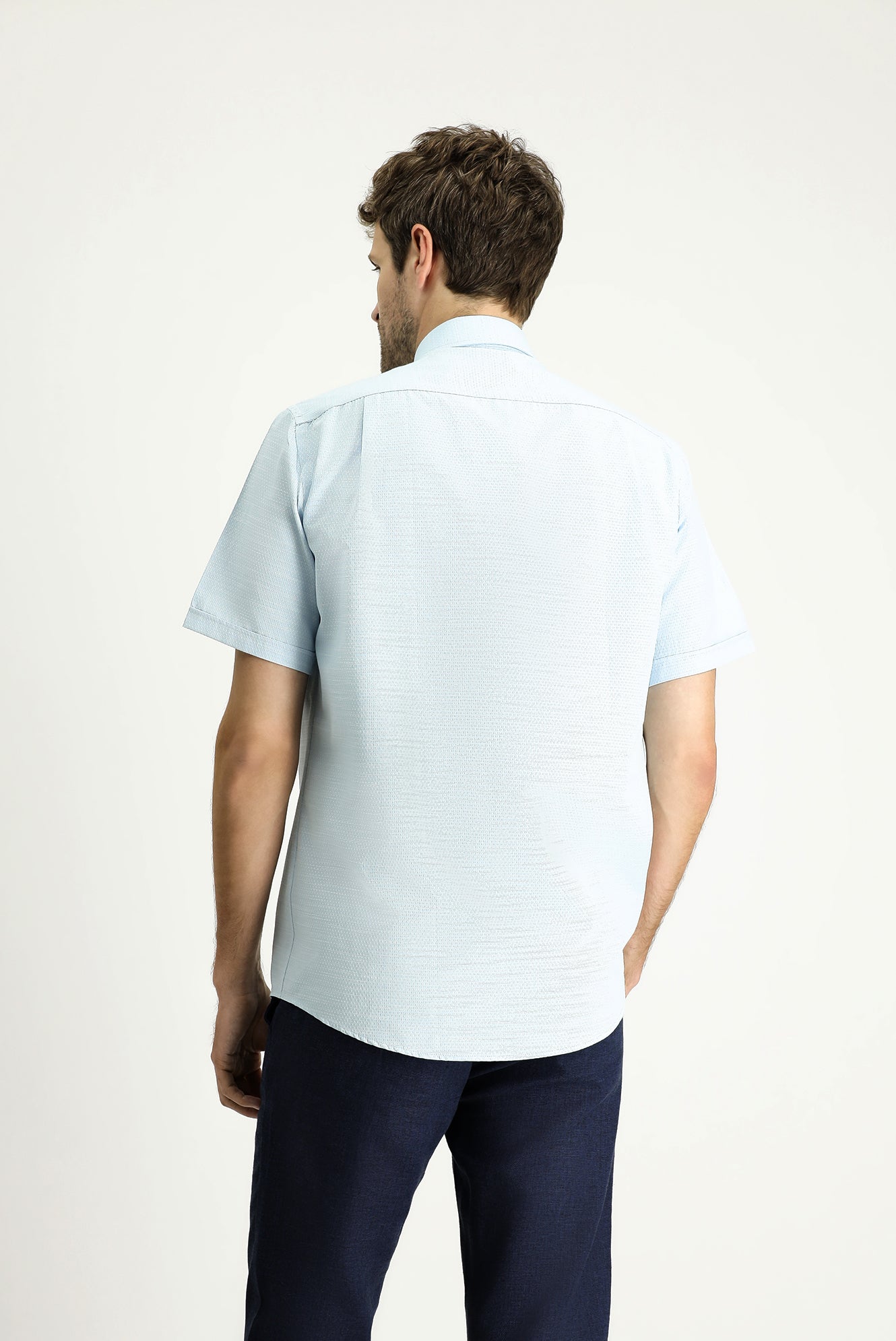 Açık Mavi Kısa Kol Regular Fit Desenli Pamuklu Gömlek