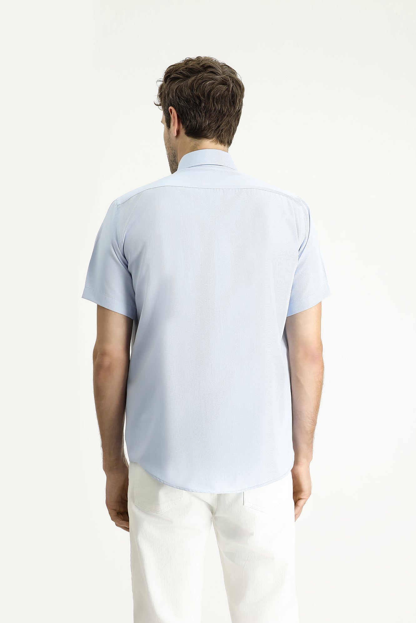 Açık Mavi Kısa Kol Regular Fit Desenli Pamuklu Kolay Ütülenebilir Gömlek