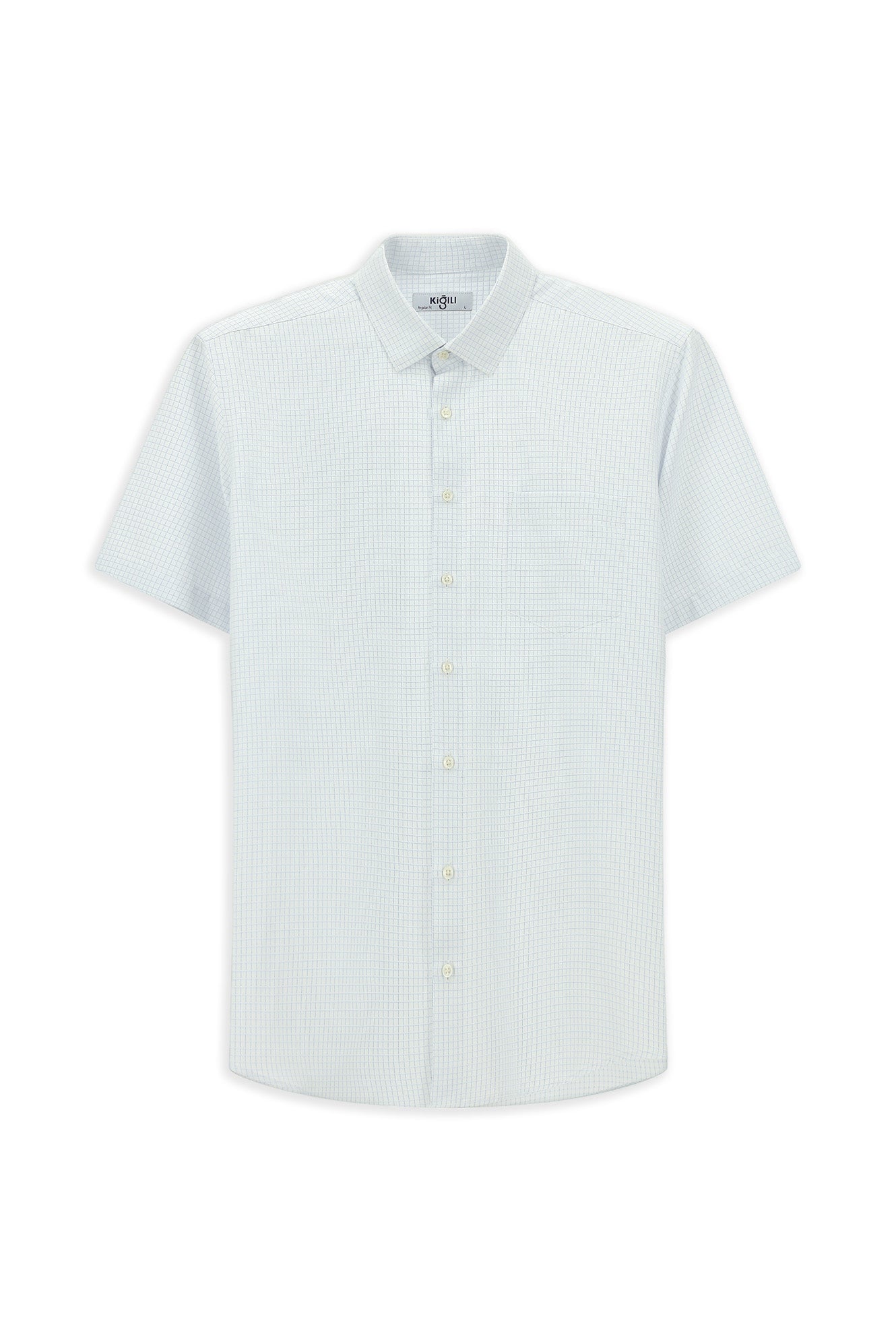 Açık Mavi Kısa Kol Regular Fit Ekose Pamuklu Kolay Ütülenebilir Gömlek