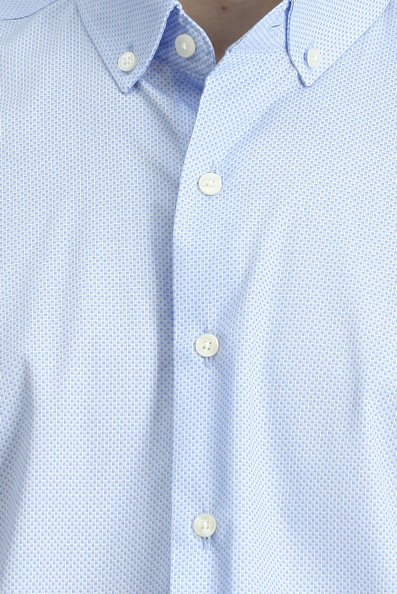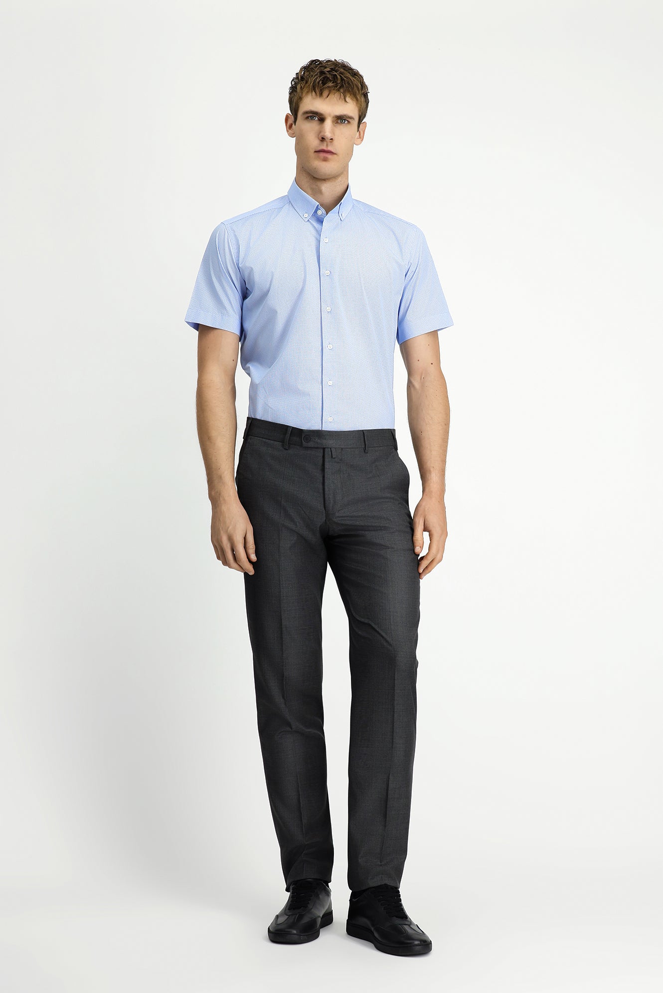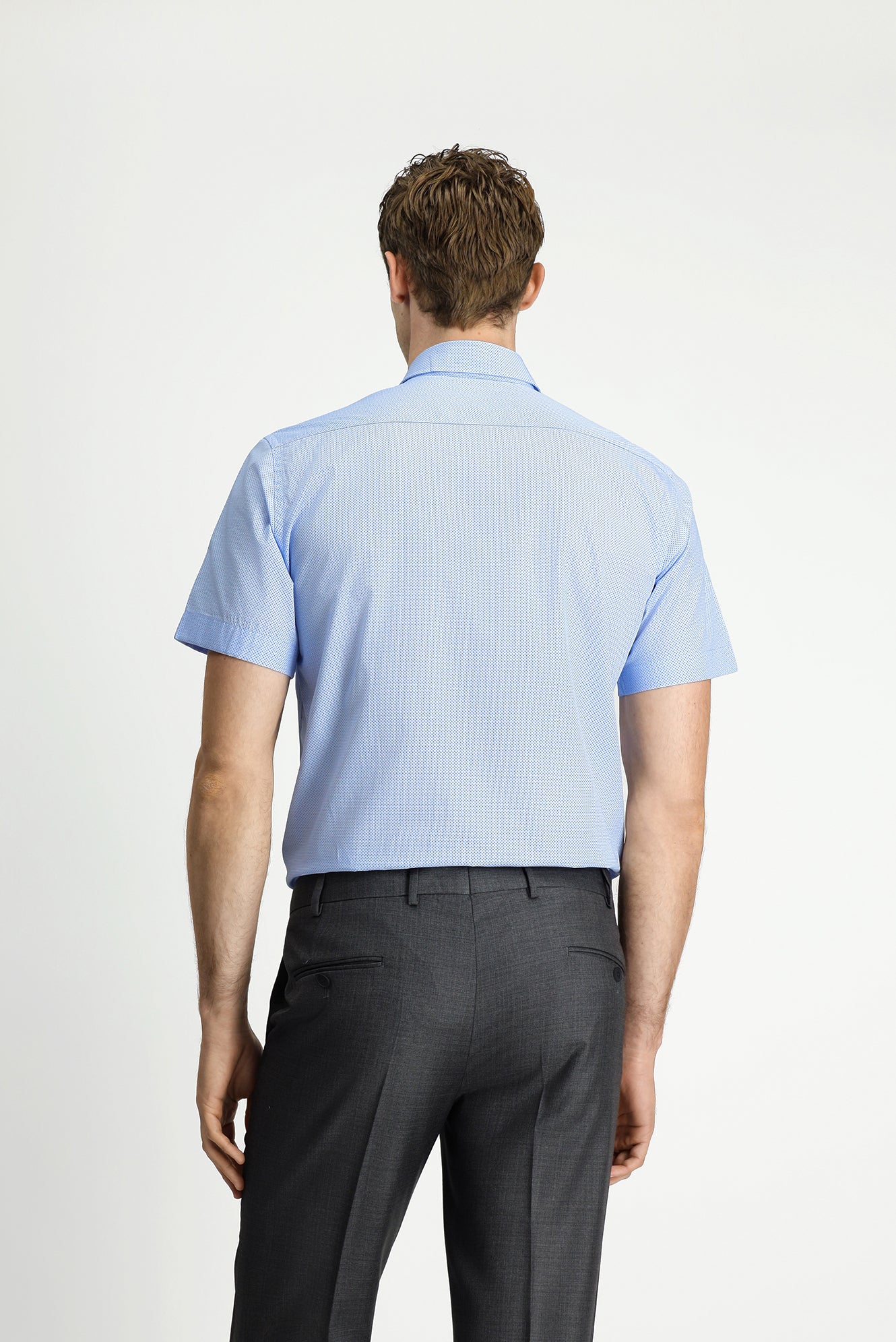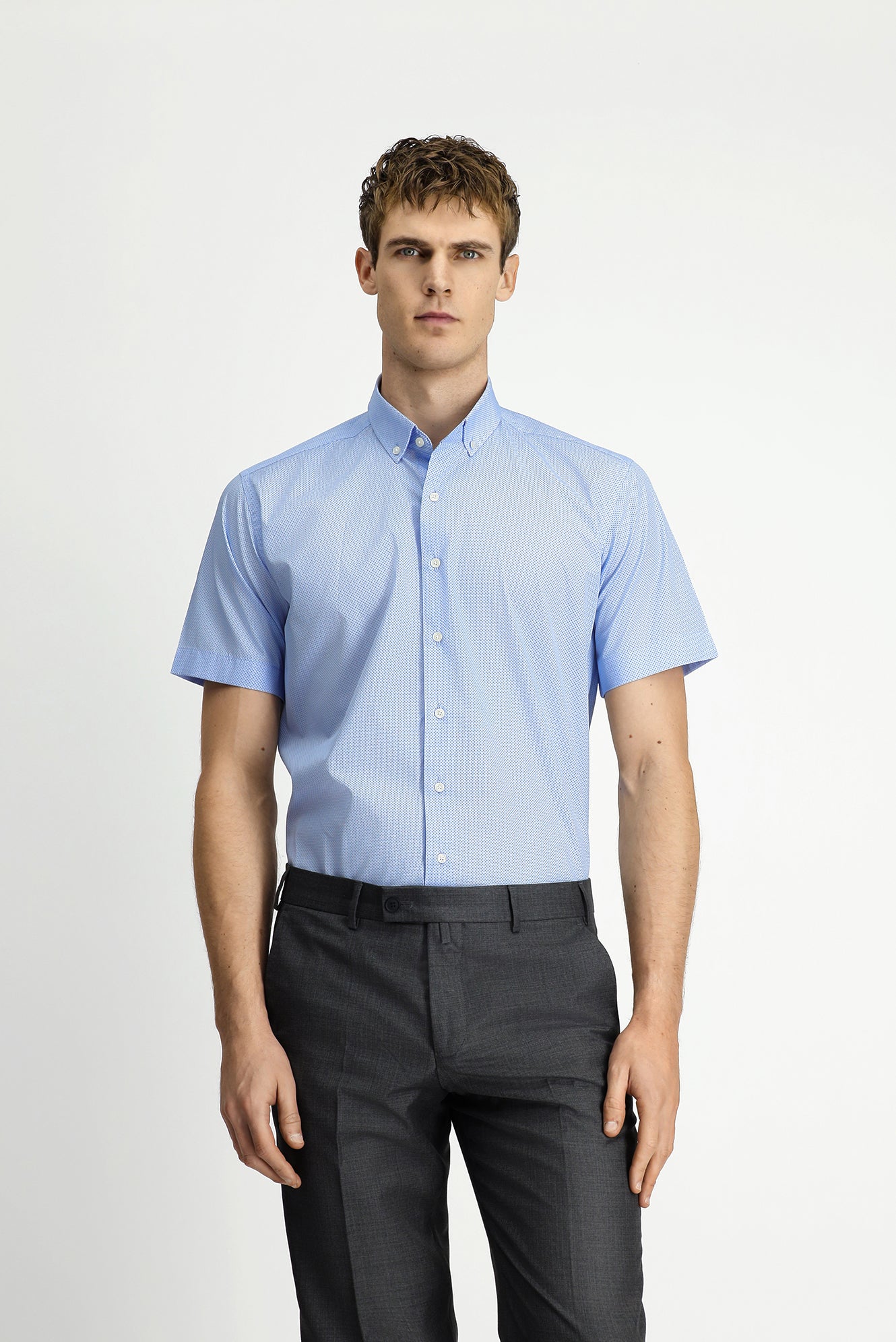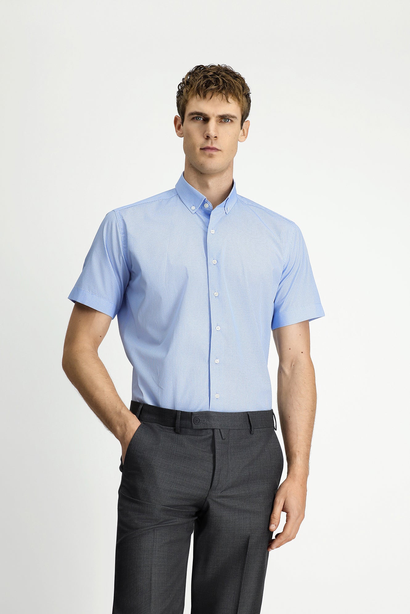 Açık Mavi Kısa Kol Regular Fit Cepli Düğmeli Yaka Desenli Pamuk Gömlek