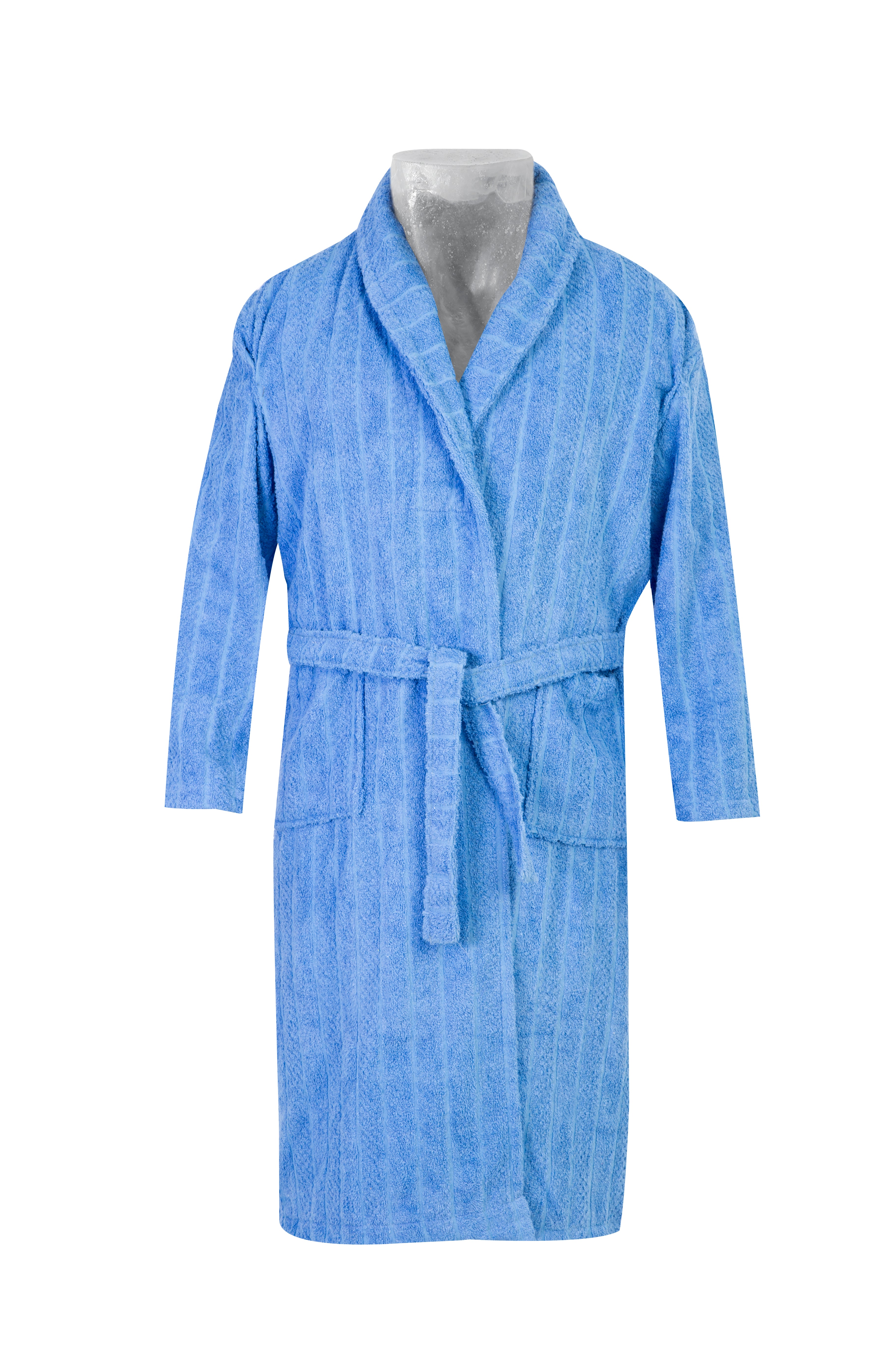 Açık Mavi Şal Yaka Jakarlı Pamuk Bornoz