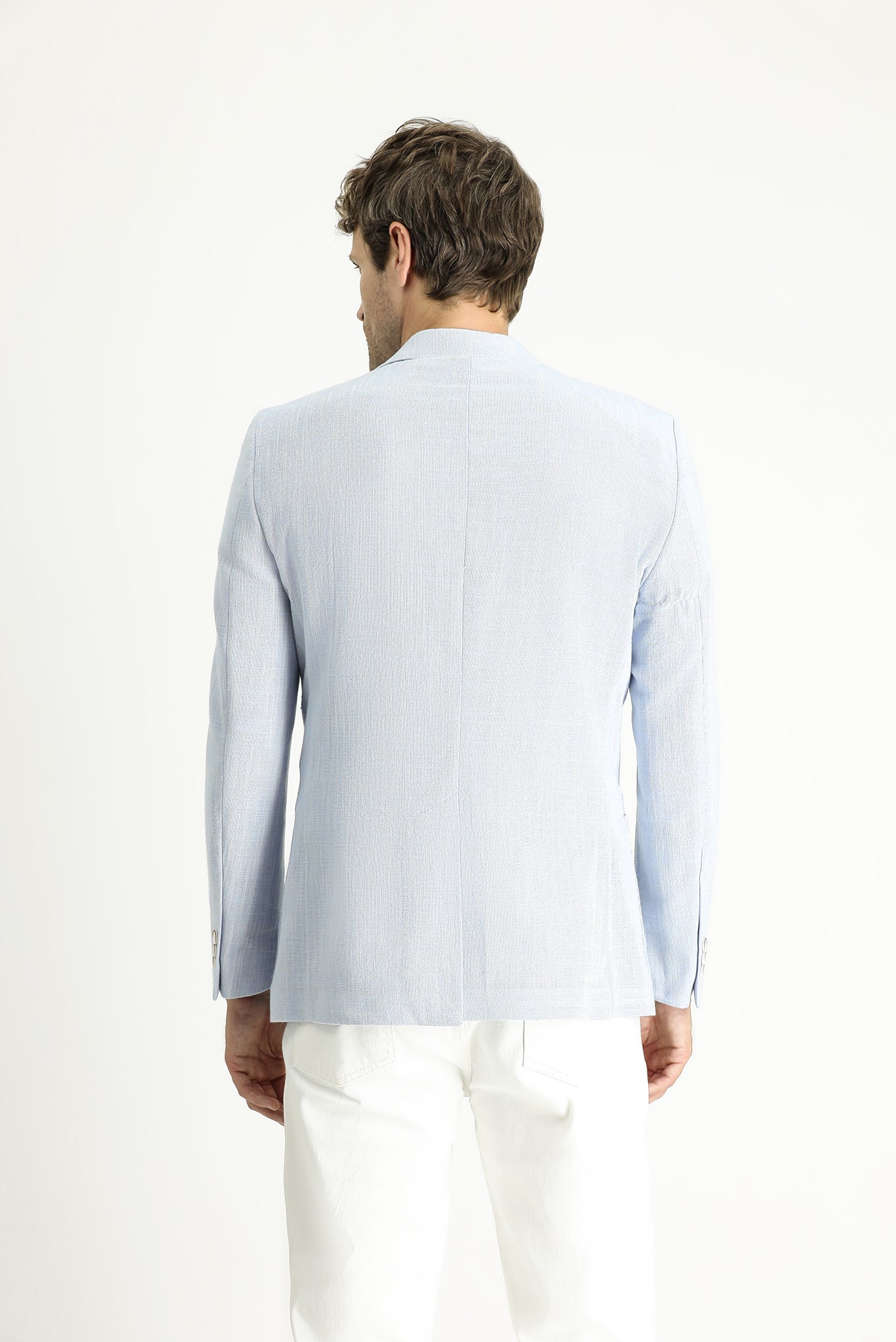 Açık Mavi Slim Fit Dar Kesim Desenli Spor Pamuk Ceket