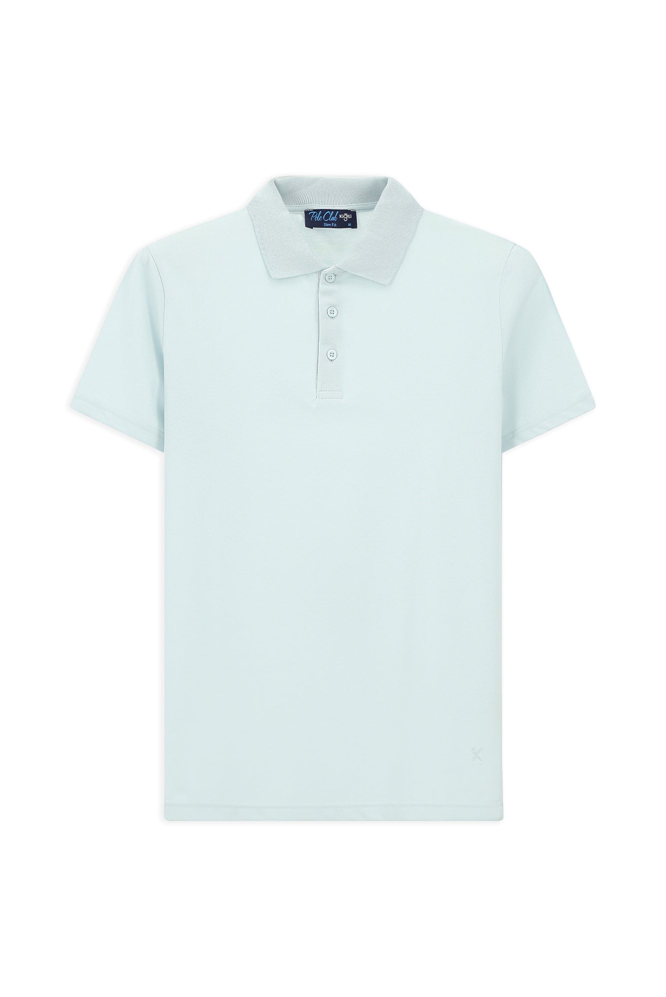 Açık Mavi Slim Fit Dar Kesim Nakışlı Pamuklu Polo Yaka Tişört