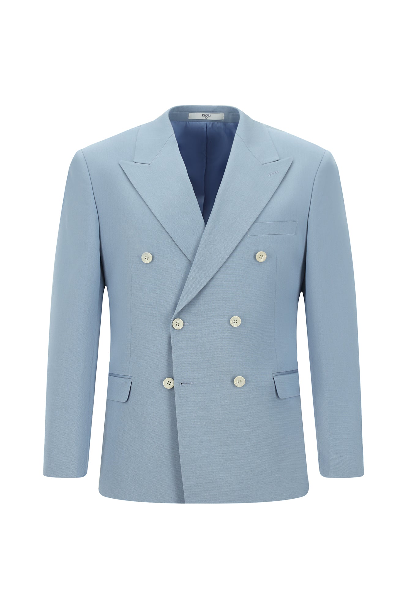 Açık Mavi 7 Drop Slim Fit Dar Kesim Pamuklu Lyocell Kruvaze Takım Elbise