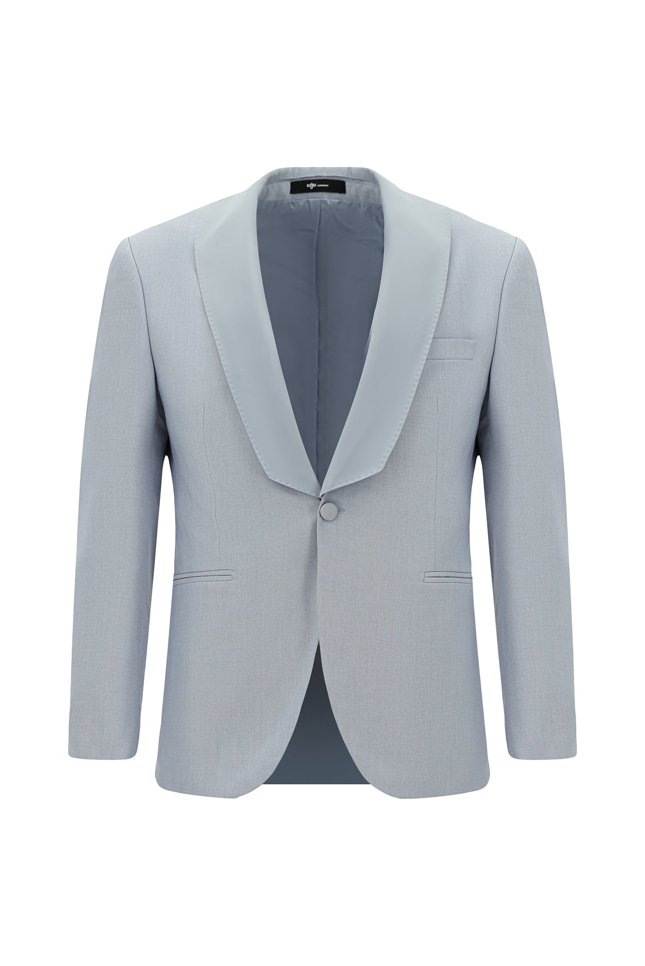 Açık Mavi Slim Fit Dar Kesim Şal Yaka Smokin & Damatlık