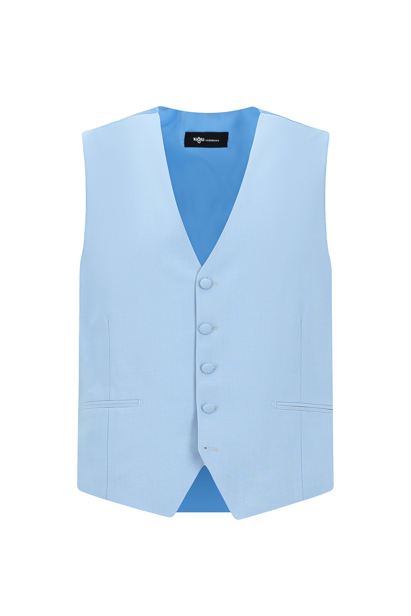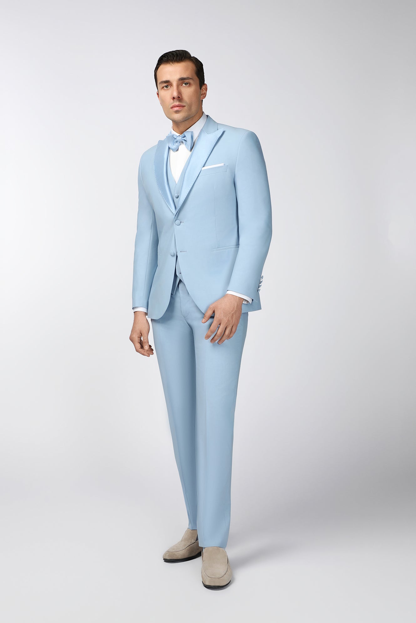 Açık Mavi 7 Drop Slim Fit Dar Kesim Sivri Yaka Yelekli Smokin & Damatlık