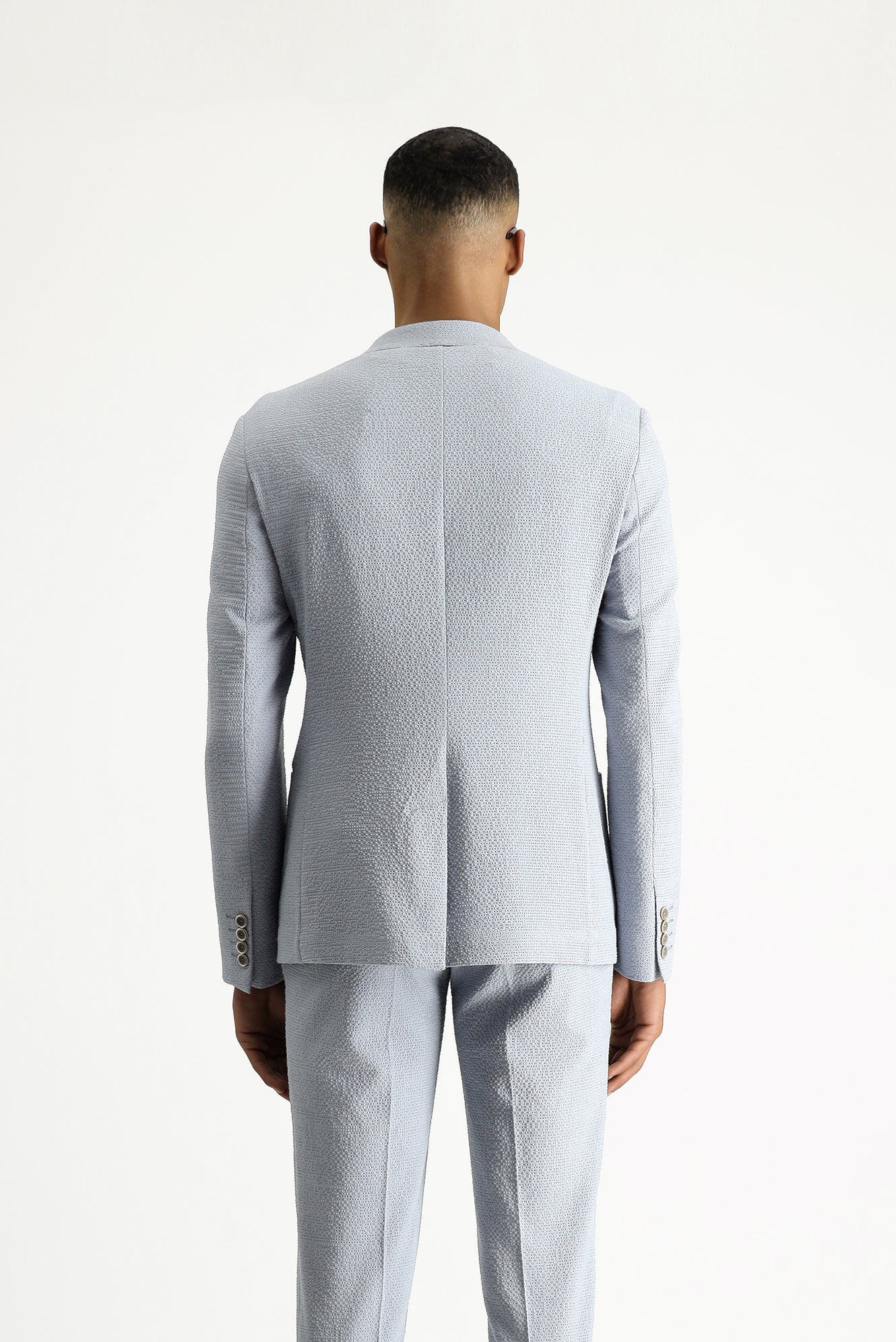 Açık Mavi 7 Drop Super Slim Fit Eksra Dar Kesim Gofre Ceket
