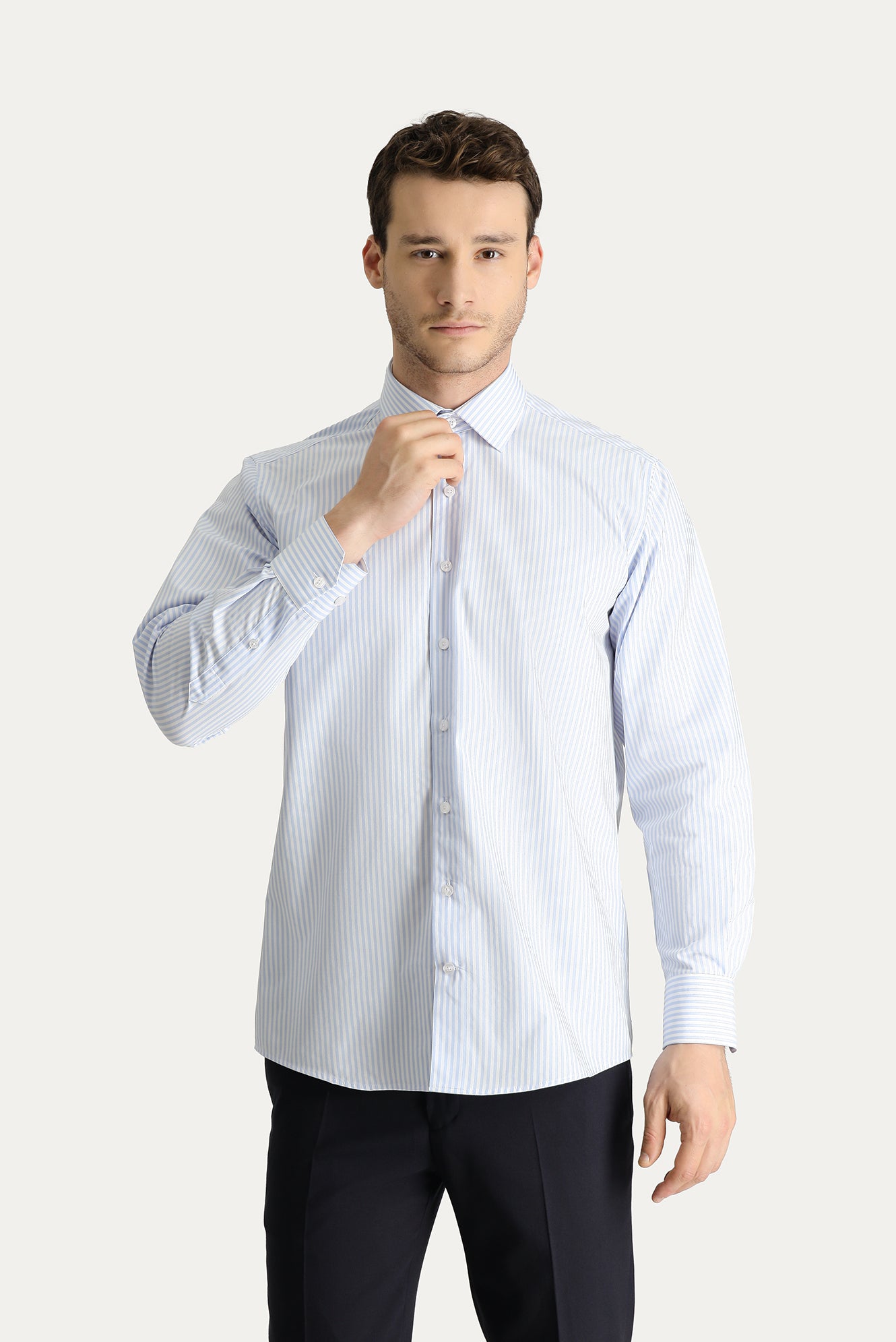 • Açık Mavi Uzun Kol Klasik Çizgili Pamuk Gömlek ₺1.250 ve Üzeri Ücretsiz Teslimat