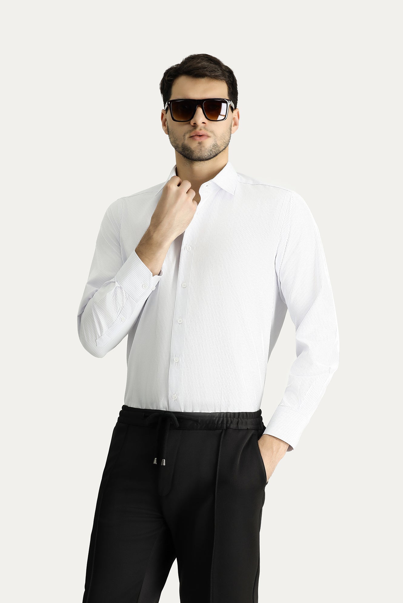 Açık Mavi Uzun Kol Klasik Çizgili Pamuklu Kolay Ütülenebilir Gömlek