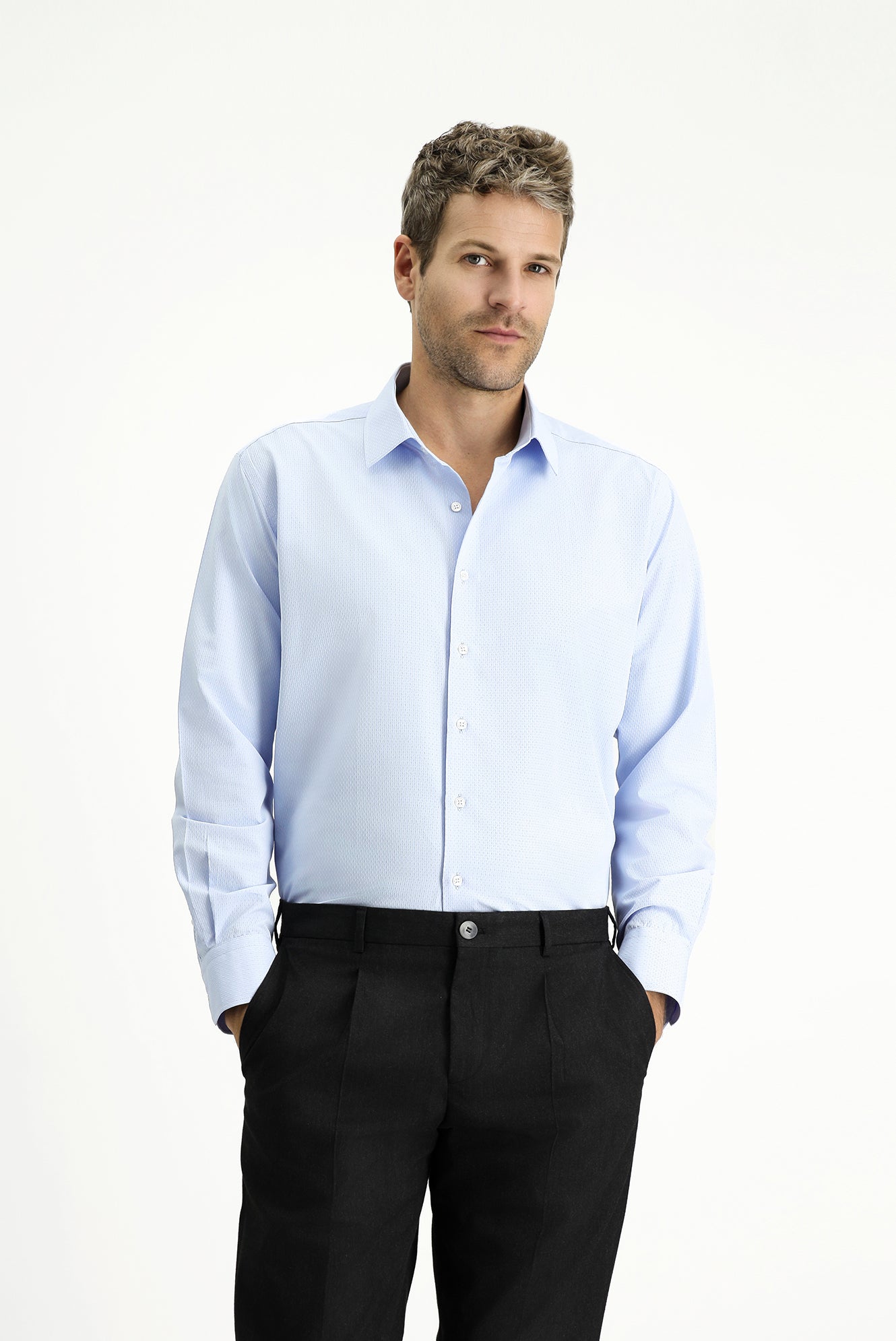 Açık Mavi Uzun Kol Klasik Desenli Pamuklu Kolay Ütülenebilir Gömlek